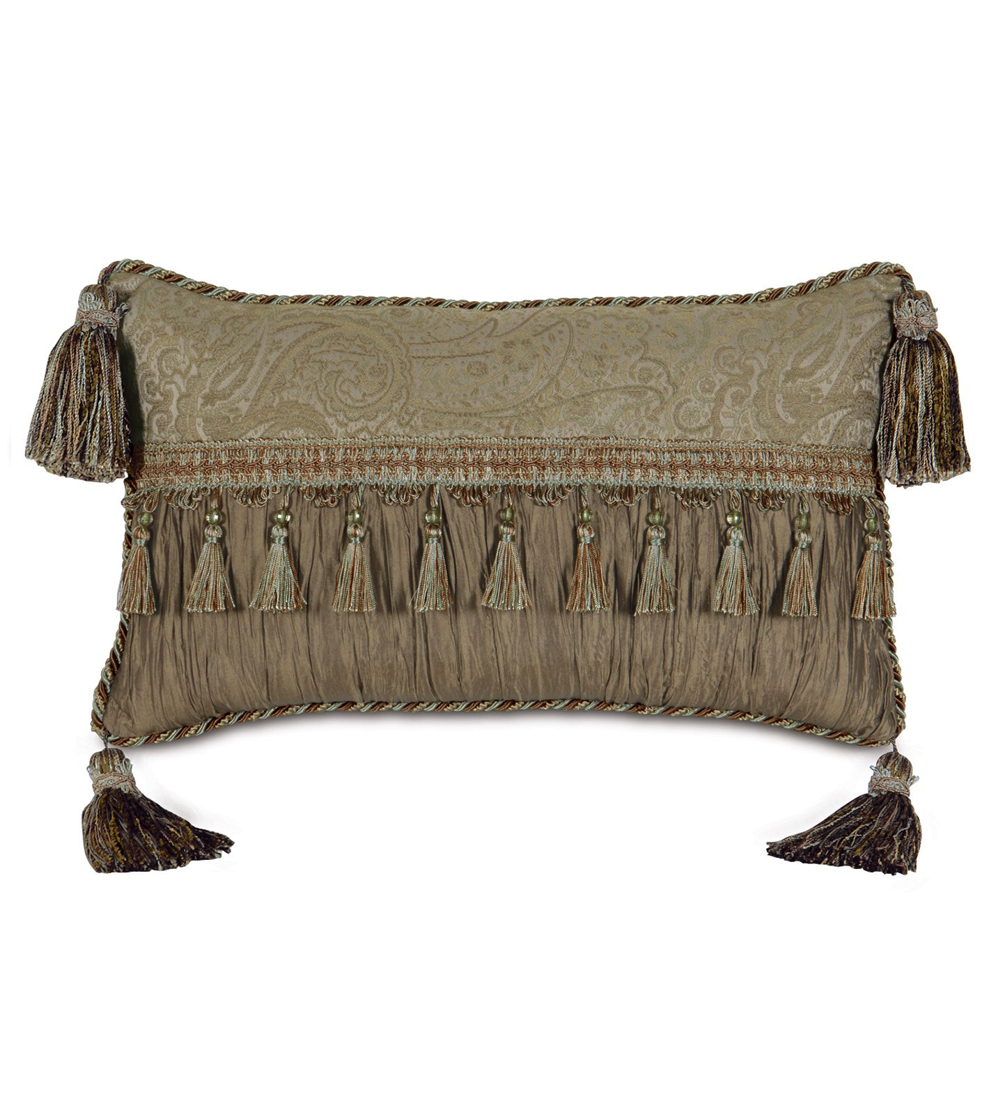 - Luxury lumbar pillow with paisley fabric insert and tassel trim on face