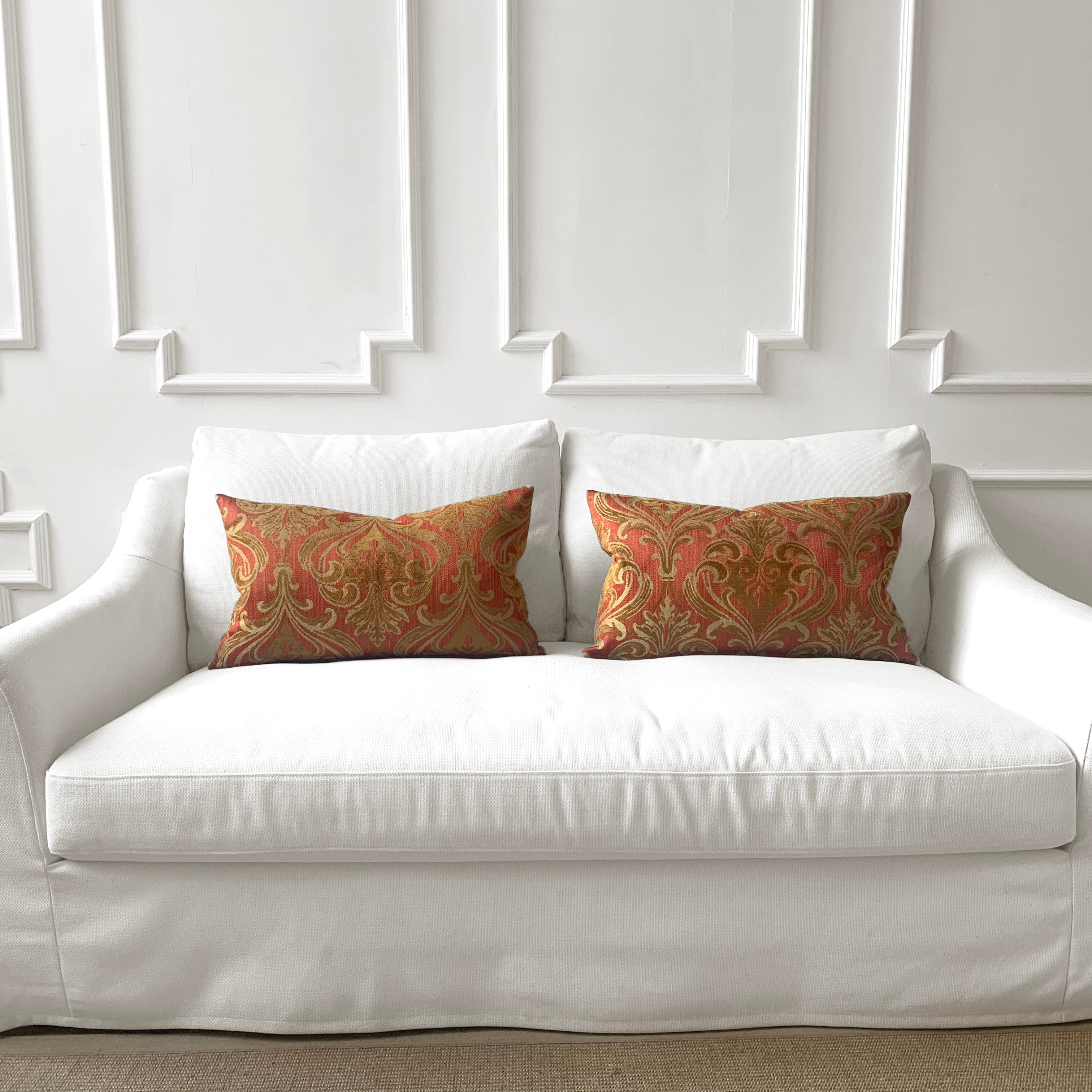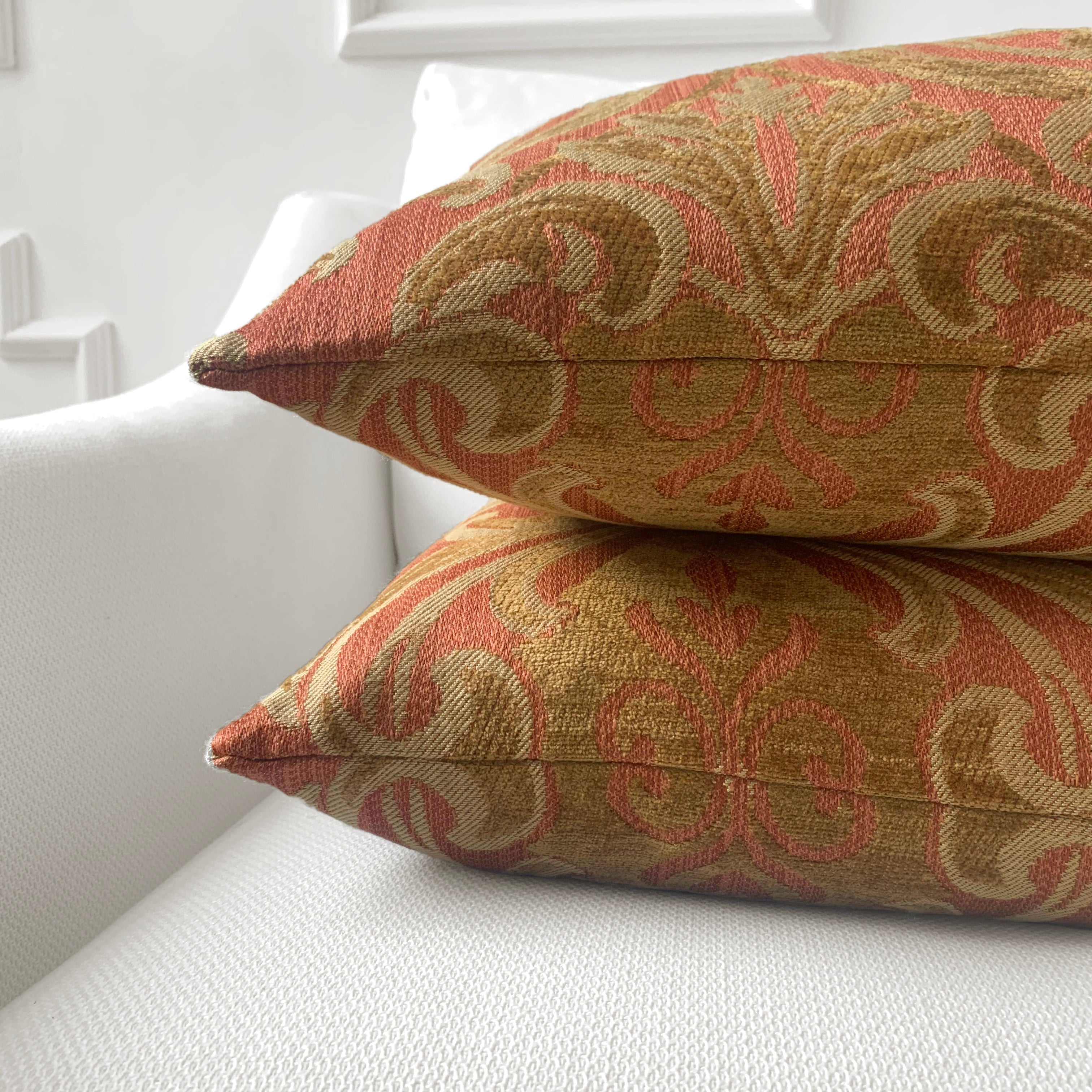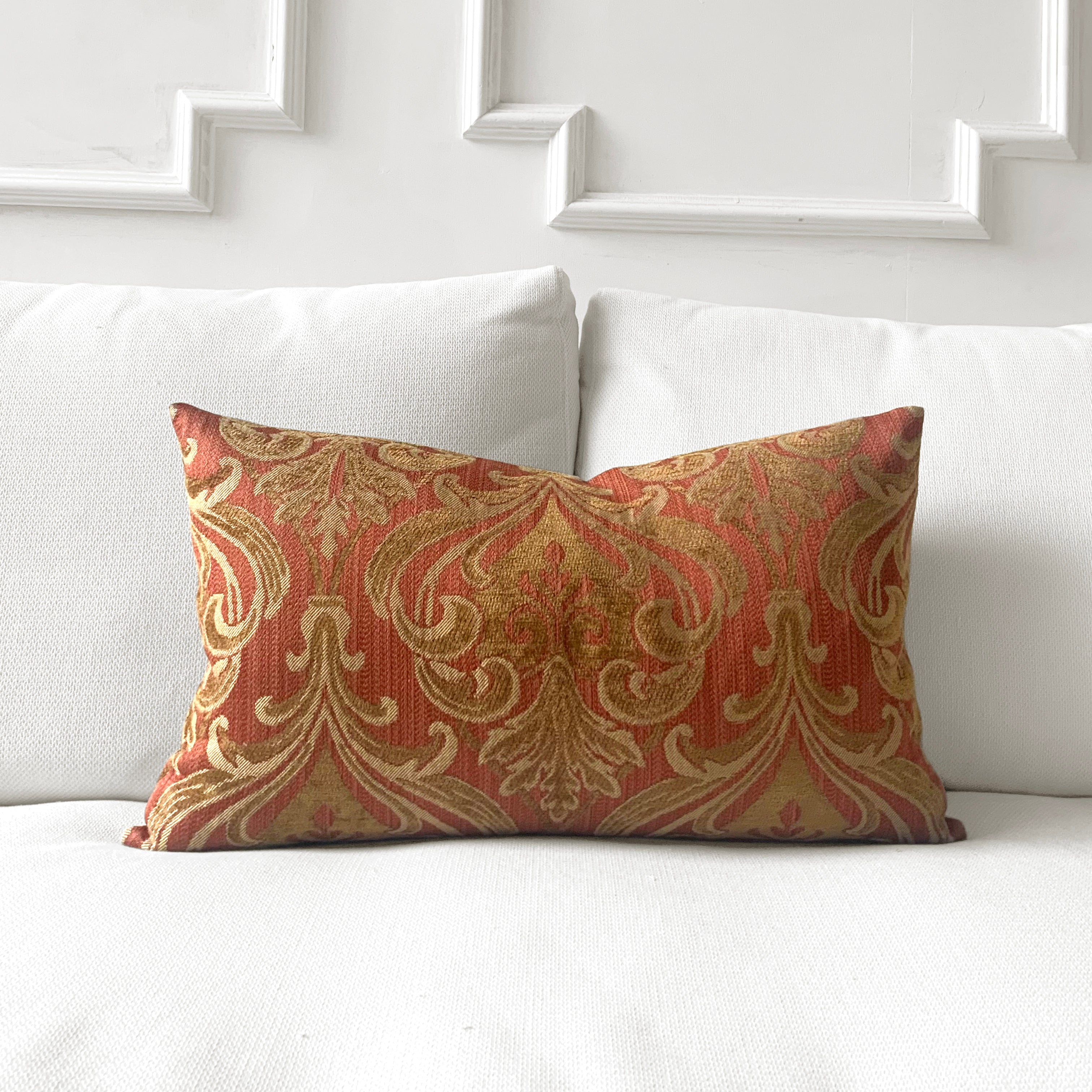 Regal Orange Damask Lumbar Pillow Cover 15x26