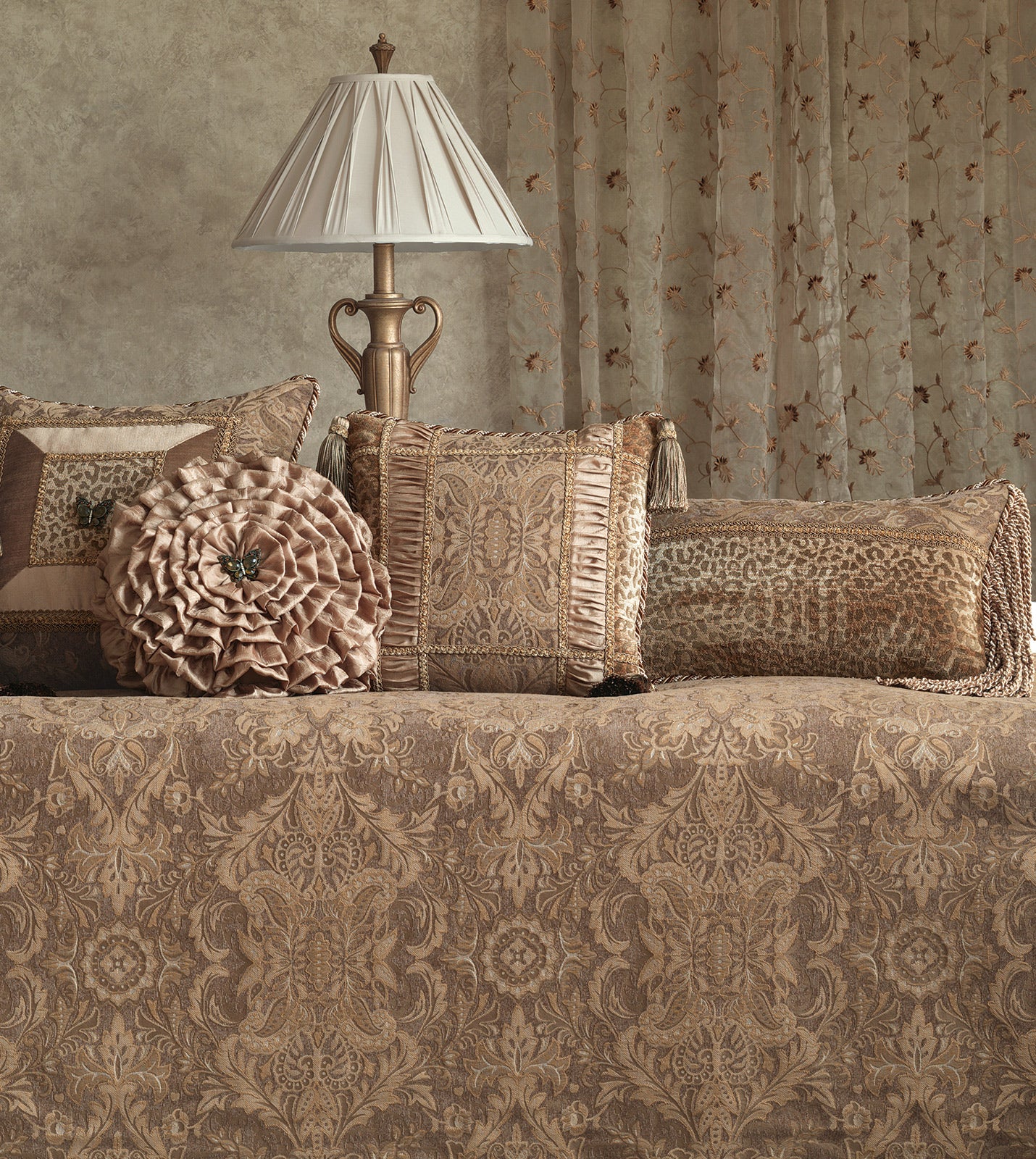 - Backed in solid honey fabric