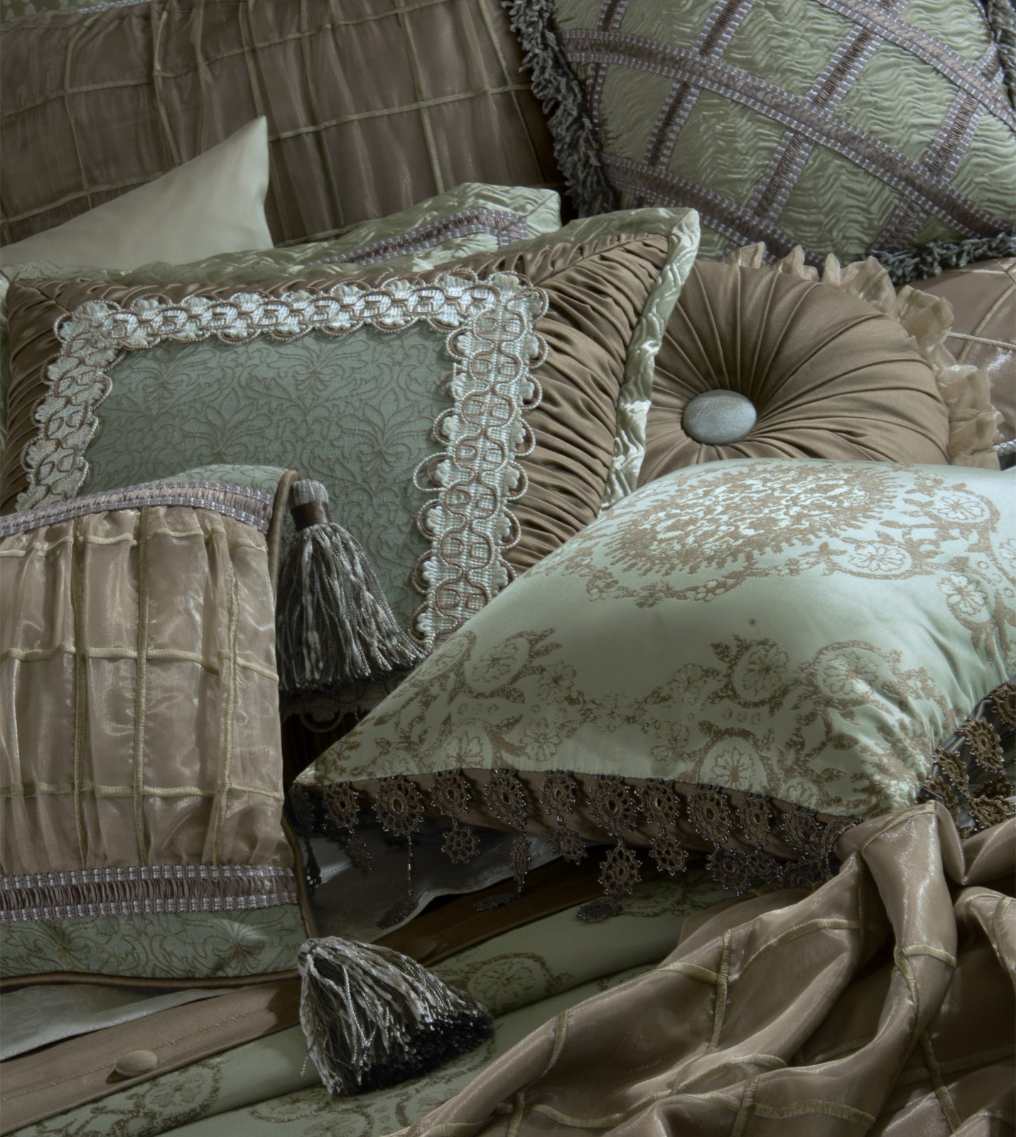 - Spa toned decorative pillow cover with exquisite damask pattern on center