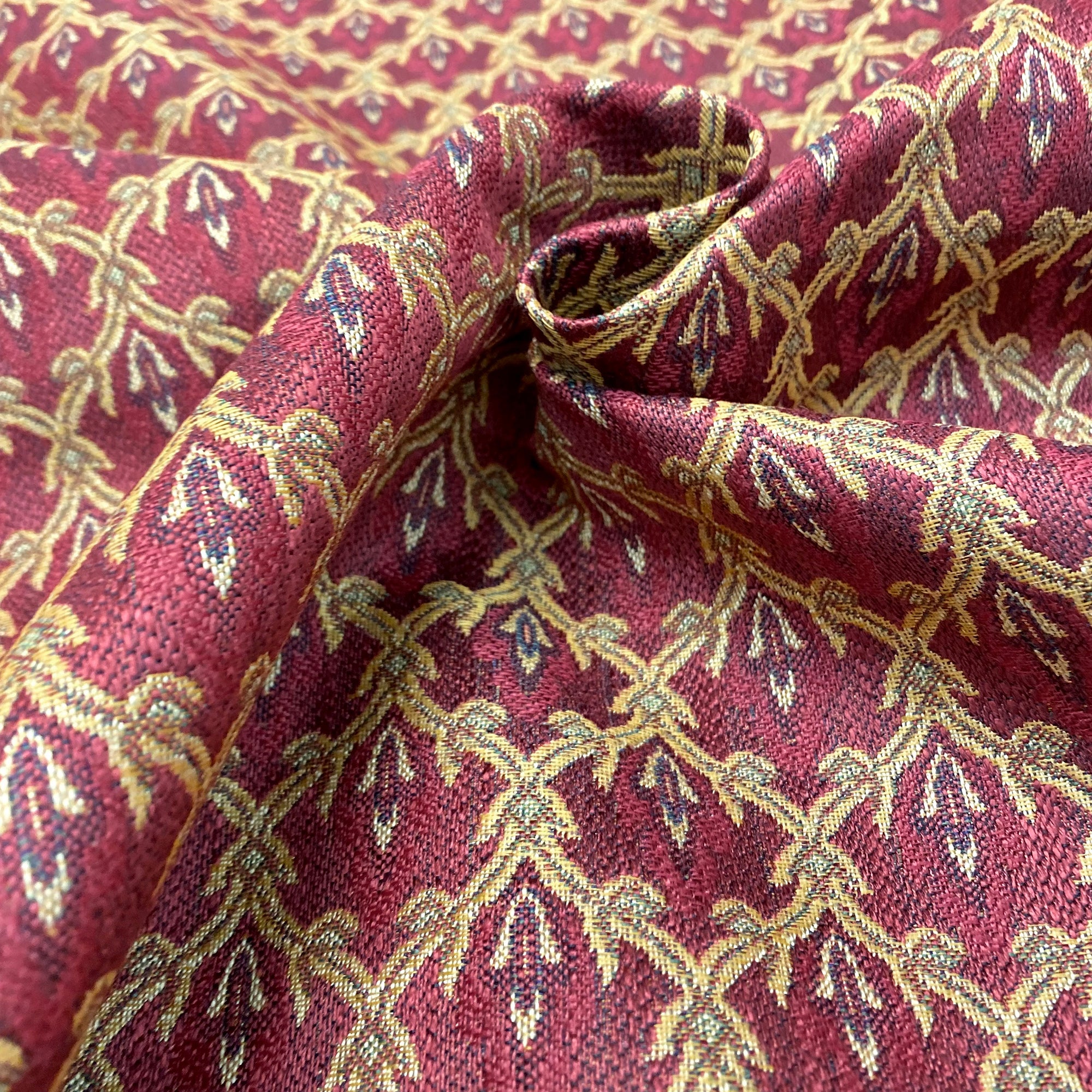 Hoxie Cherry French Trellis Jacquard Upholstery Fabric 54"