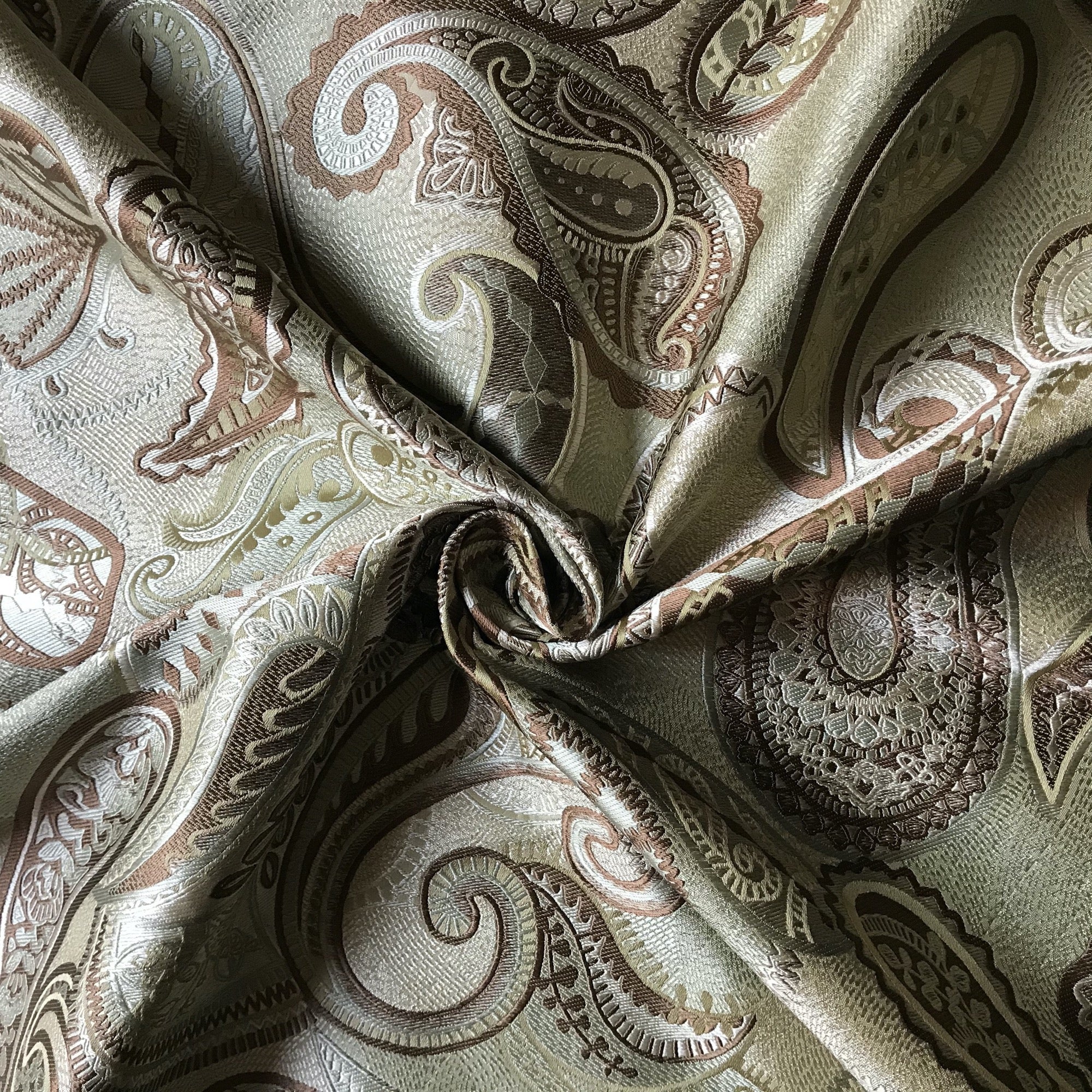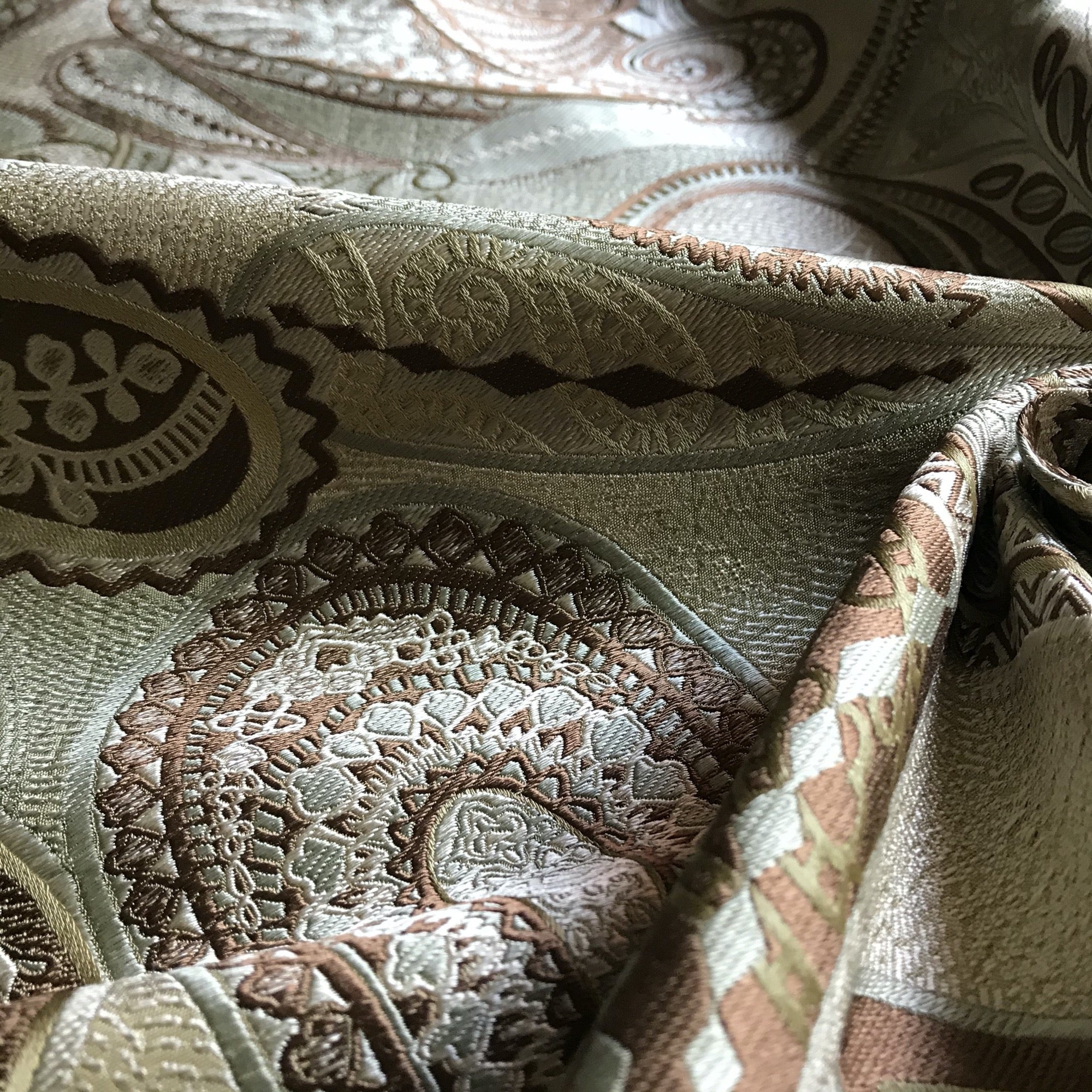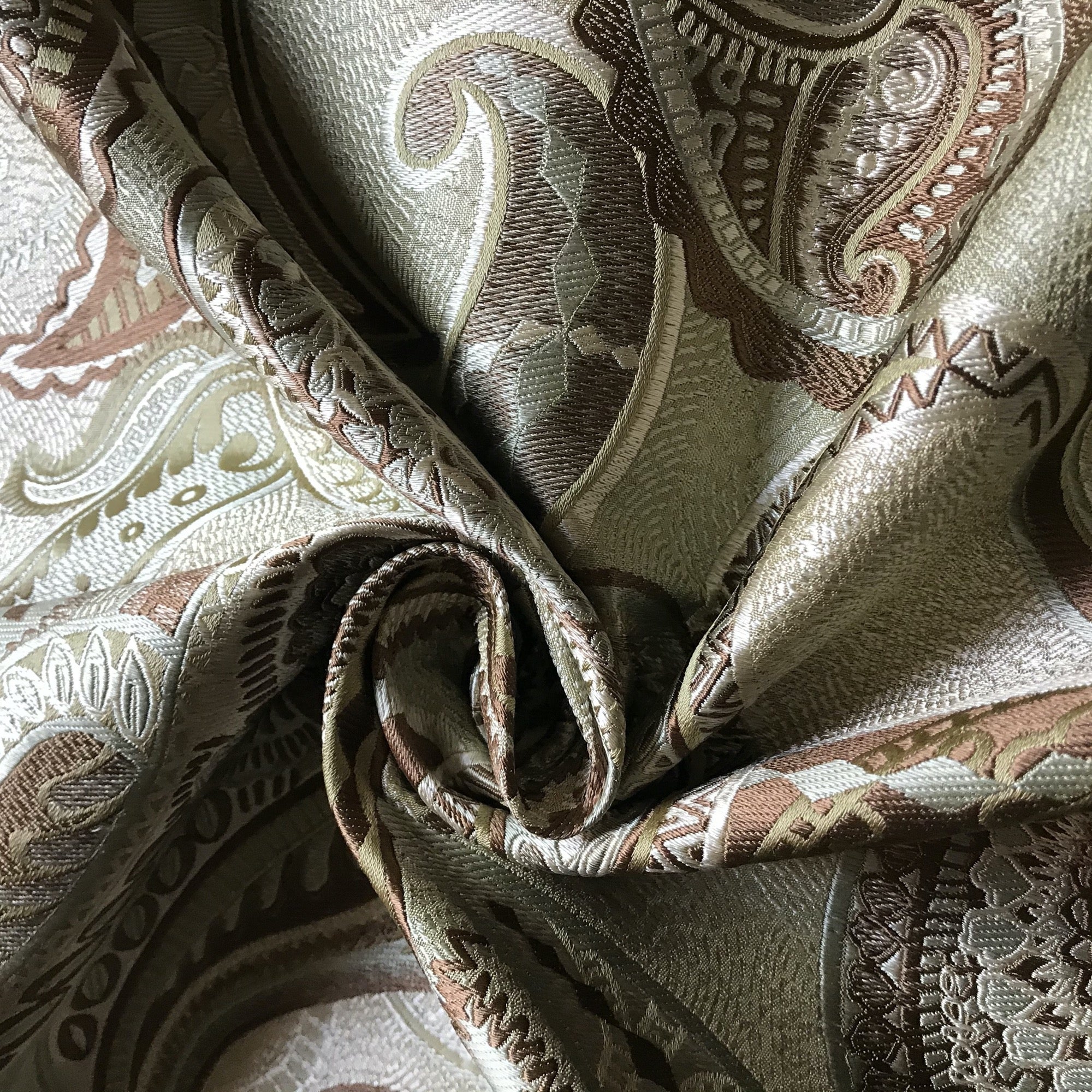 Adorn any interior with this Sage Traditional Paisley Jacquard Upholstery Fabric 54", perfect for arts and crafts, DIY, upholstery, home decorating, and more. Give your bedding, chairs, cushions, windows and more a fresh new look with our selection of high quality fabrics curated by a team of trend leading designers. This luxurious paisley jacquard upholstery fabric in sage meets flair with versatility, offering the perfect personal touch for any traditional aesthetic. Designed and crafted by skilled textile artisans this fabric is made to last and never compromises on quality. All fabric is sold by the yard in 1-yard increments. Unfortunately, we do not accept returns on fabric orders but swatches are available.