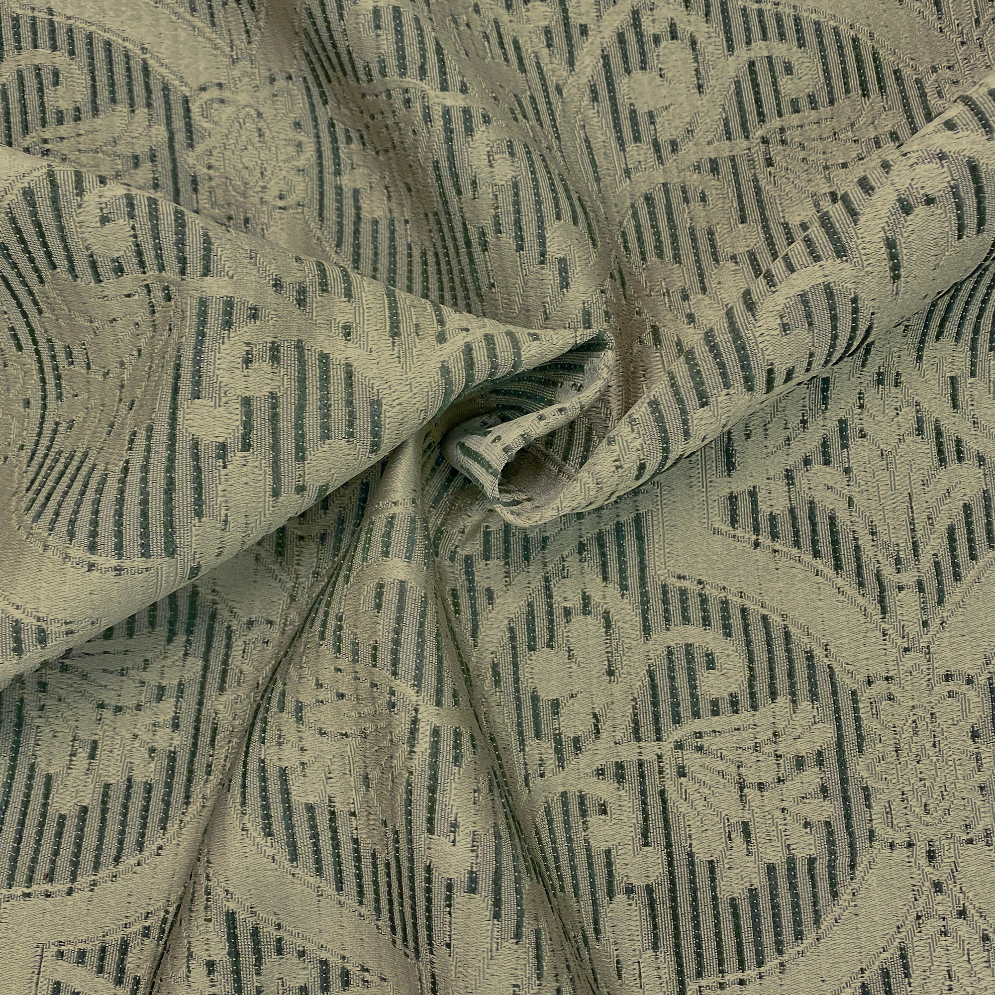 This luxurious damask satin upholstery fabric with raised velvet stripes in green meets flair with versatility, offering the perfect personal touch for any traditional aesthetic. Designed and crafted by skilled textile artisans this fabric is made to last and never compromises on quality. All fabric is sold by the yard in 1-yard increments. Unfortunately, we do not accept returns on fabric orders but swatches are available.