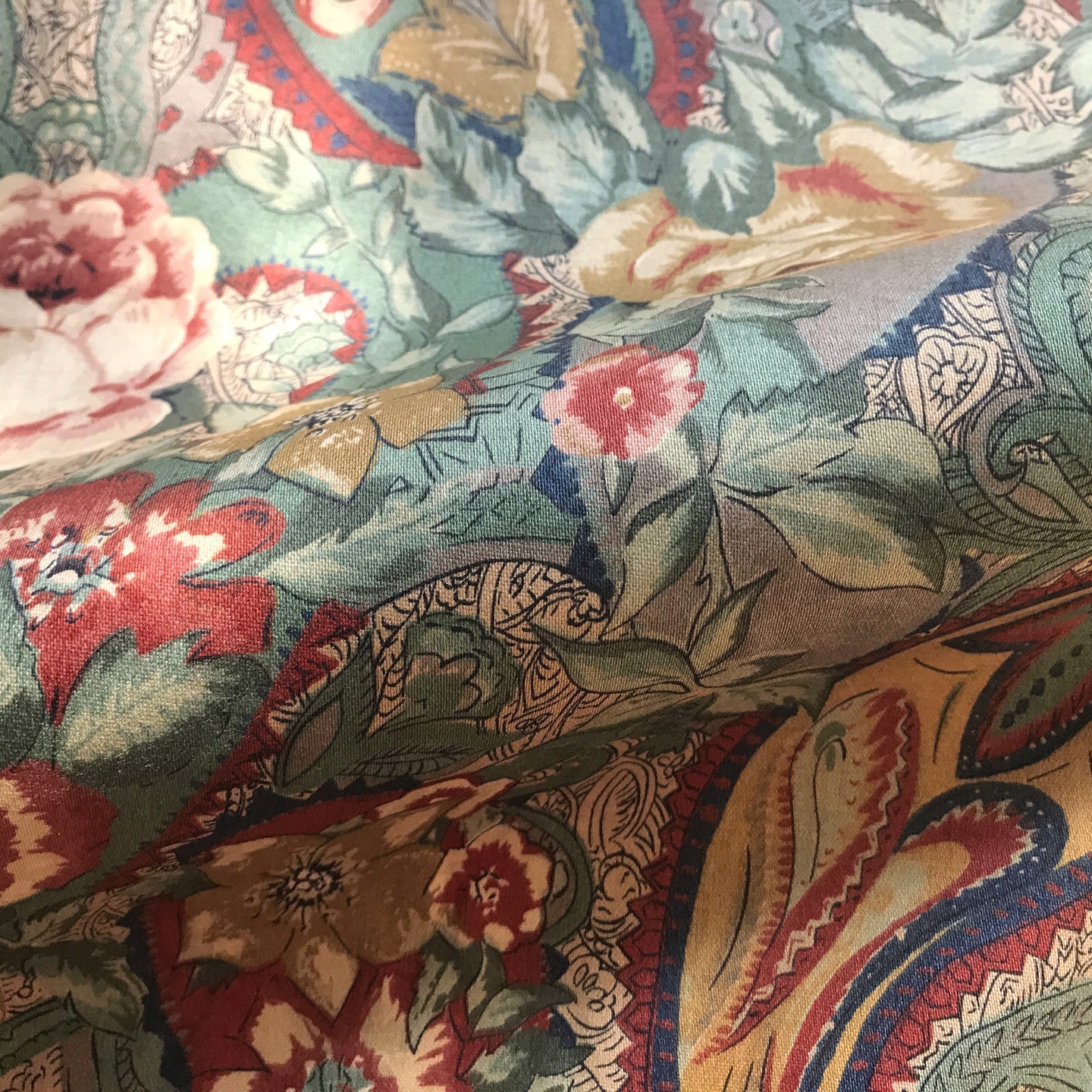 Pastel Traditional Paisley Printed Cotton Upholstery Fabric 54"