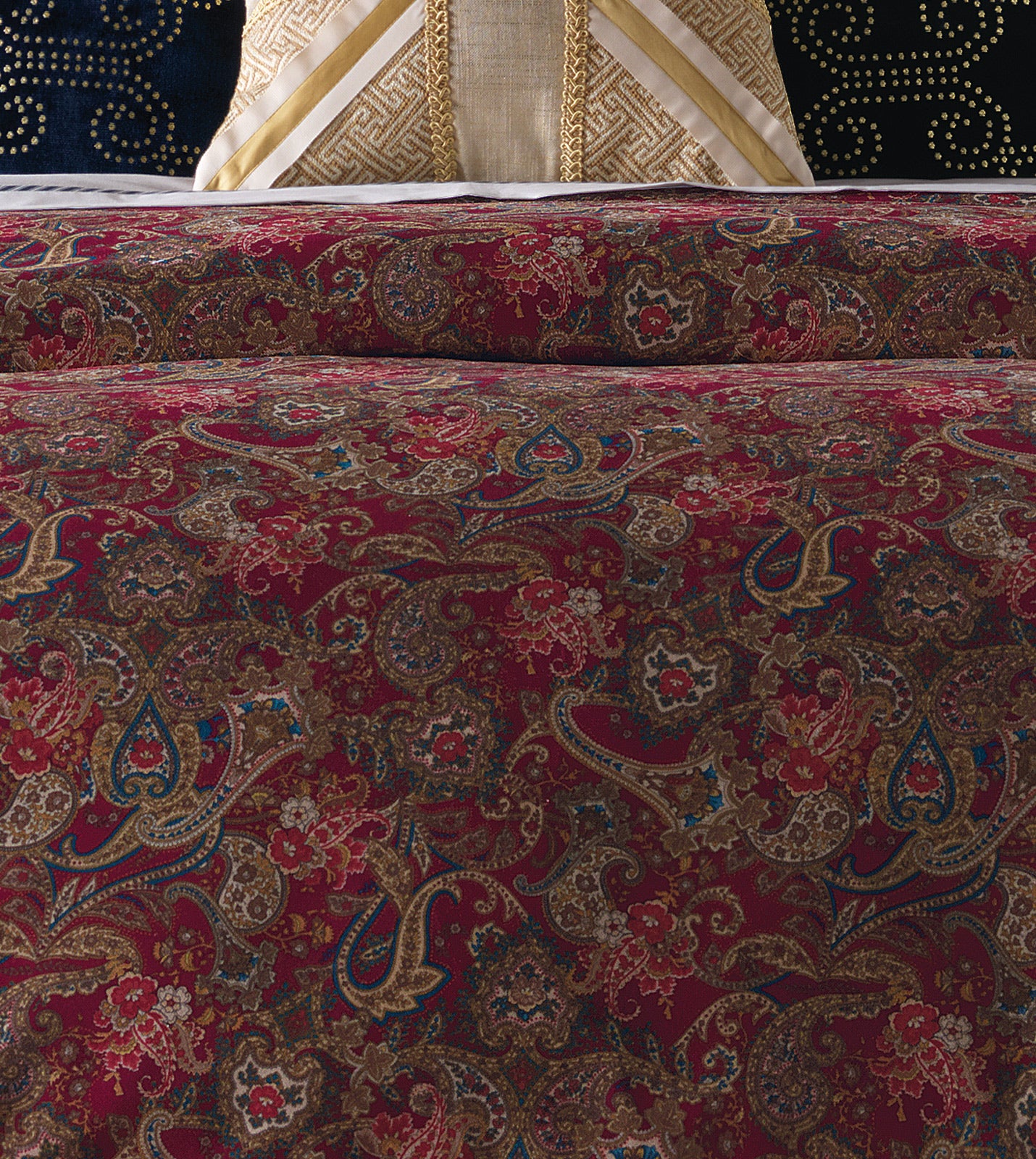 - Elegant floral paisley duvet cover in deep rouge