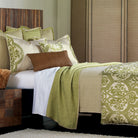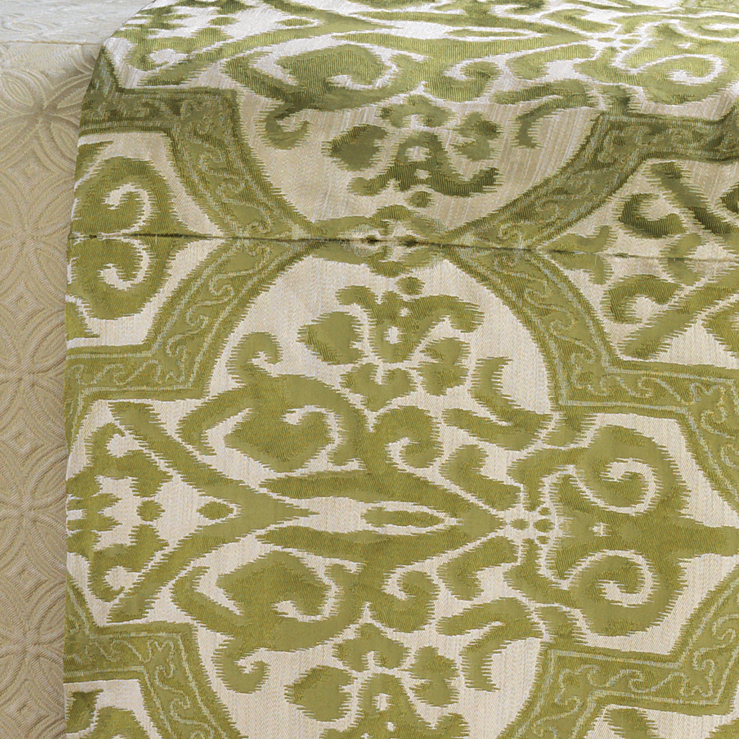 • Duvet cover with in avocado green damask on silk blend fabric