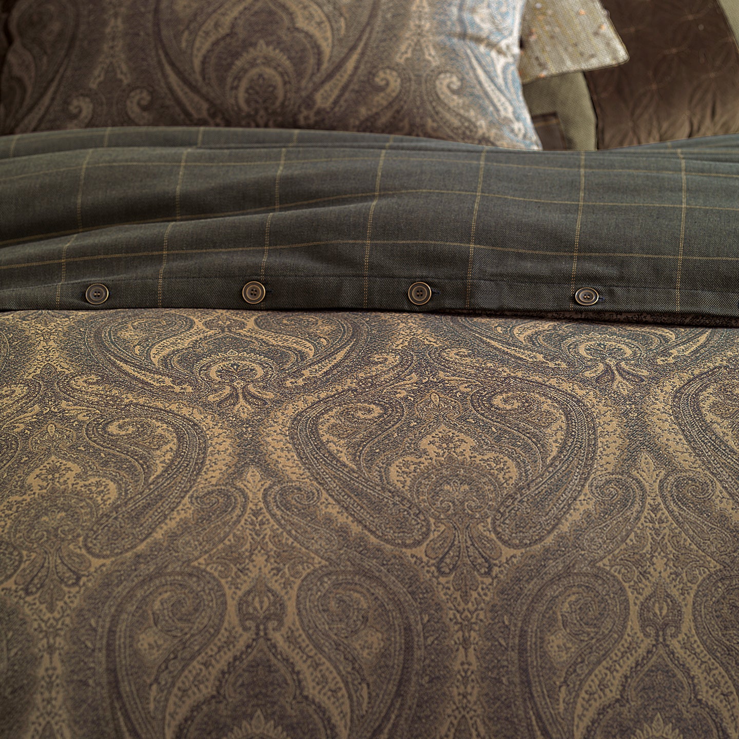 - Masculine duvet cover with a paisley design in copper and hazel