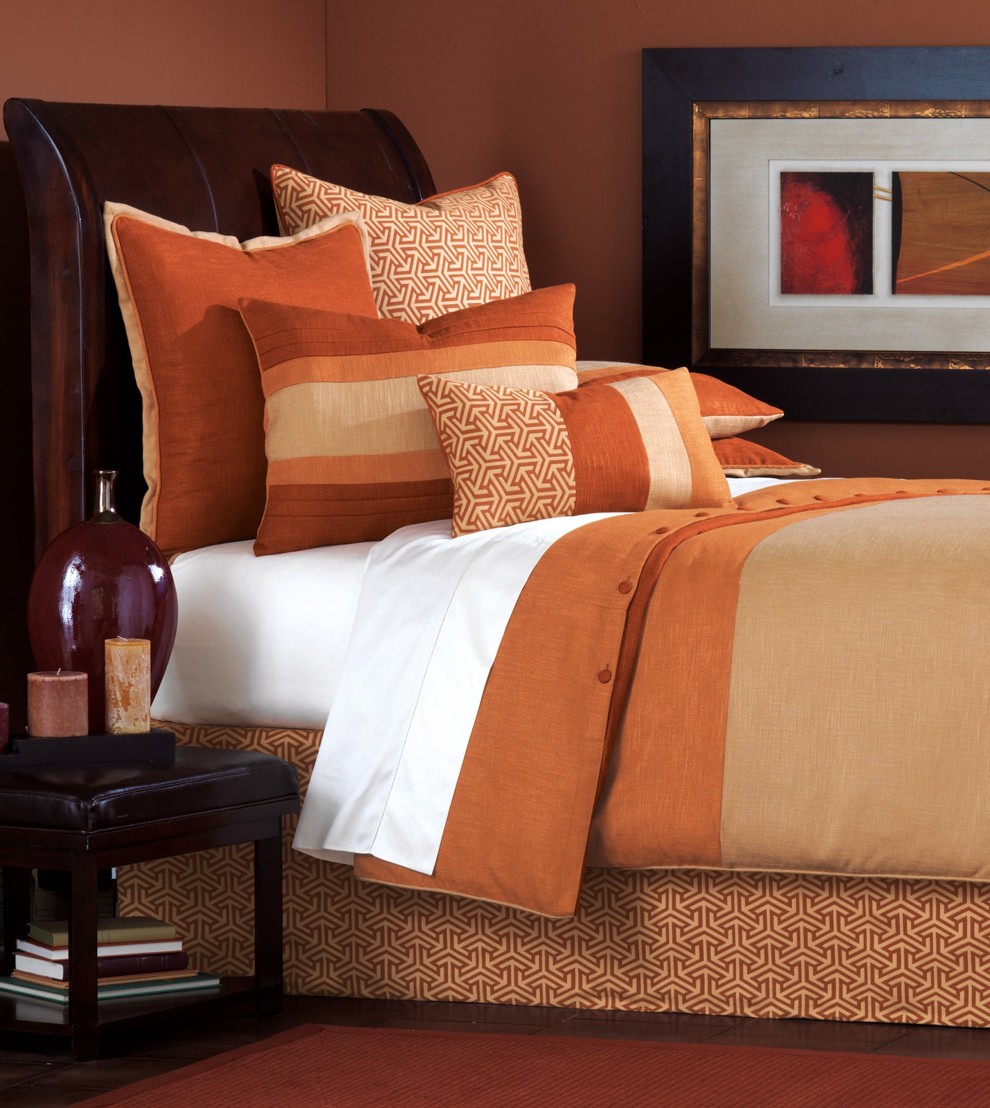 Horizontal striped duvet cover in orange hues