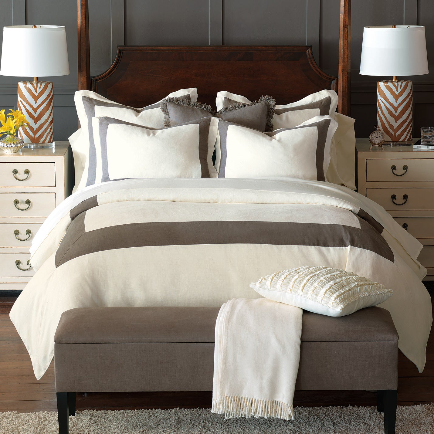 Luxury Duvets & Quilts: Complementary textures will elevate the bedding.
