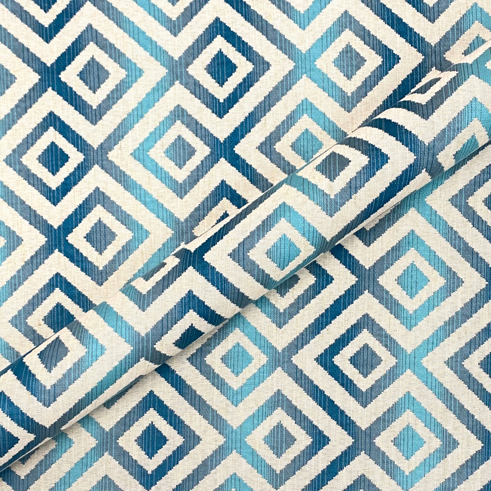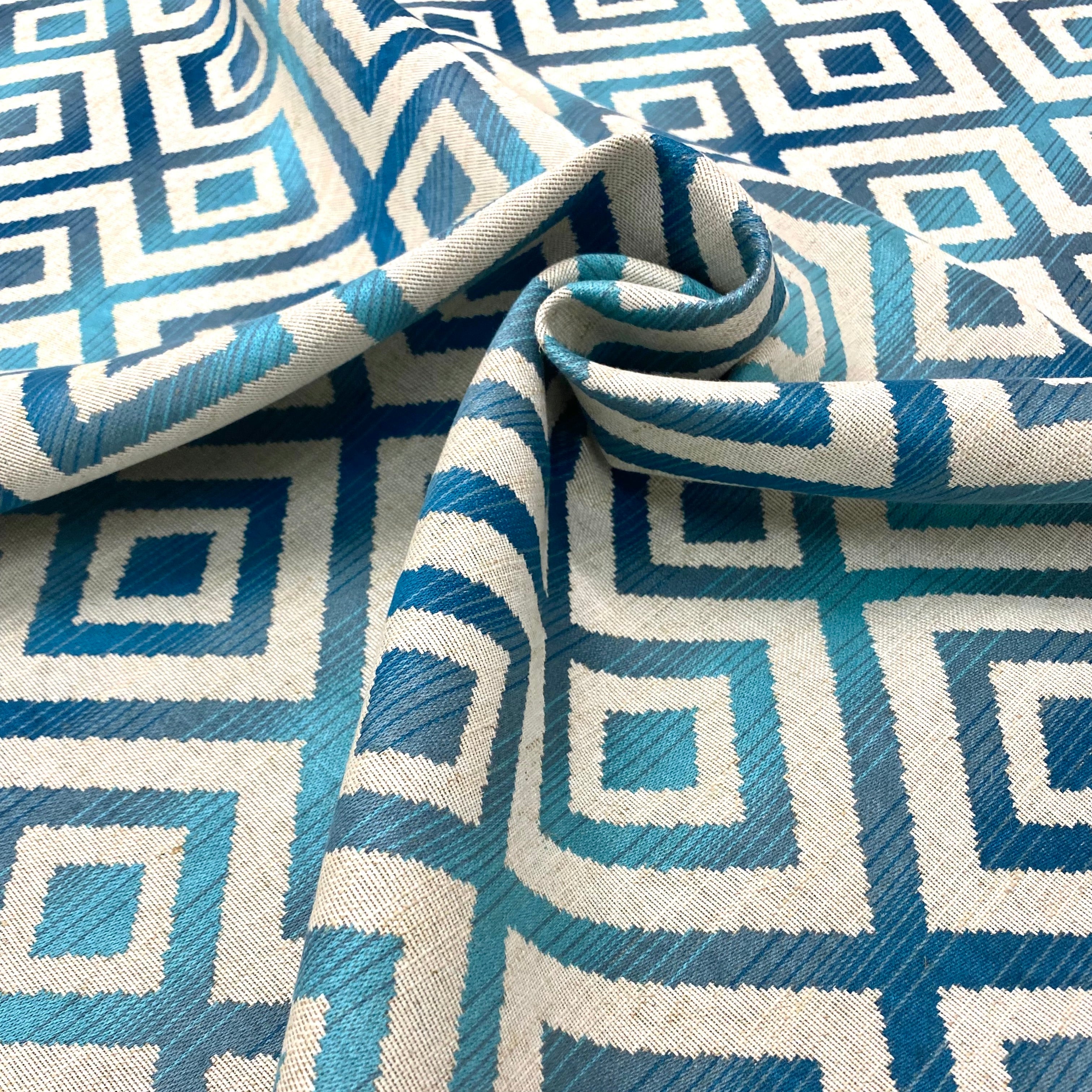 Tempus Azure Geometric Jacquard Upholstery Fabric 54"