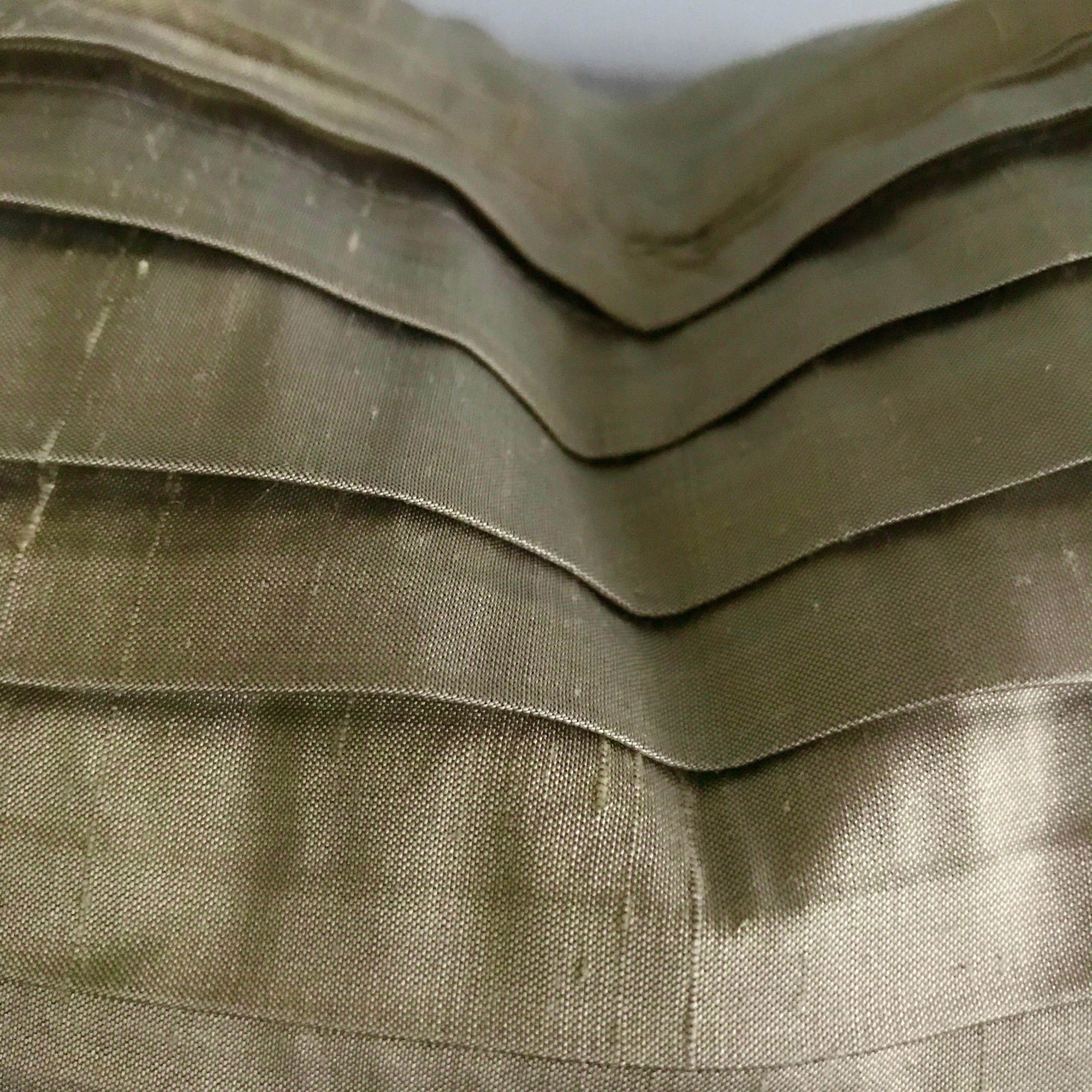 • Sage green shantung silk with horizontal pleating adds elegant texture
