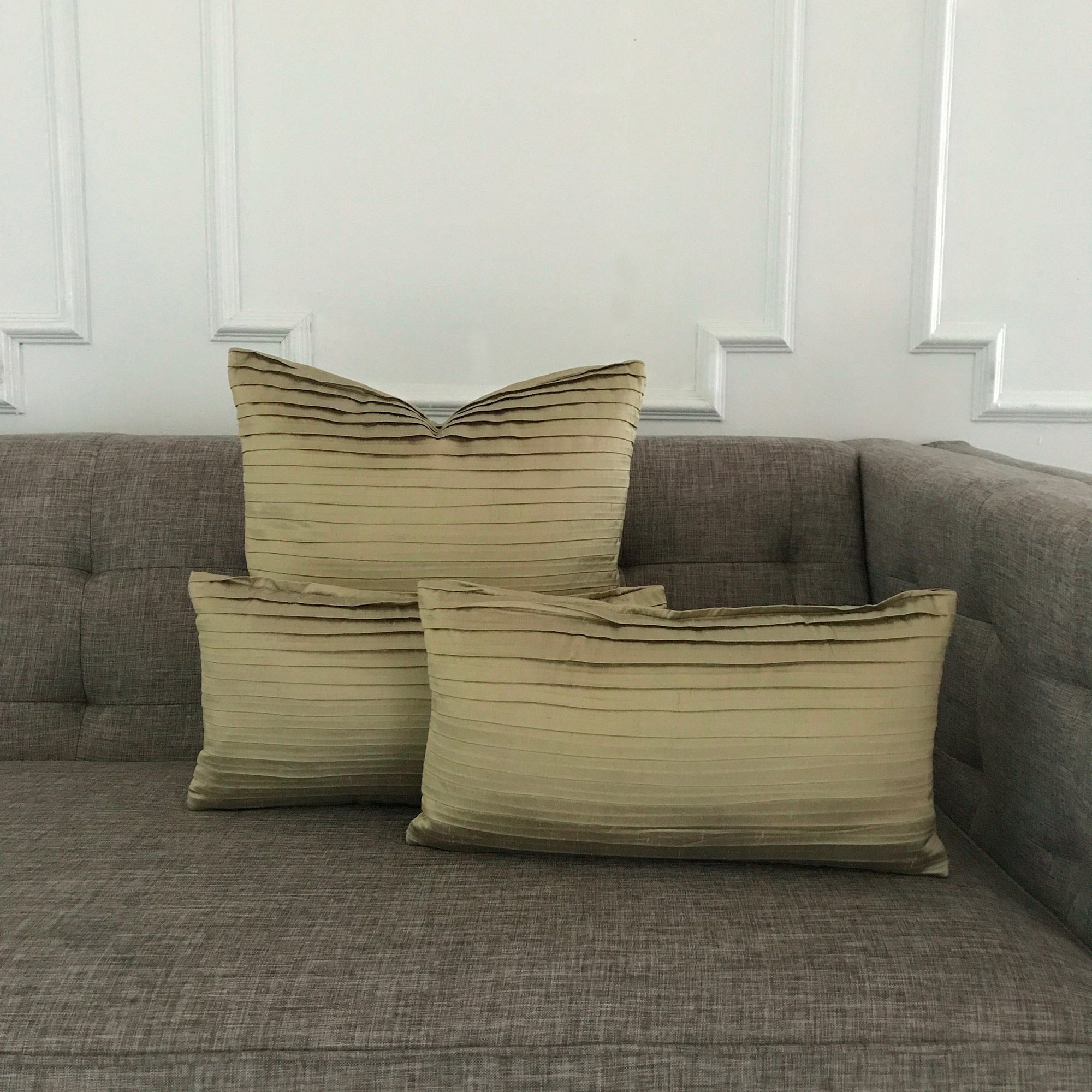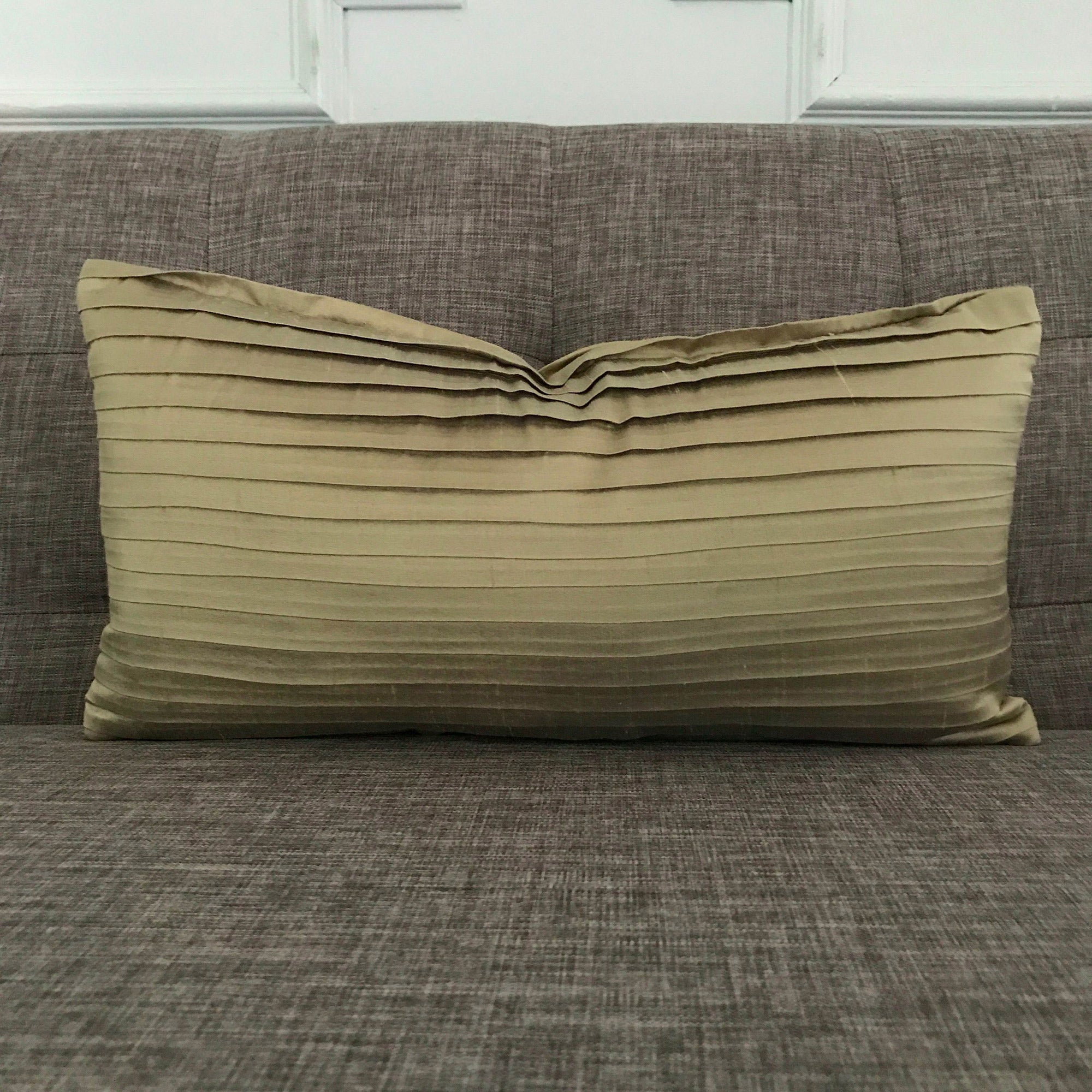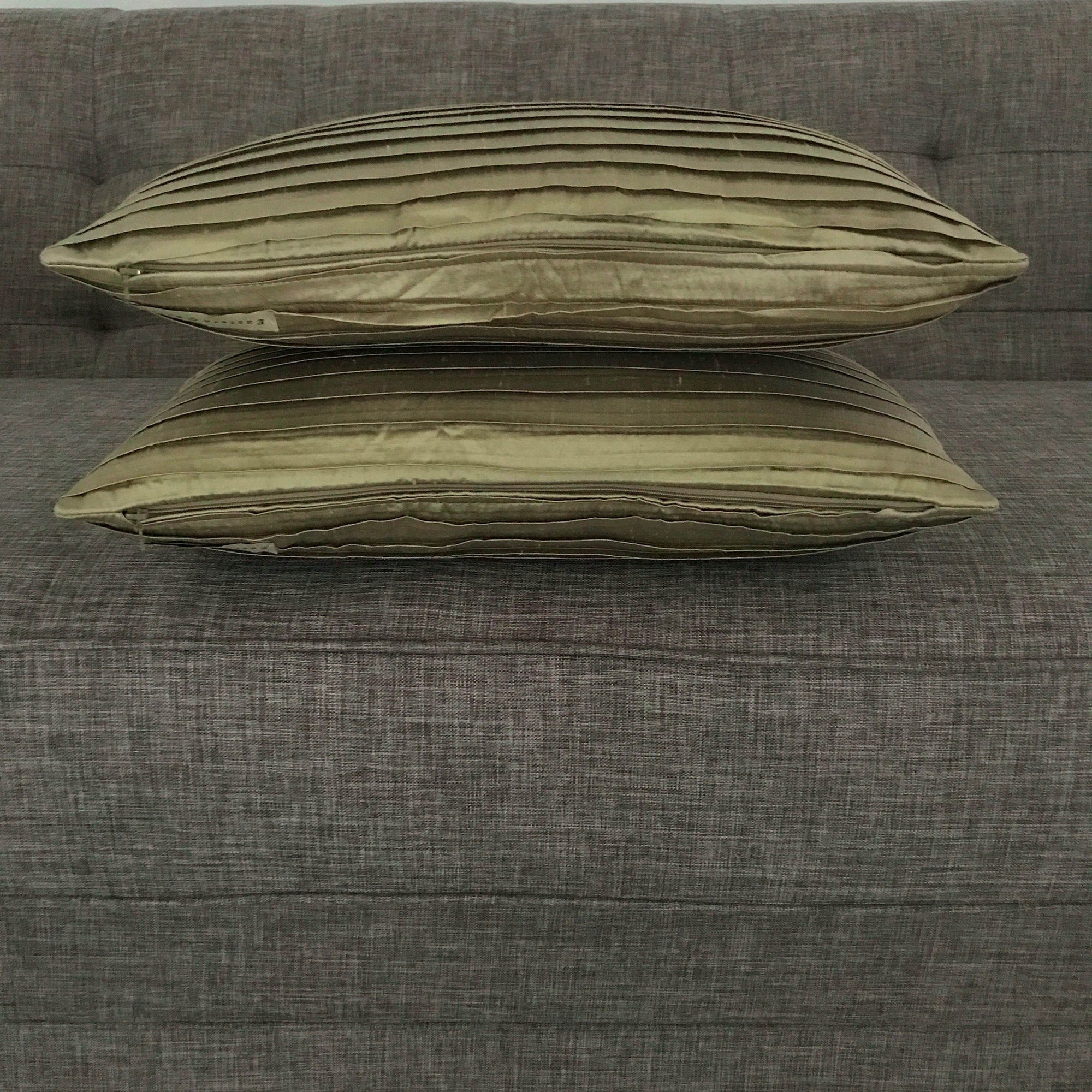 Sage Green Shantung Silk Pleated Rectangular Lumbar Pillow Cover 10x18