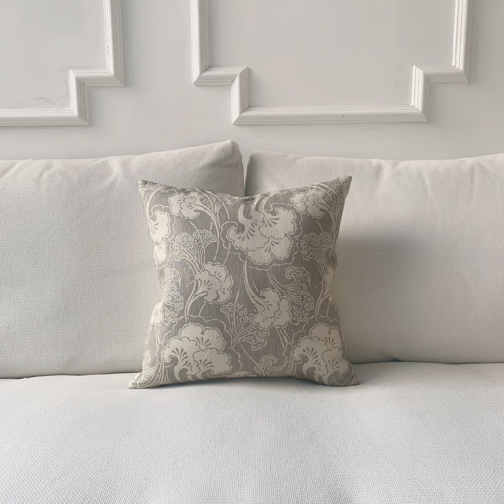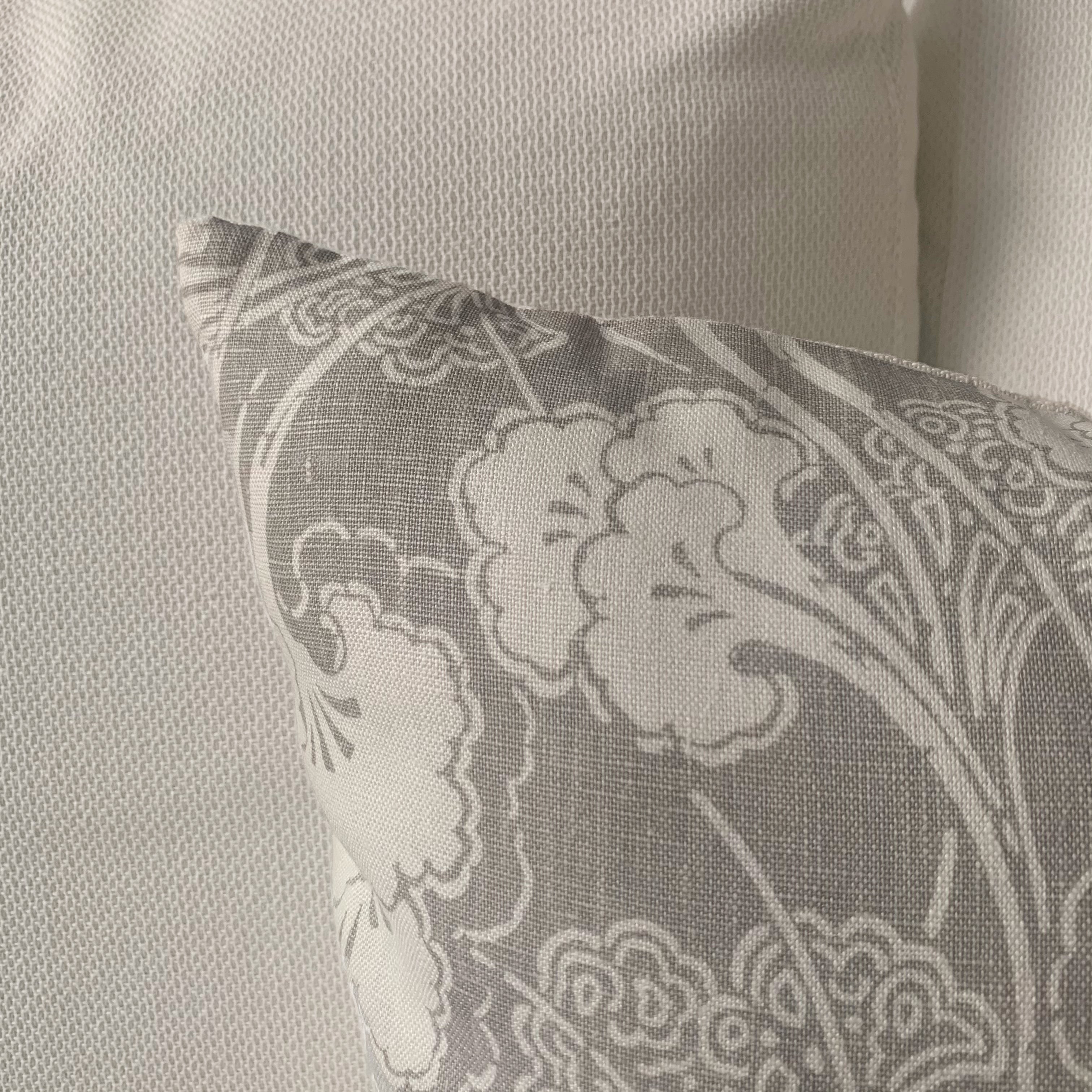Light Gray Floral Botanical Throw Pillow Cover 17x17