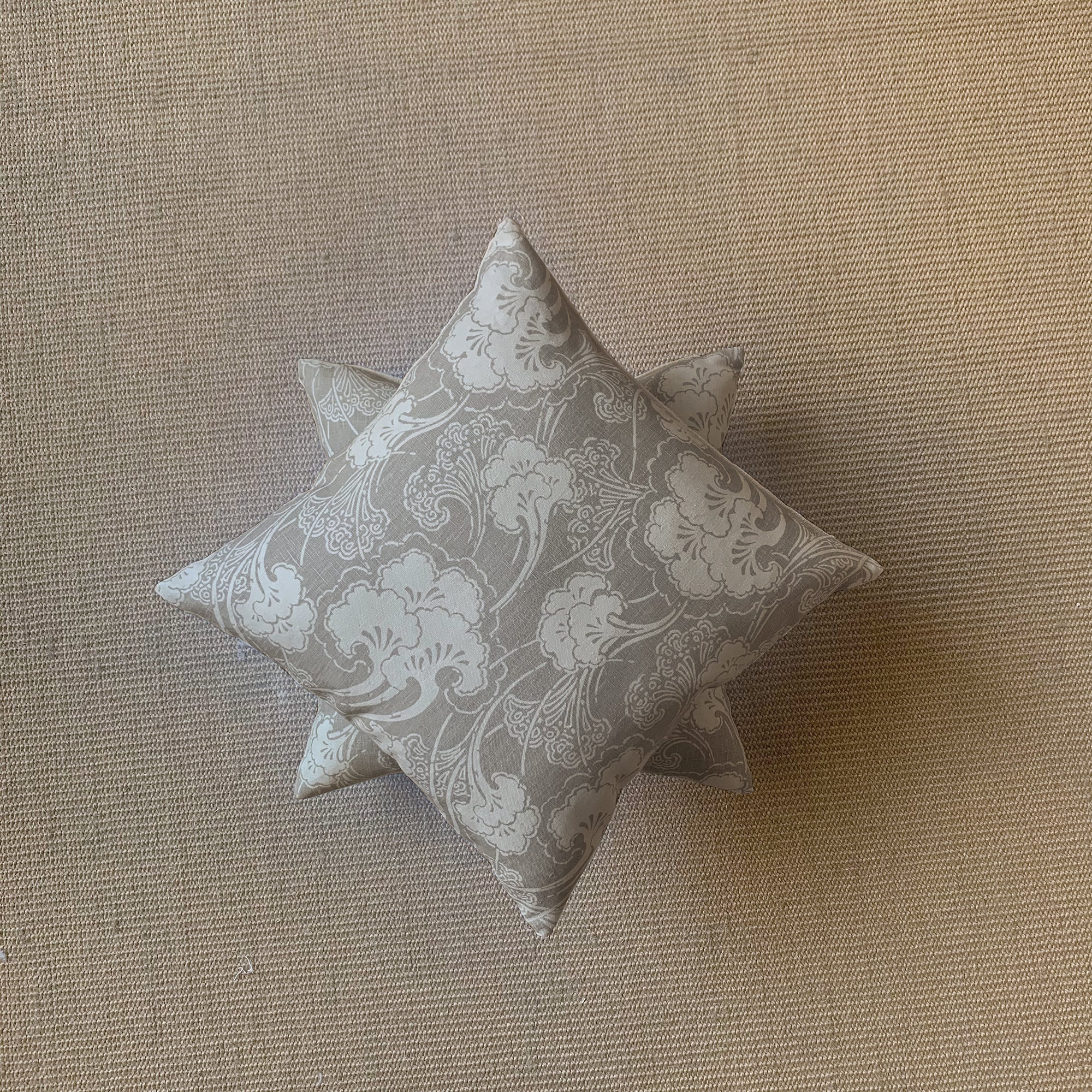 - Botanical pattern in light gray and ivory for a refined, nature-inspired look