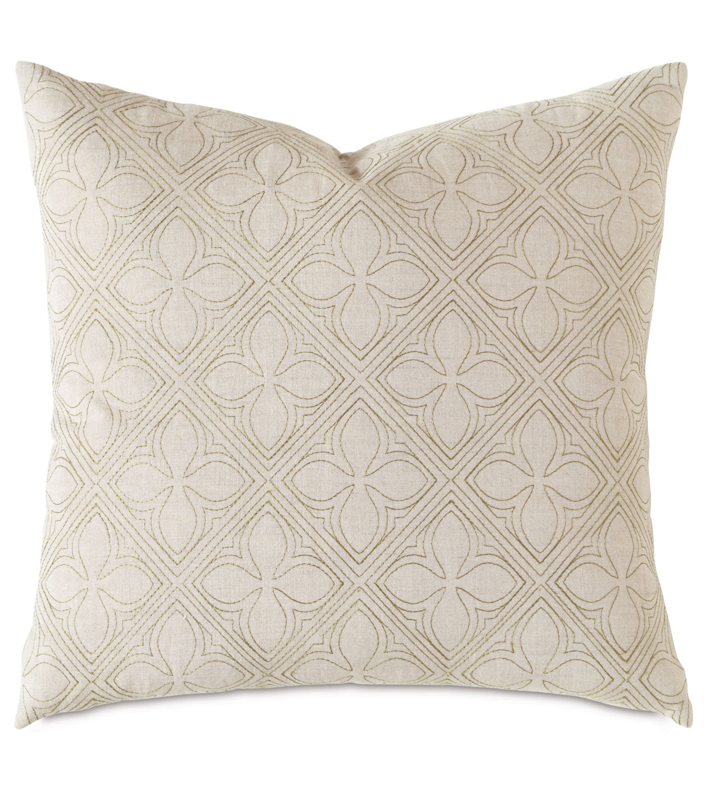- Throw pillow with an embroidered floral trellis pattern in neutral linen blend fabric