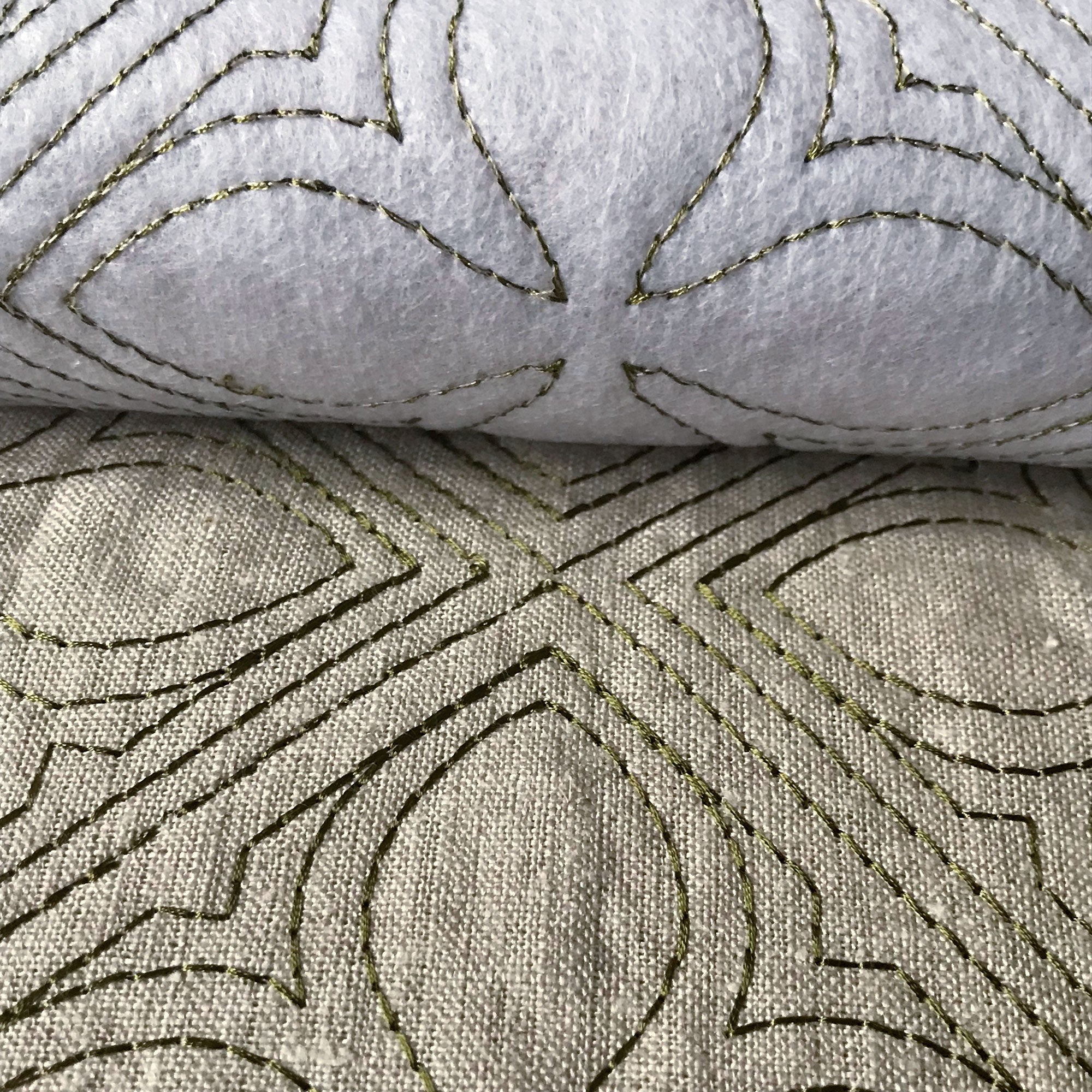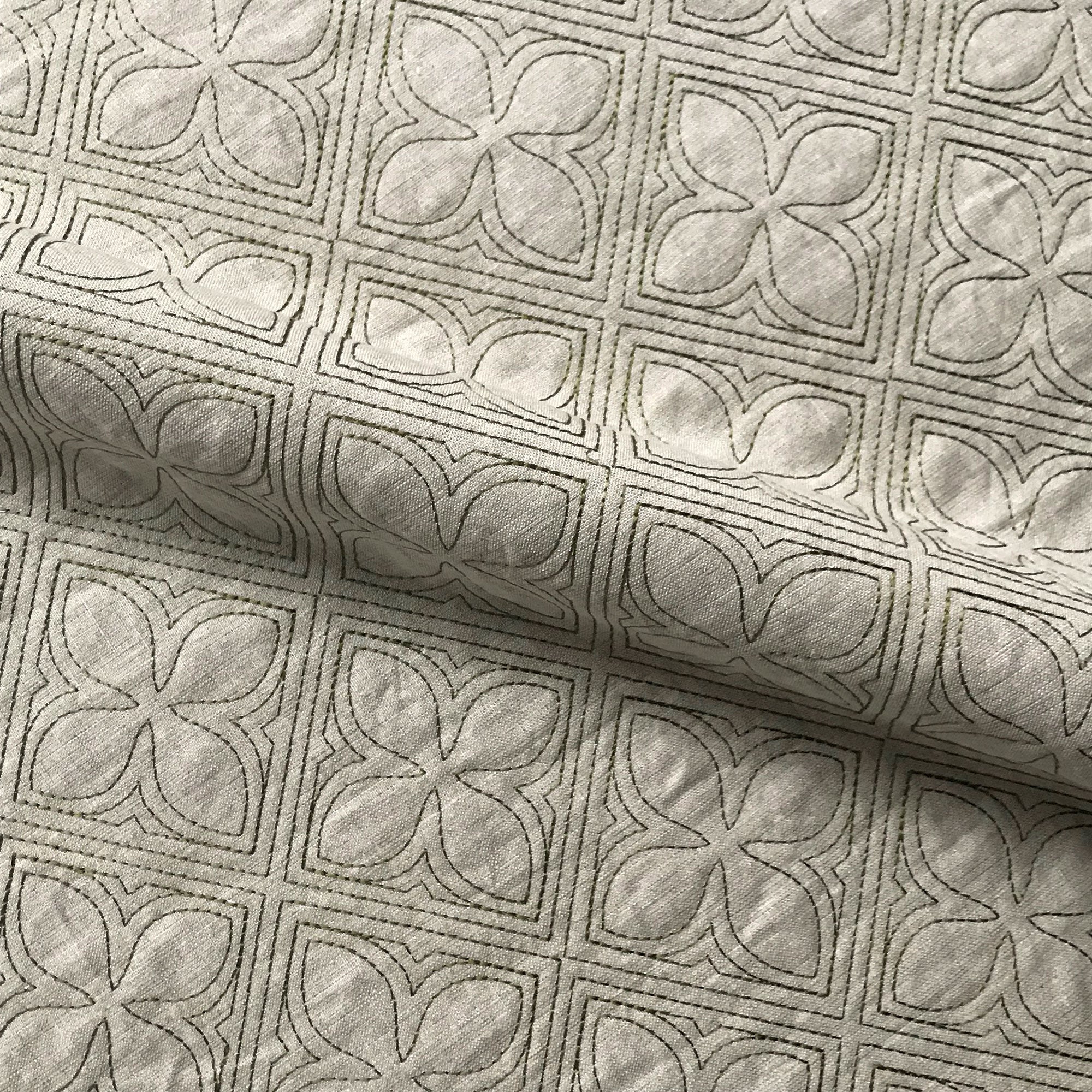 Neutral Traditional Geometric Embroidered Quilted Upholstery Fabric 54"