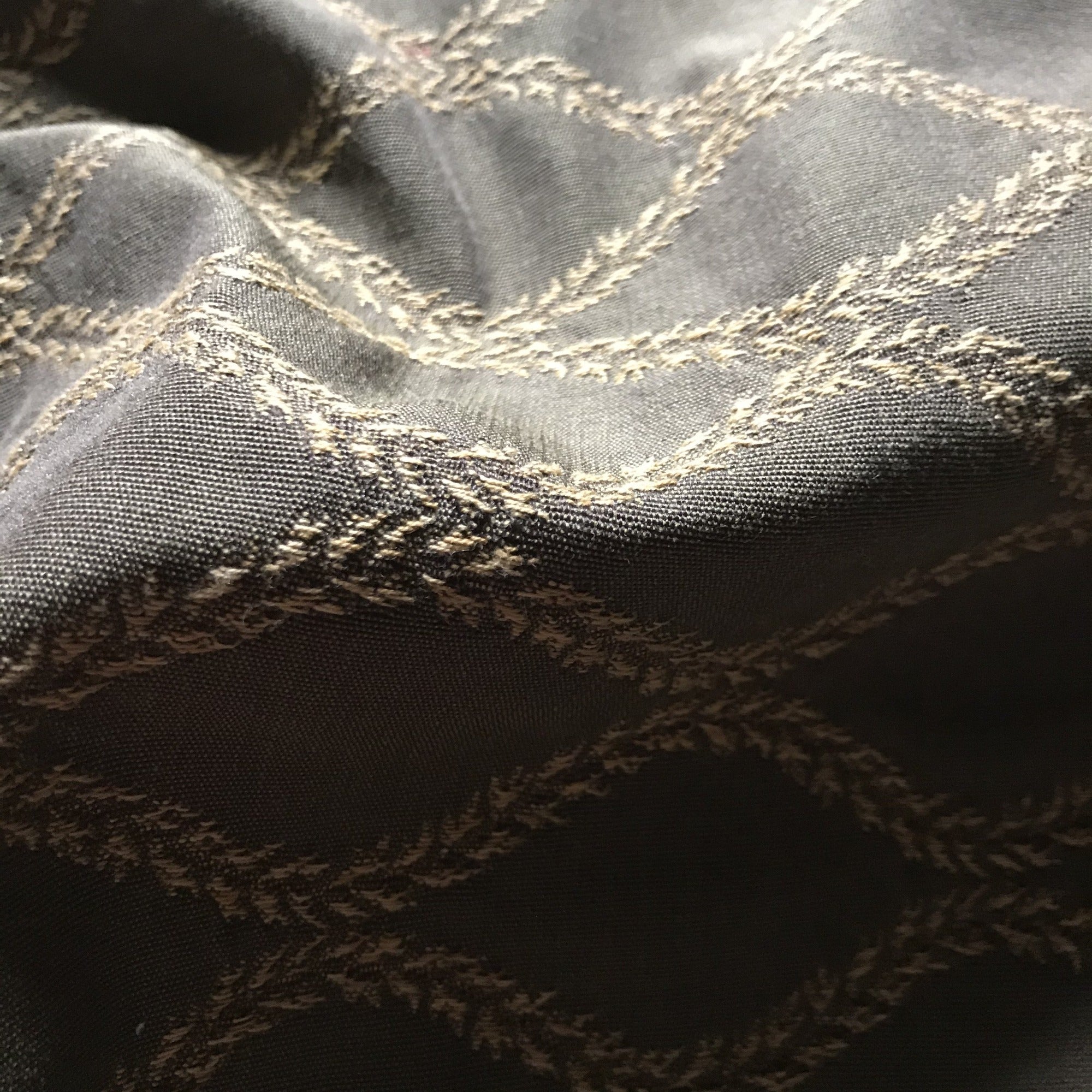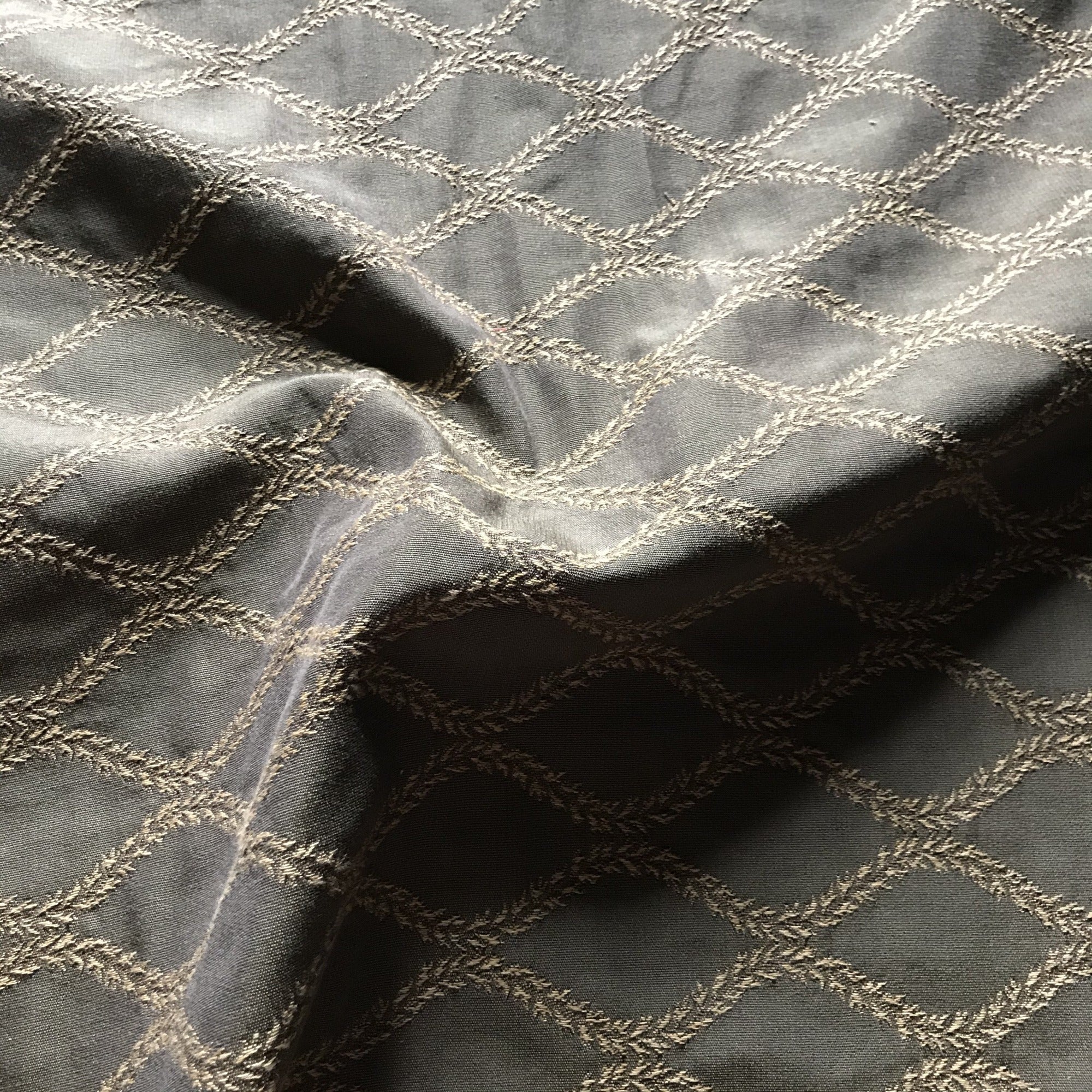Enliven any interior with this Olive Ogee Vine Embroidered Upholstery Fabric 54", perfect for all your upholstery needs. Give your bedding, chairs, cushions, windows and more a fresh new look with our selection of high quality fabrics curated by a team of forward thinking designers. Having limitless uses, this luxurious olive embroidered upholstery fabric meets flair with versatility, offering the perfect personal touch for any Traditional aesthetic. Designed to last, this fabric can provide the perfect look for your home. All fabric is sold by the yard in 1-yard increments. Unfortunately, we do not accept returns on fabric orders but samples are available by purchasing a $2 swatch.