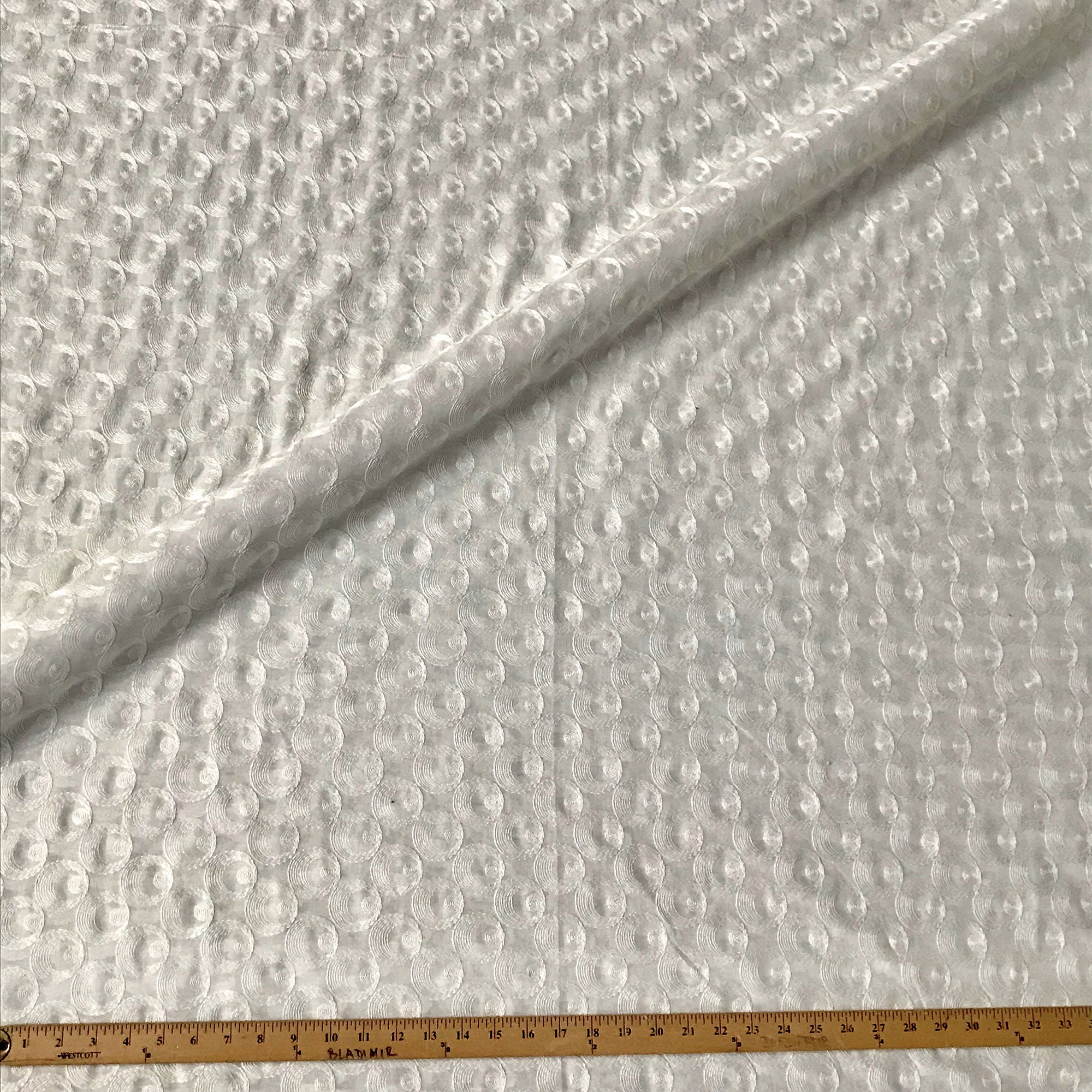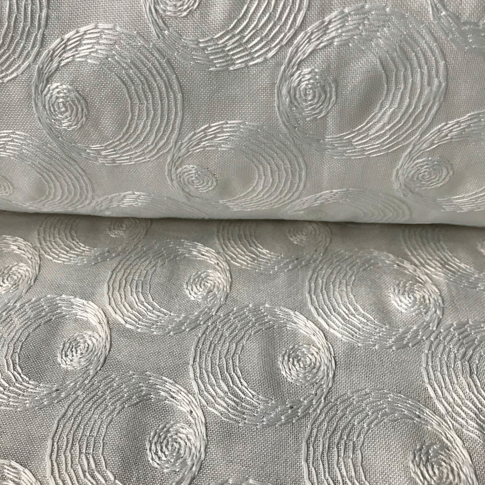 This luxurious embroidered geometric upholstery fabric in white meets flair with versatility, offering the perfect personal touch for any contemporary aesthetic. Designed and crafted by skilled textile artisans this fabric is made to last and never compromises on quality. All fabric is sold by the yard in 1-yard increments. Unfortunately, we do not accept returns on fabric orders but swatches are available.