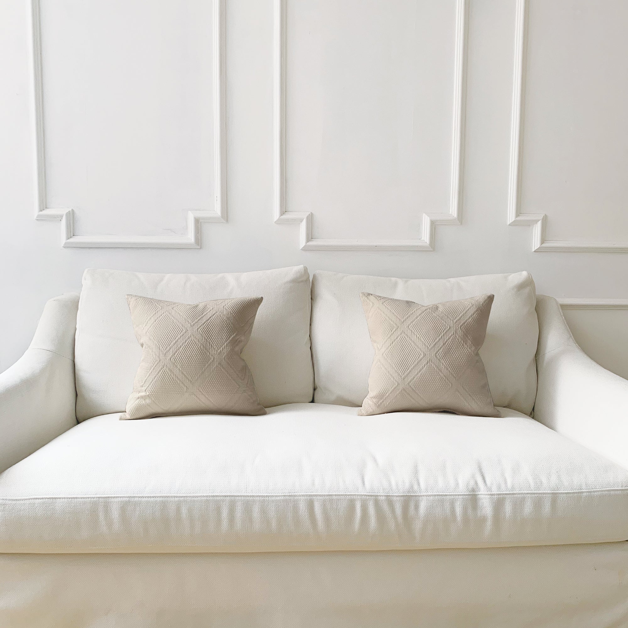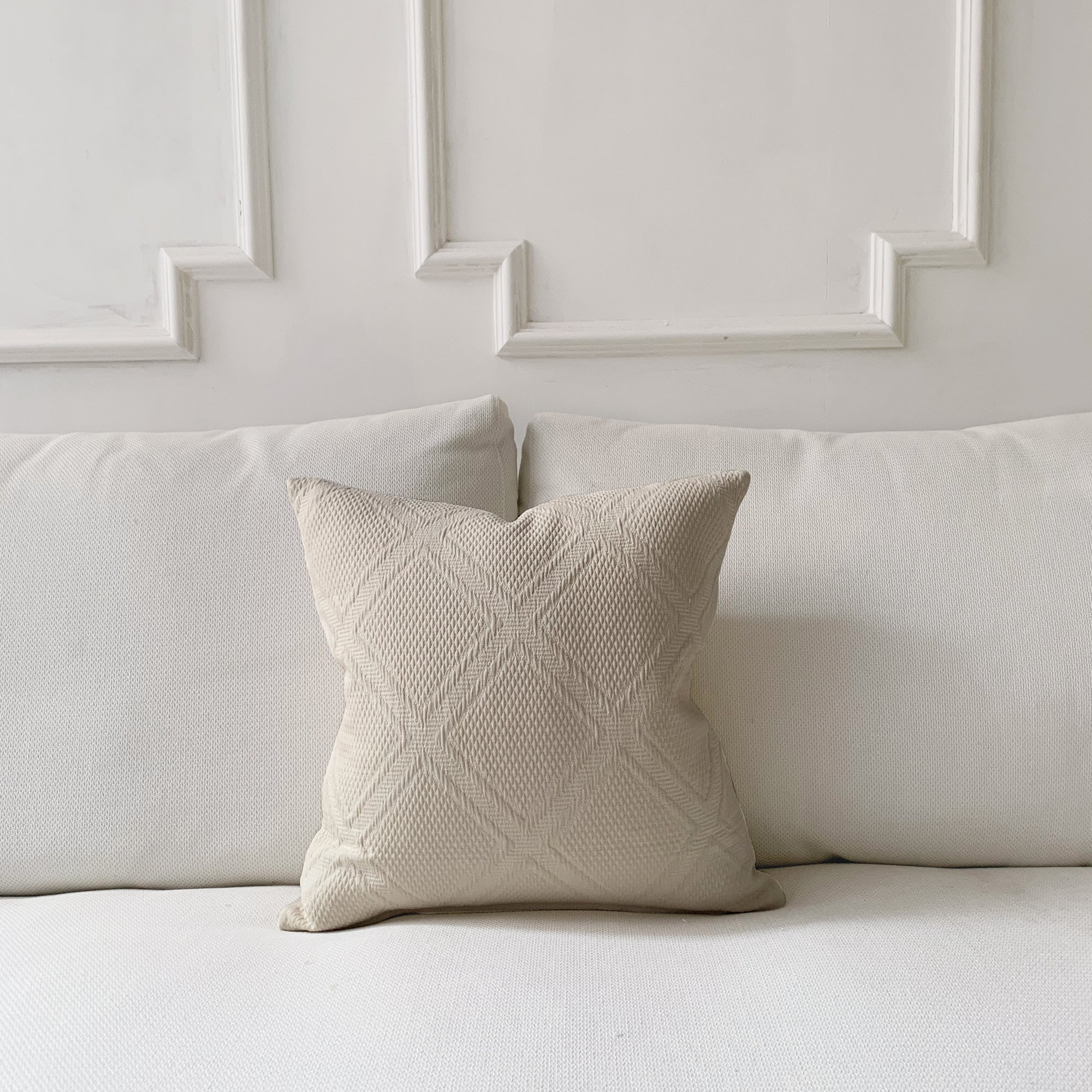 ⁌ Bring refined elegance to your space with this ivory embroidered lattice throw pillow cover. Featuring a beautifully embroidered lattice design, this pillow cover adds subtle texture and a touch of glamour to any décor. The soft ivory hue and intricate detailing make it a perfect accent for sofas, beds, or accent chairs, seamlessly complementing modern, classic, and transitional interiors.