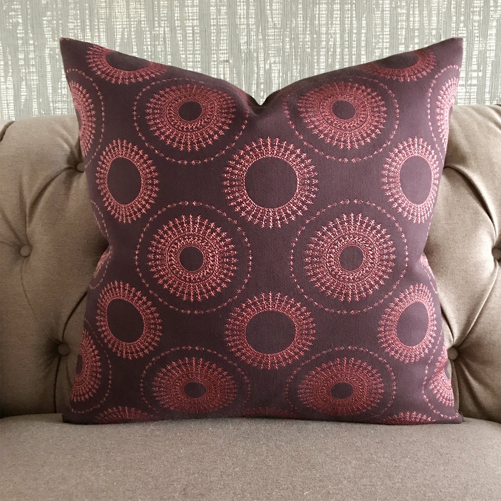 Moorish Purple Boho Circular Geometric Throw Pillow Cover 22x22