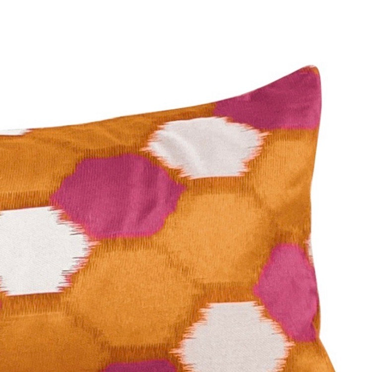 • Ikat-inspired jacquard design in bold orange and pink tones for a vibrant, retro-modern look
