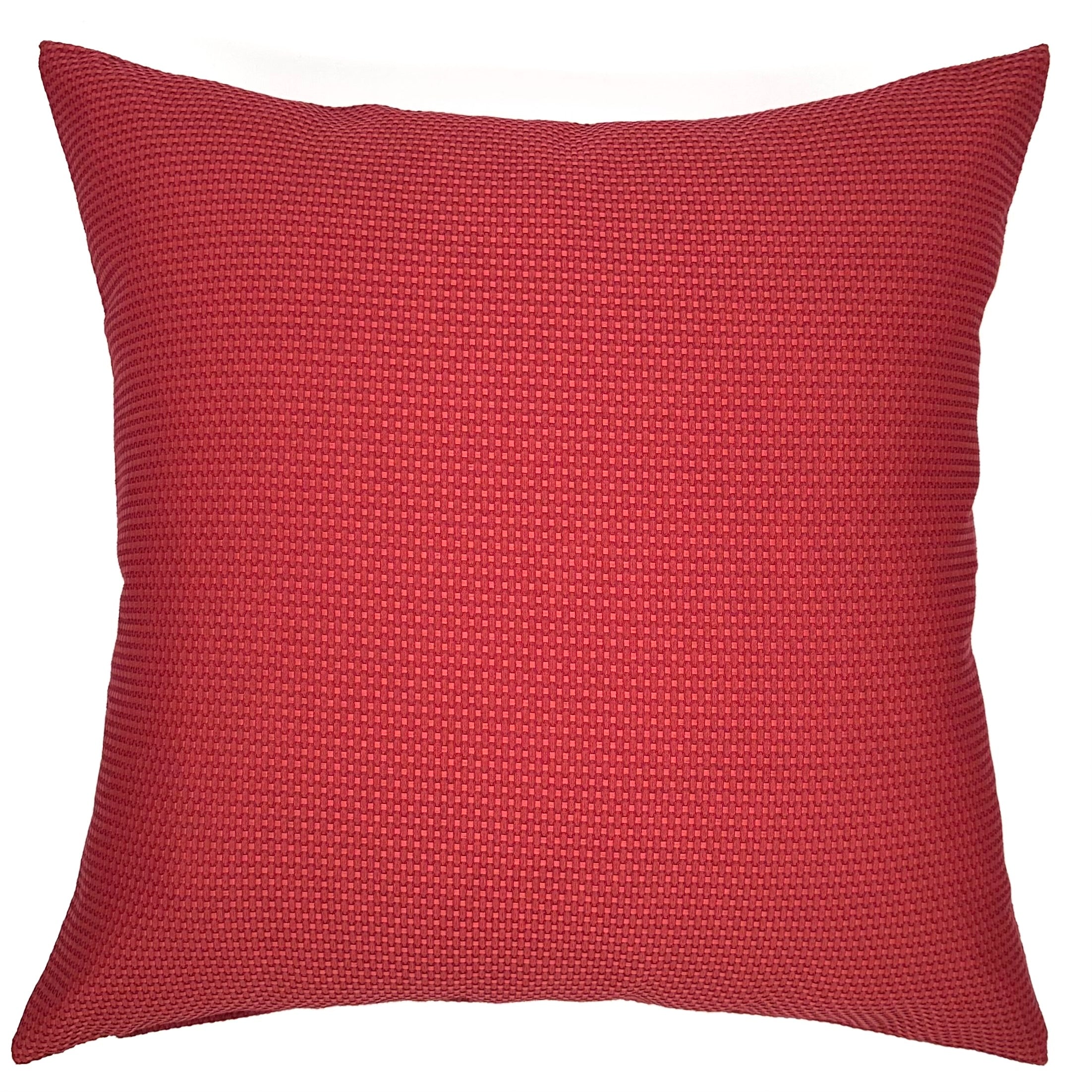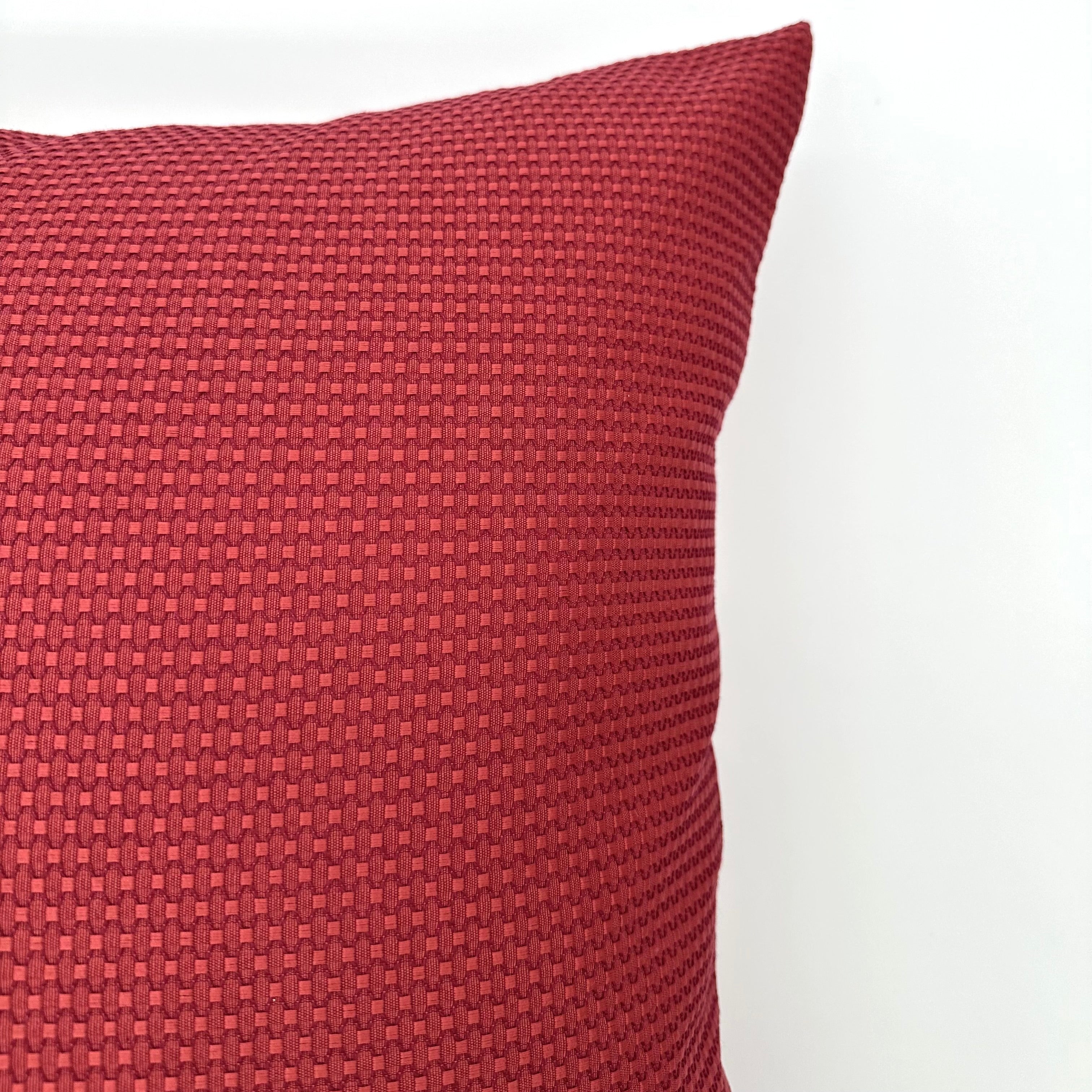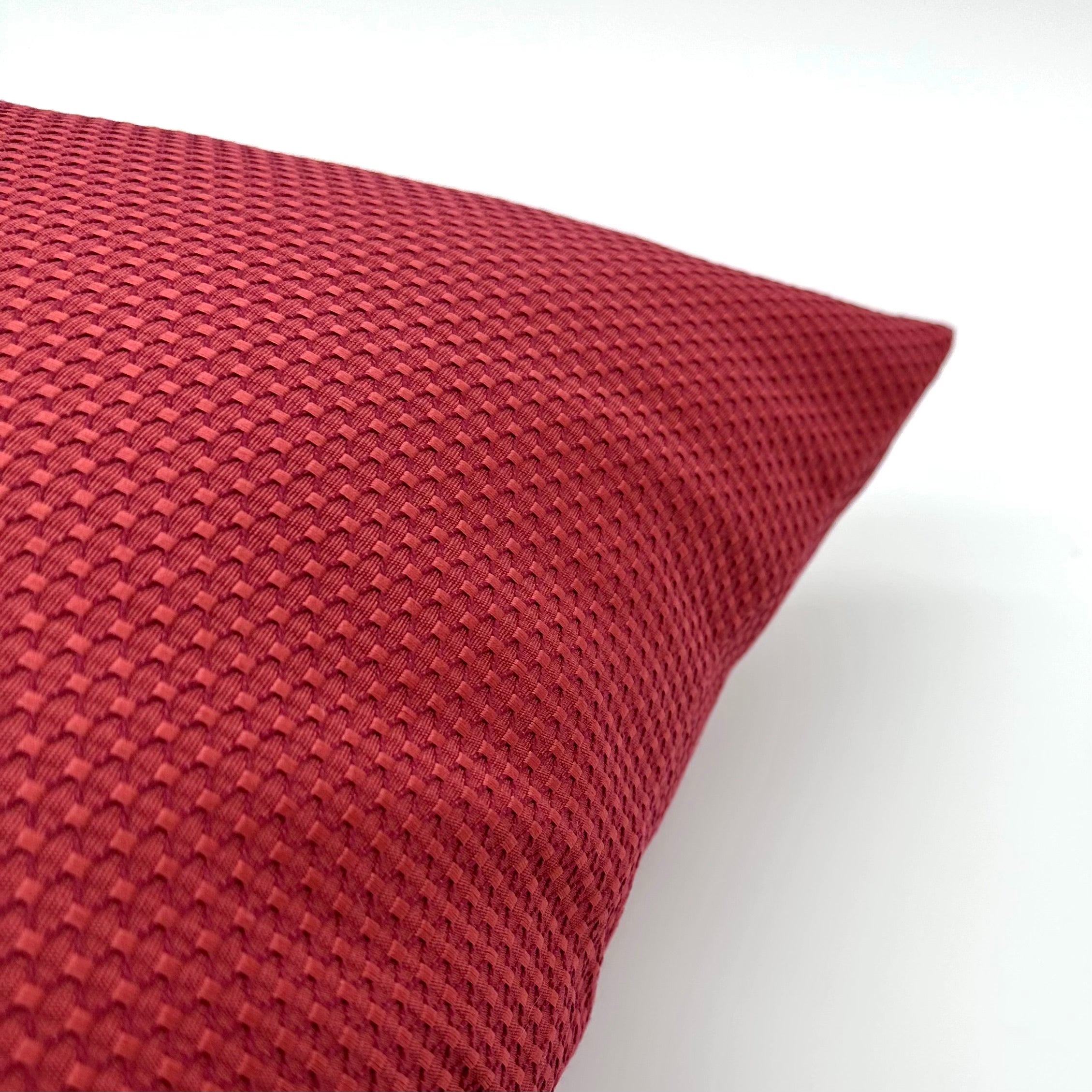 • Jacquard decorative pillow cover with a honeycomb pattern in vibrant scarlet