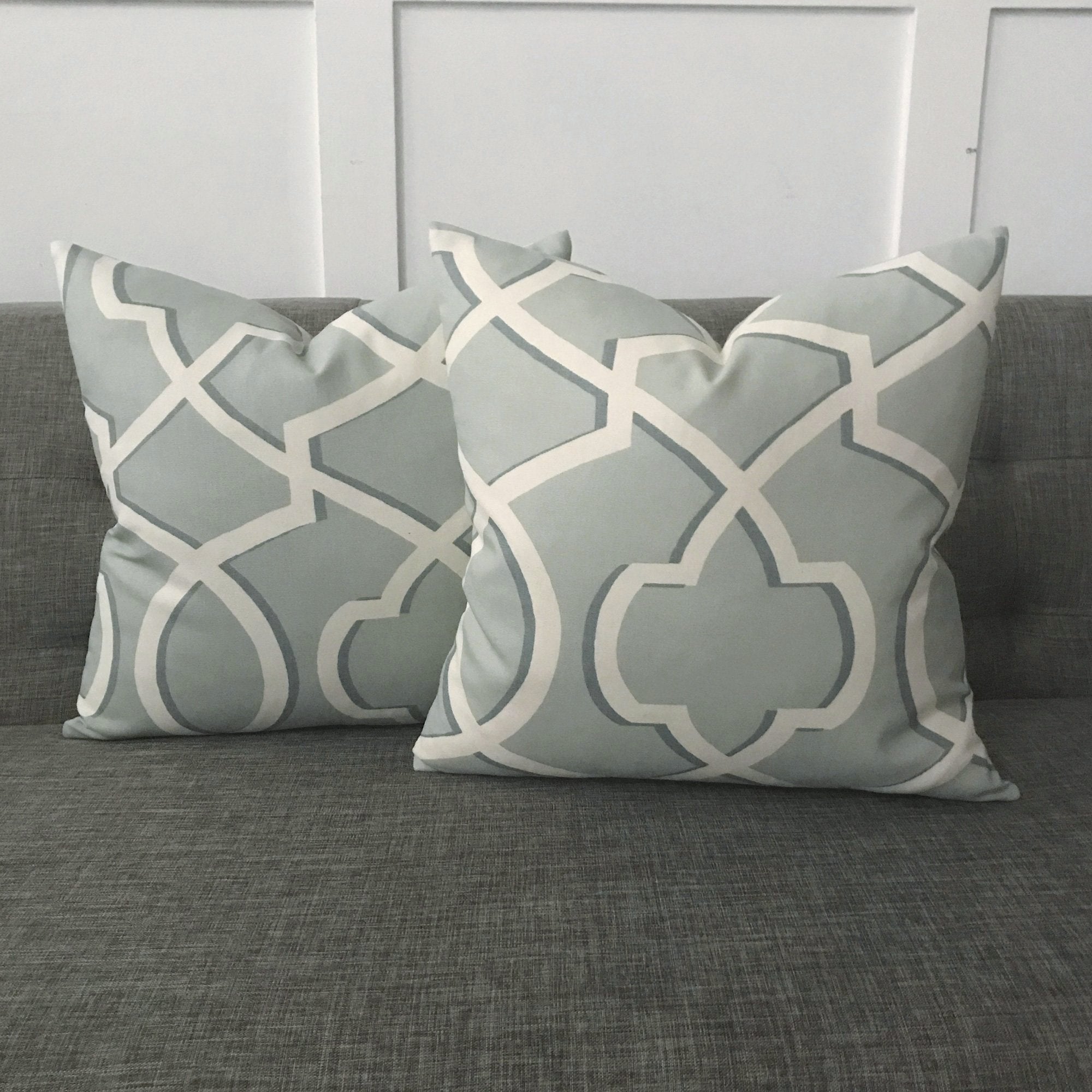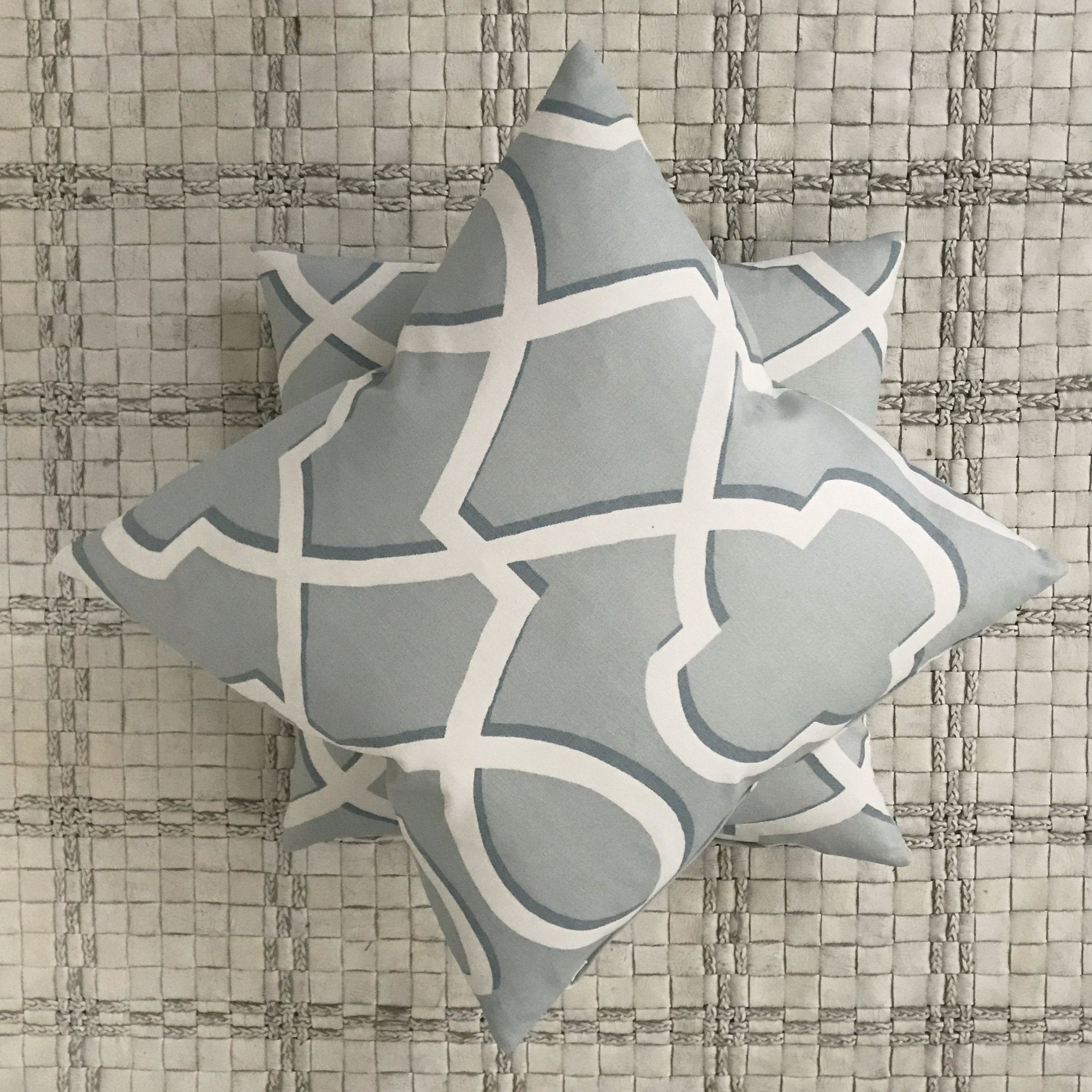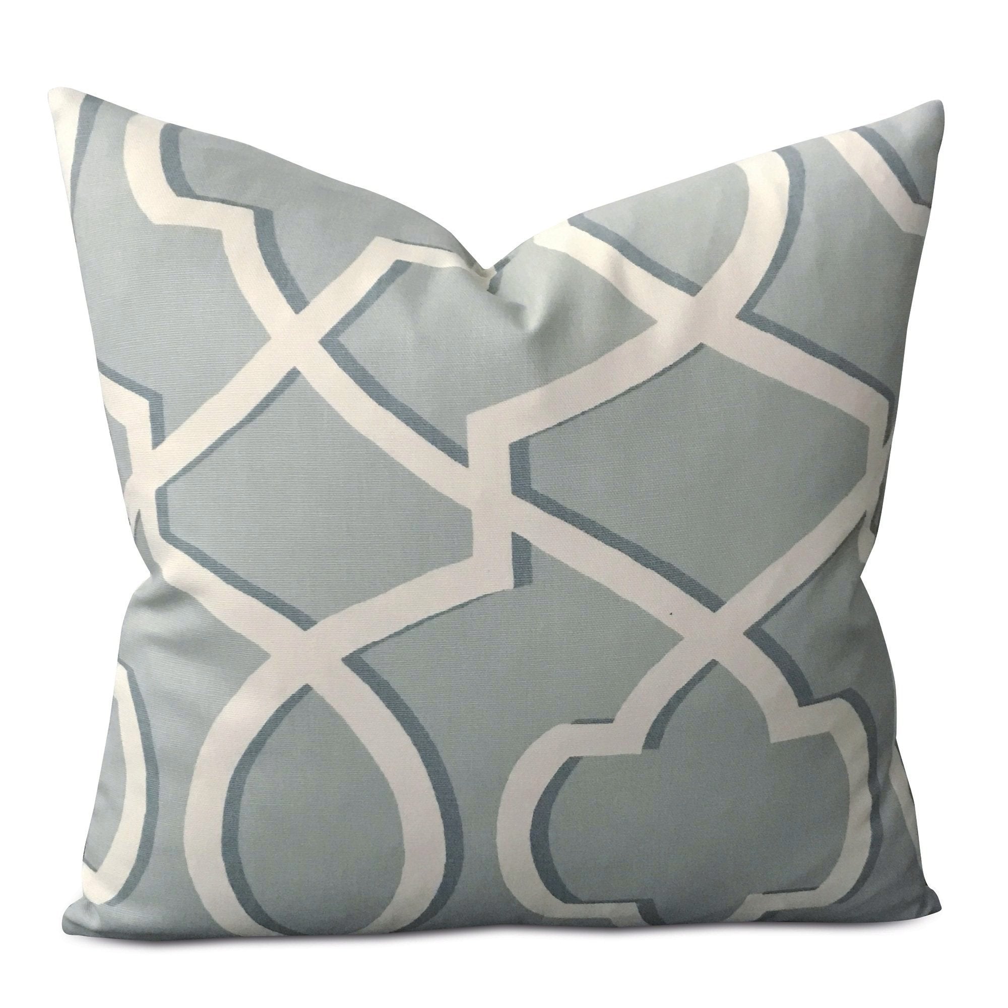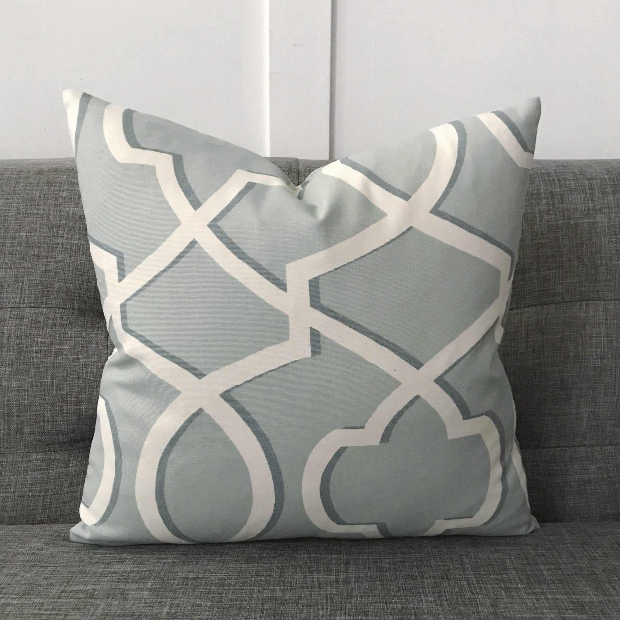 Sky Blue Geometric Linen Throw Pillow Cover 16x16