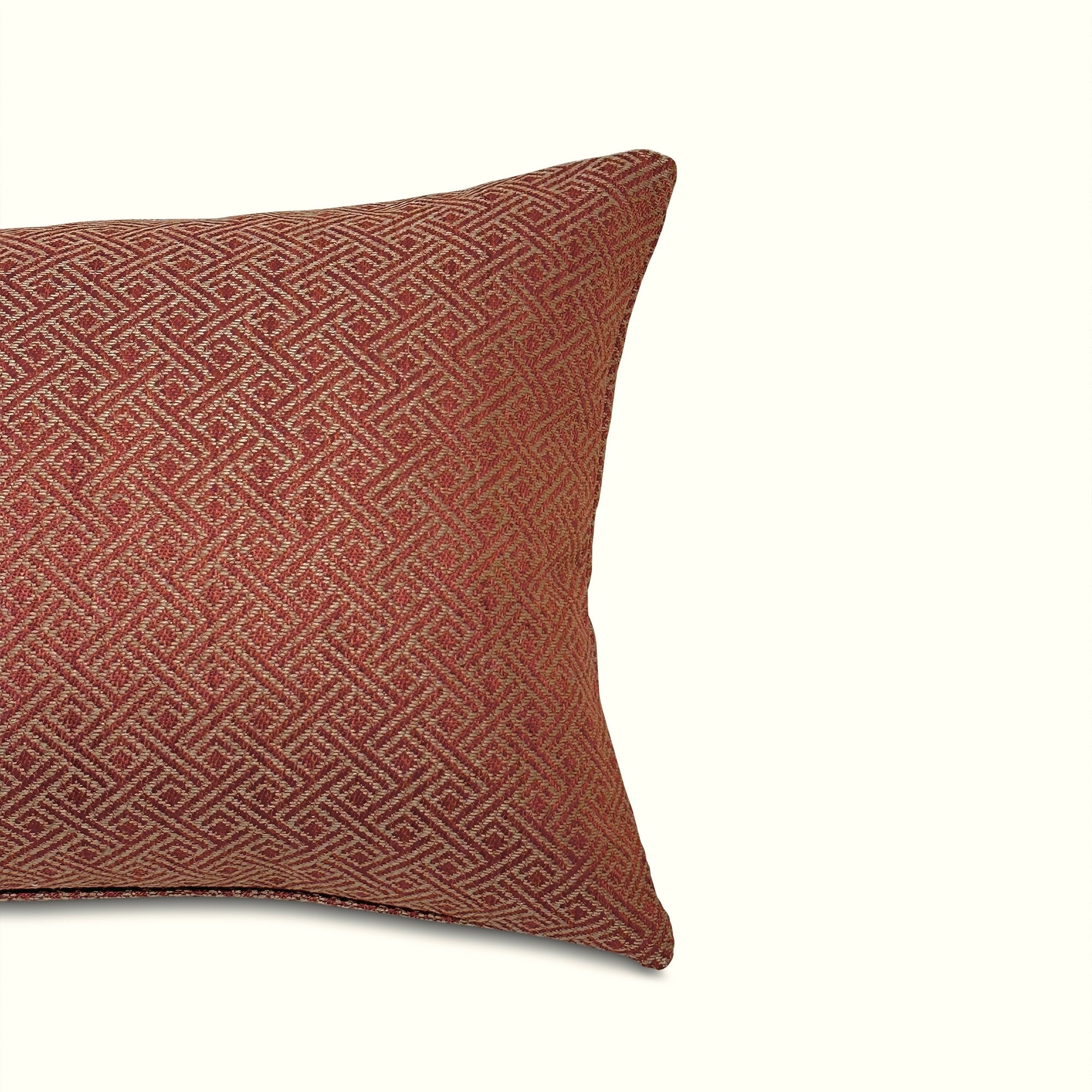 • Jacquard decorative pillow cover with a mid-century geometric pattern in terra cotta and tan