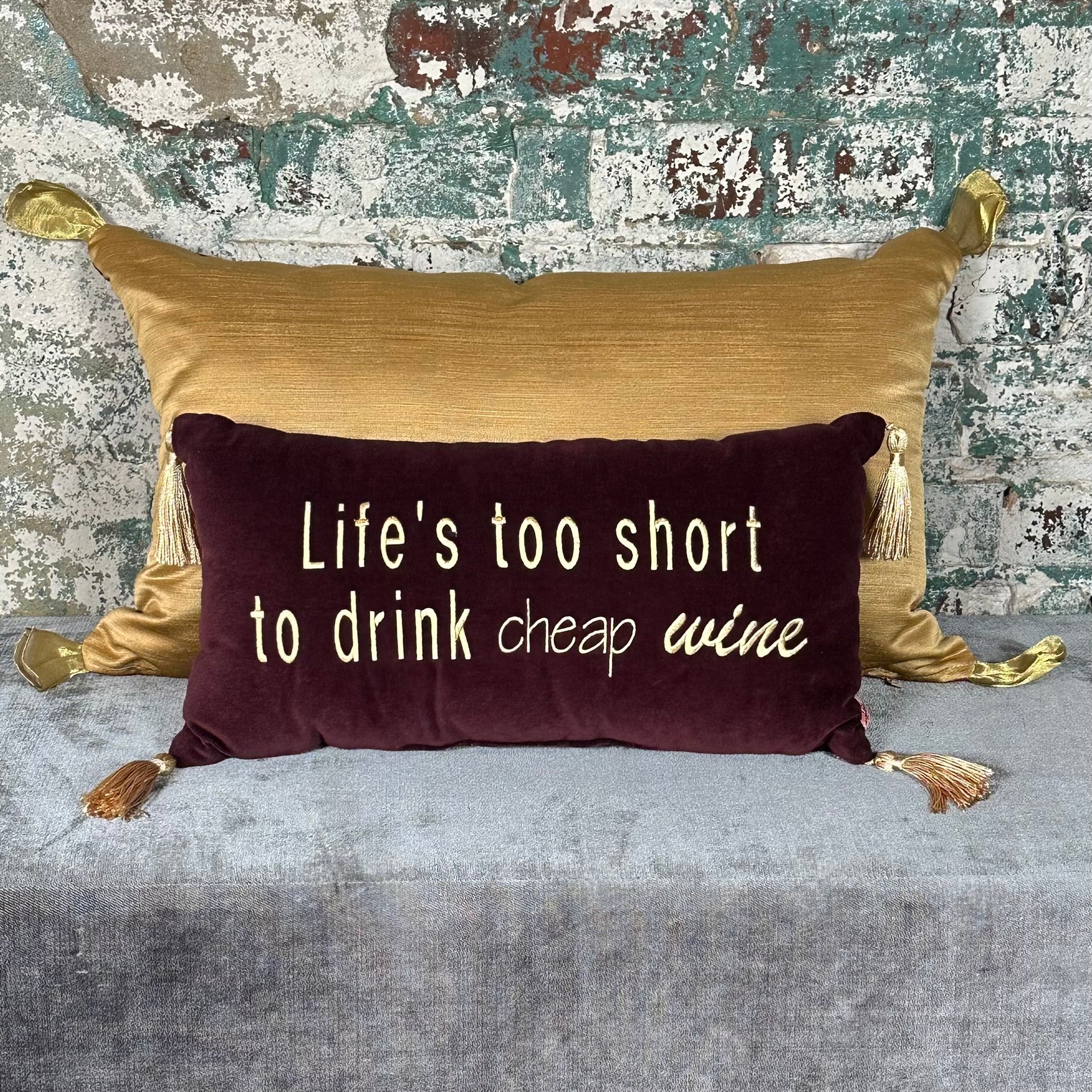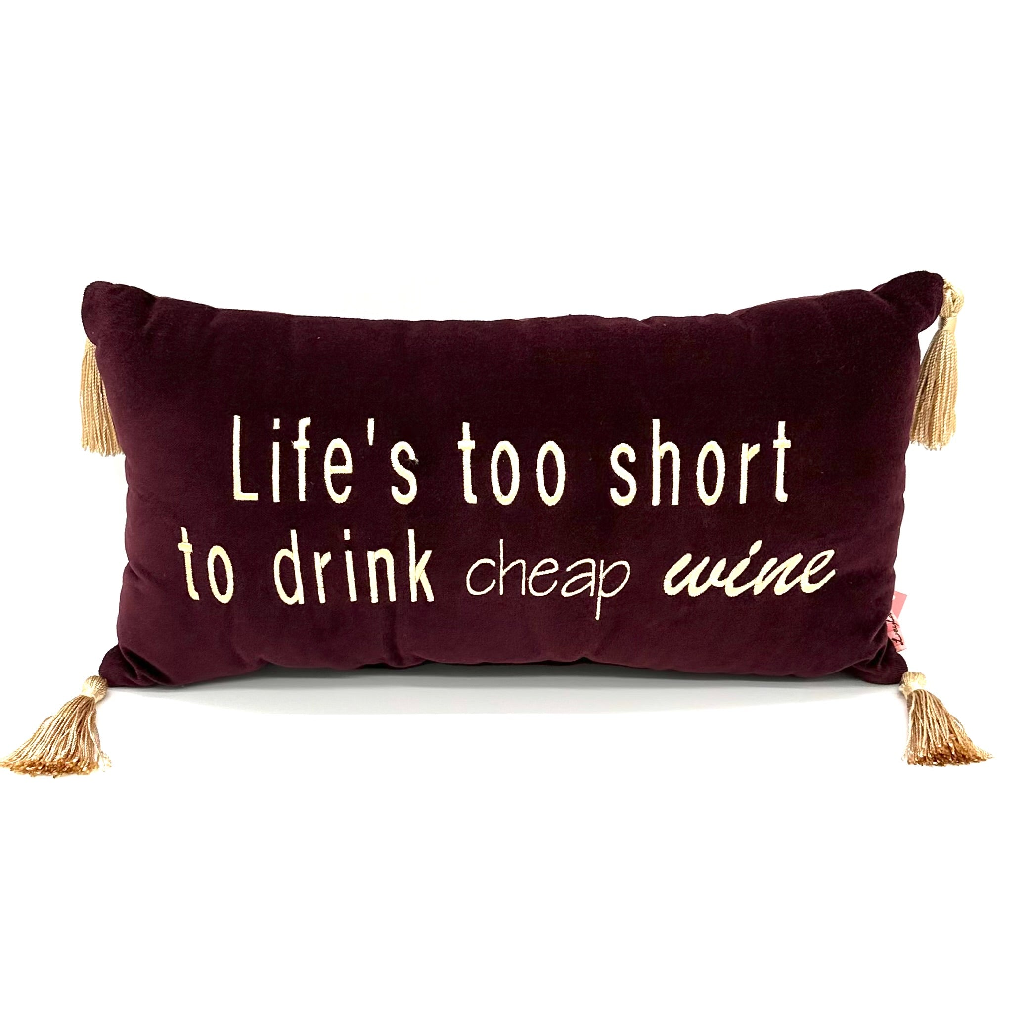 Burgundy 100% Velvet Phrase Pillow 8x16