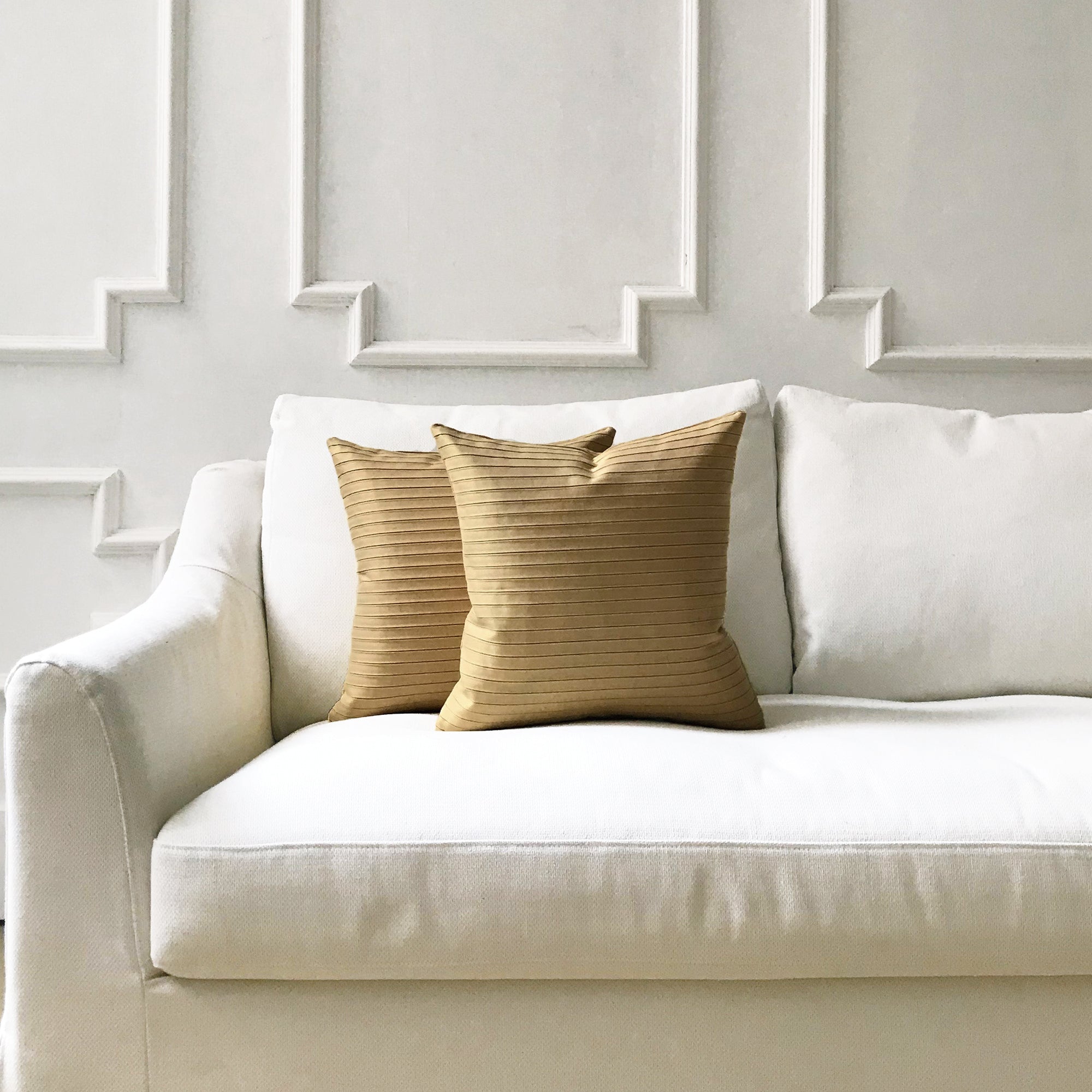 Gold Pleated Stripe Throw Pillow Cover 18x18