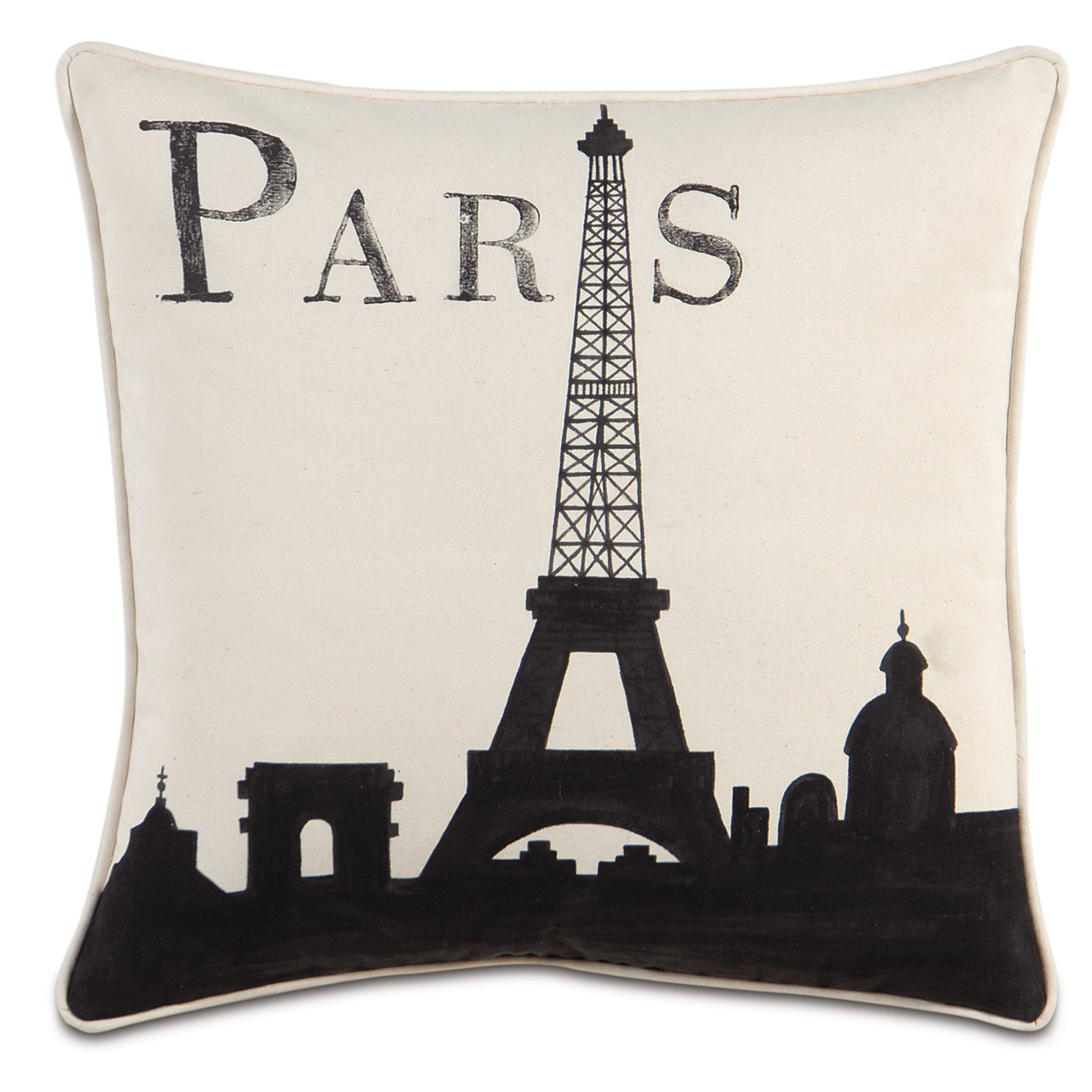 • 100% cotton throw pillow cover with hand painted and block printed Paris skyline and Eiffel tower pattern on face