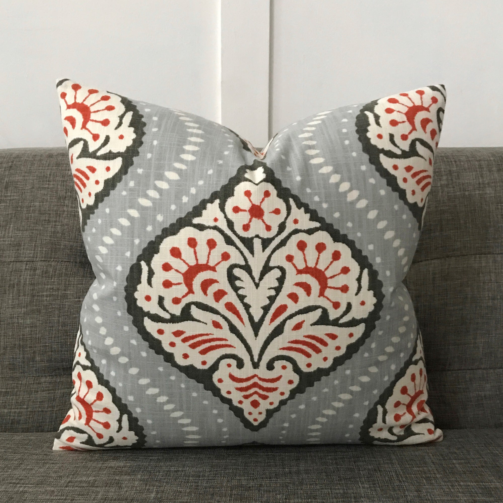 Gray Bohemian Ikat Throw Pillow Cover 24x24
