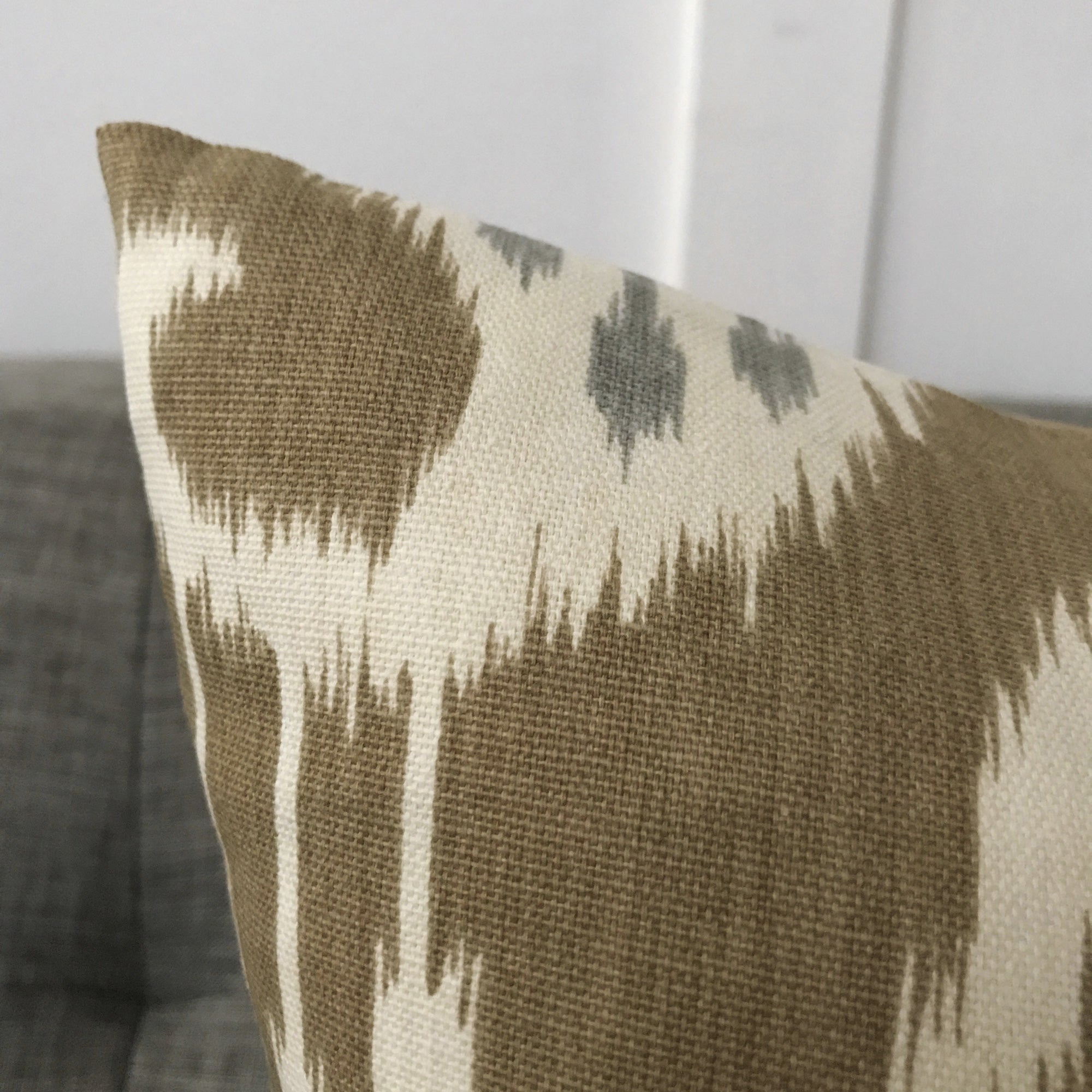 Earl Gray Linen Ikat Throw Pillow Cover 16x16