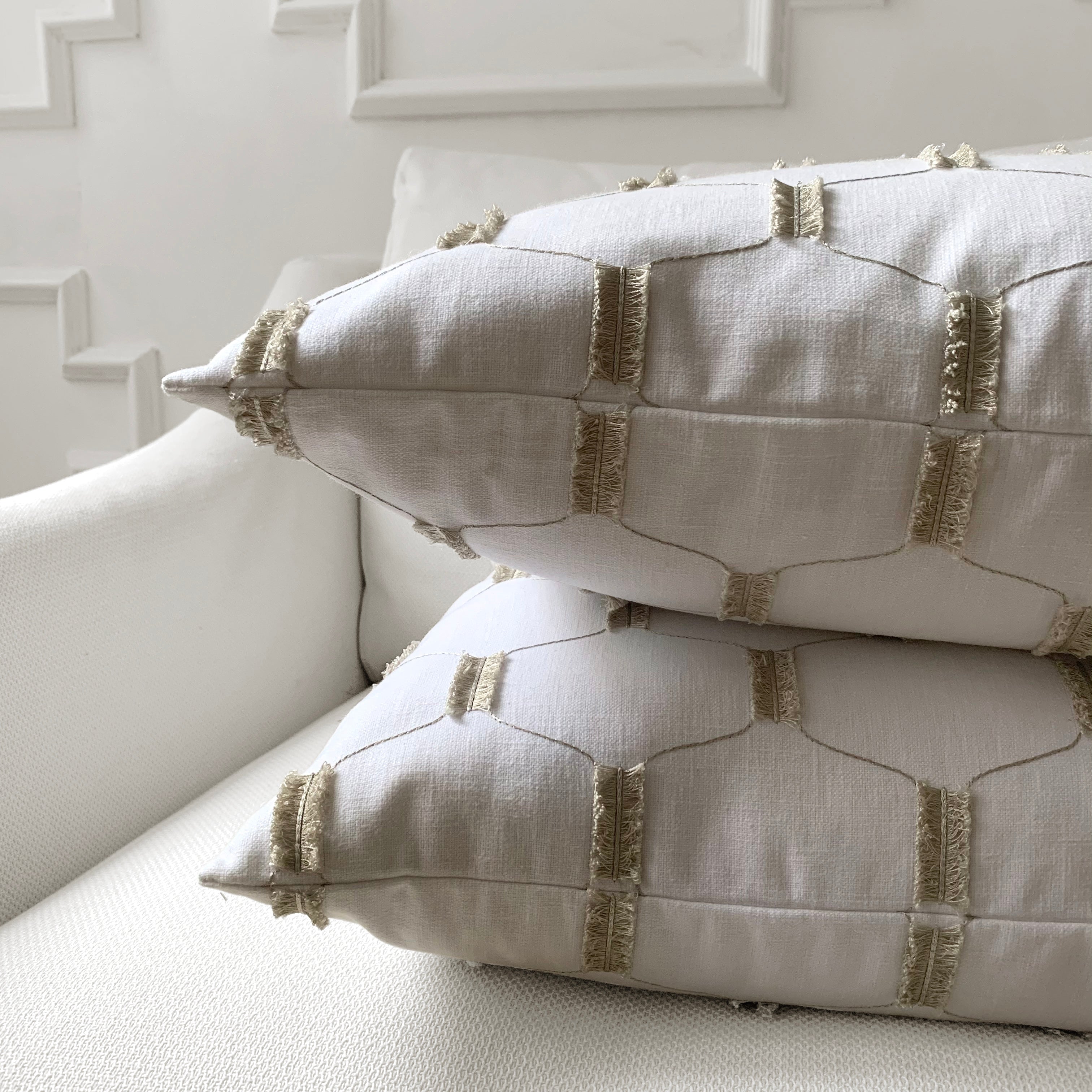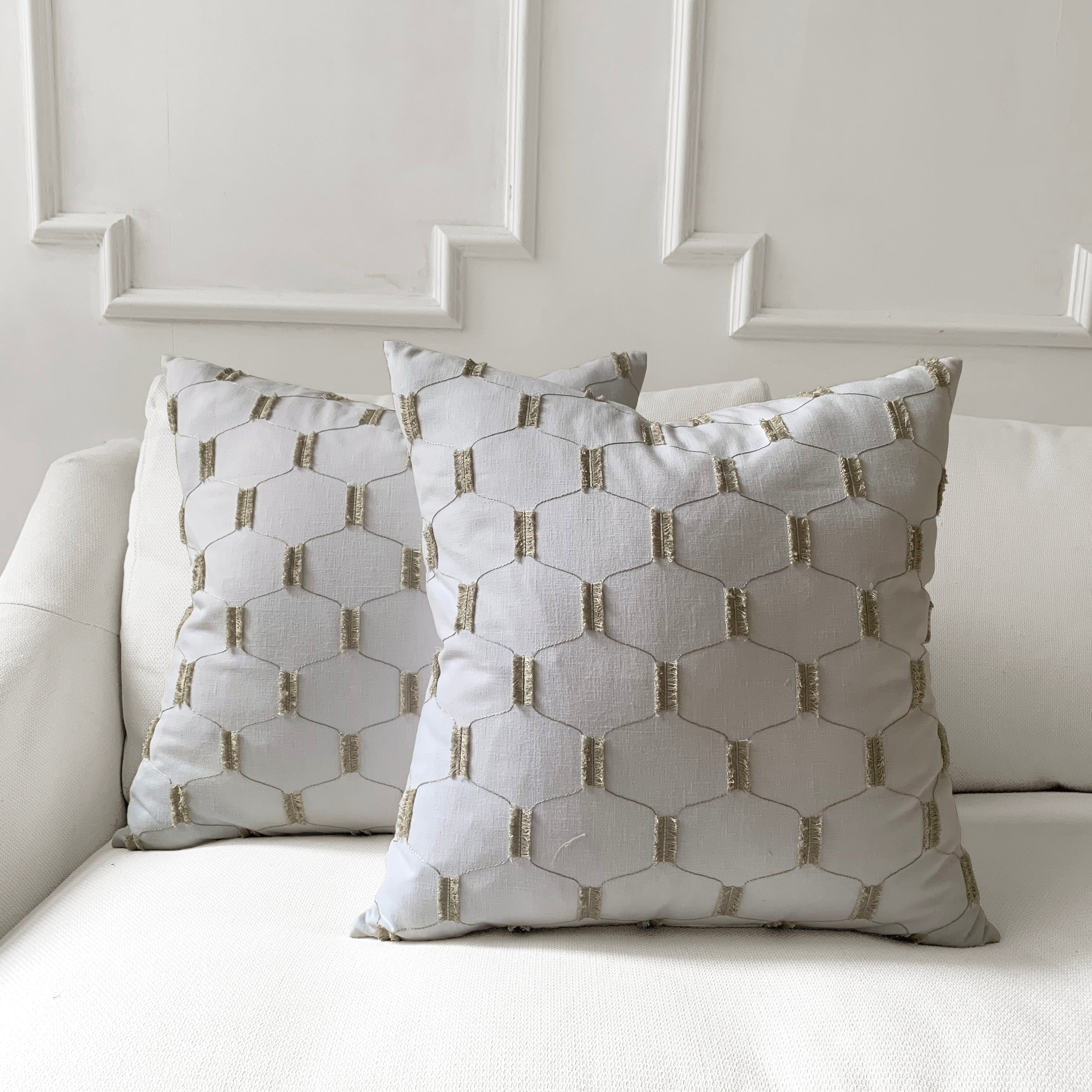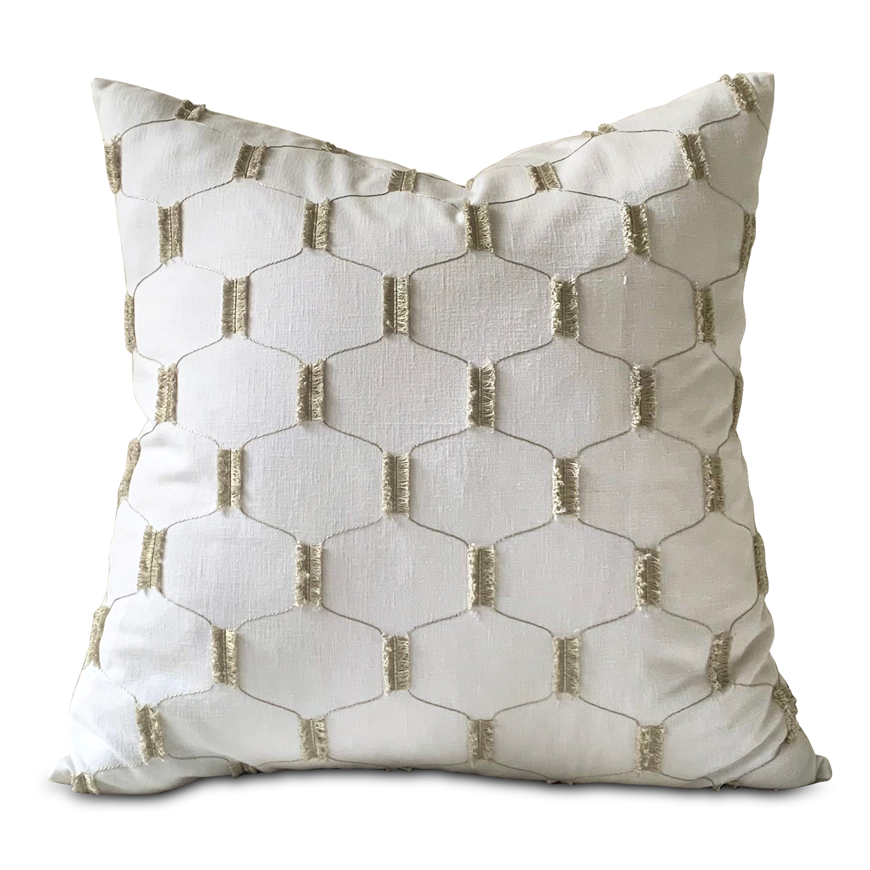 Ivory Embroidered Lattice Throw Pillow Cover 22x22