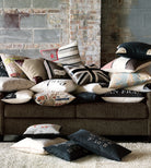 - Throw pillow with a salmon, beige and brown splice crafted from linen fabric