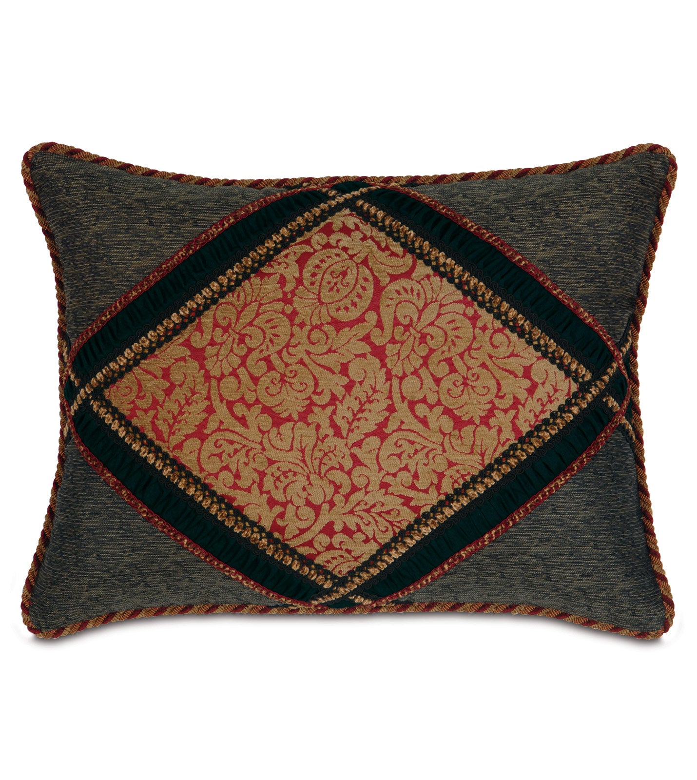 - Standard sham with gold damask pattern in a onyx diamond cut design