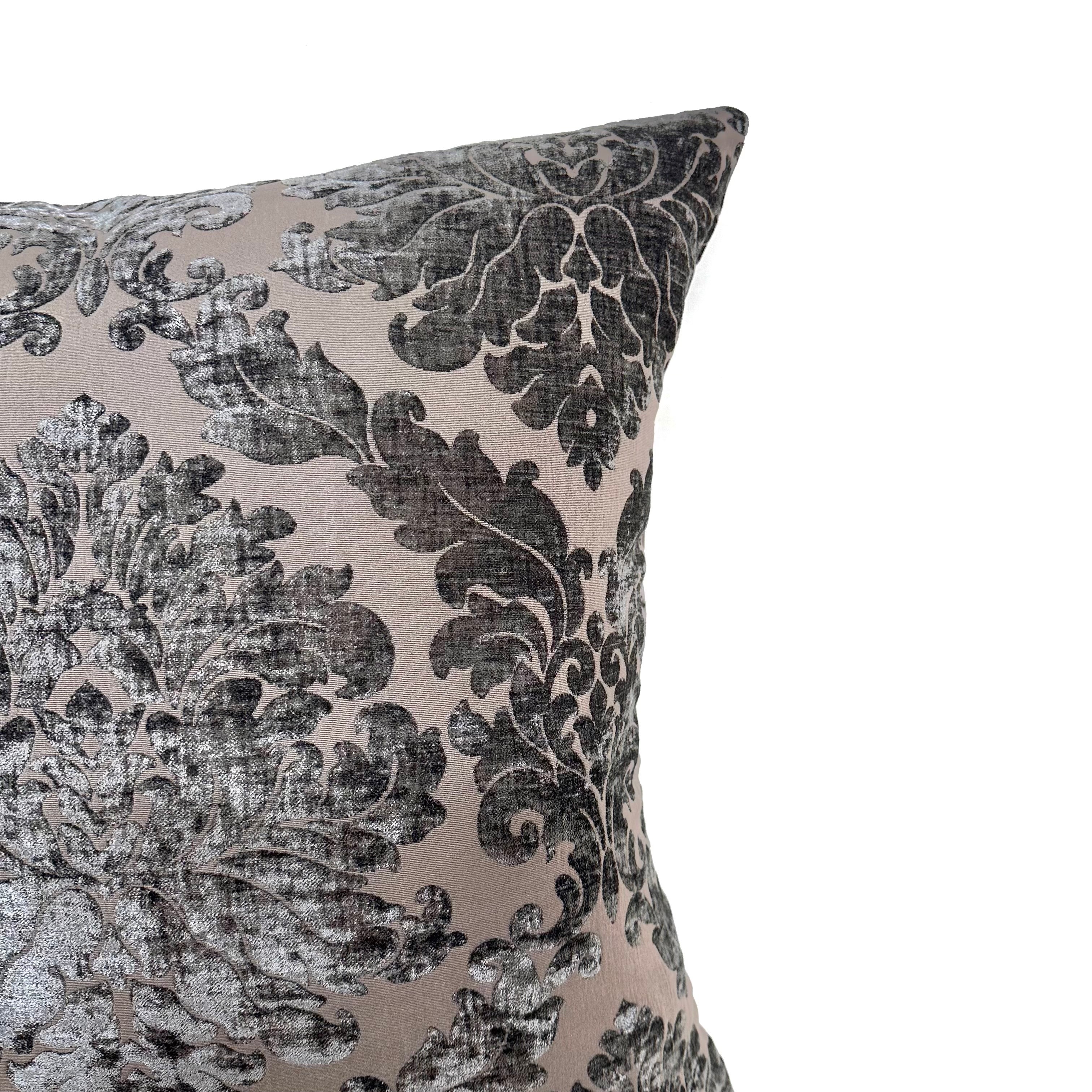 Warm Gray Traditional Damask Throw Pillow Cover 22x22
