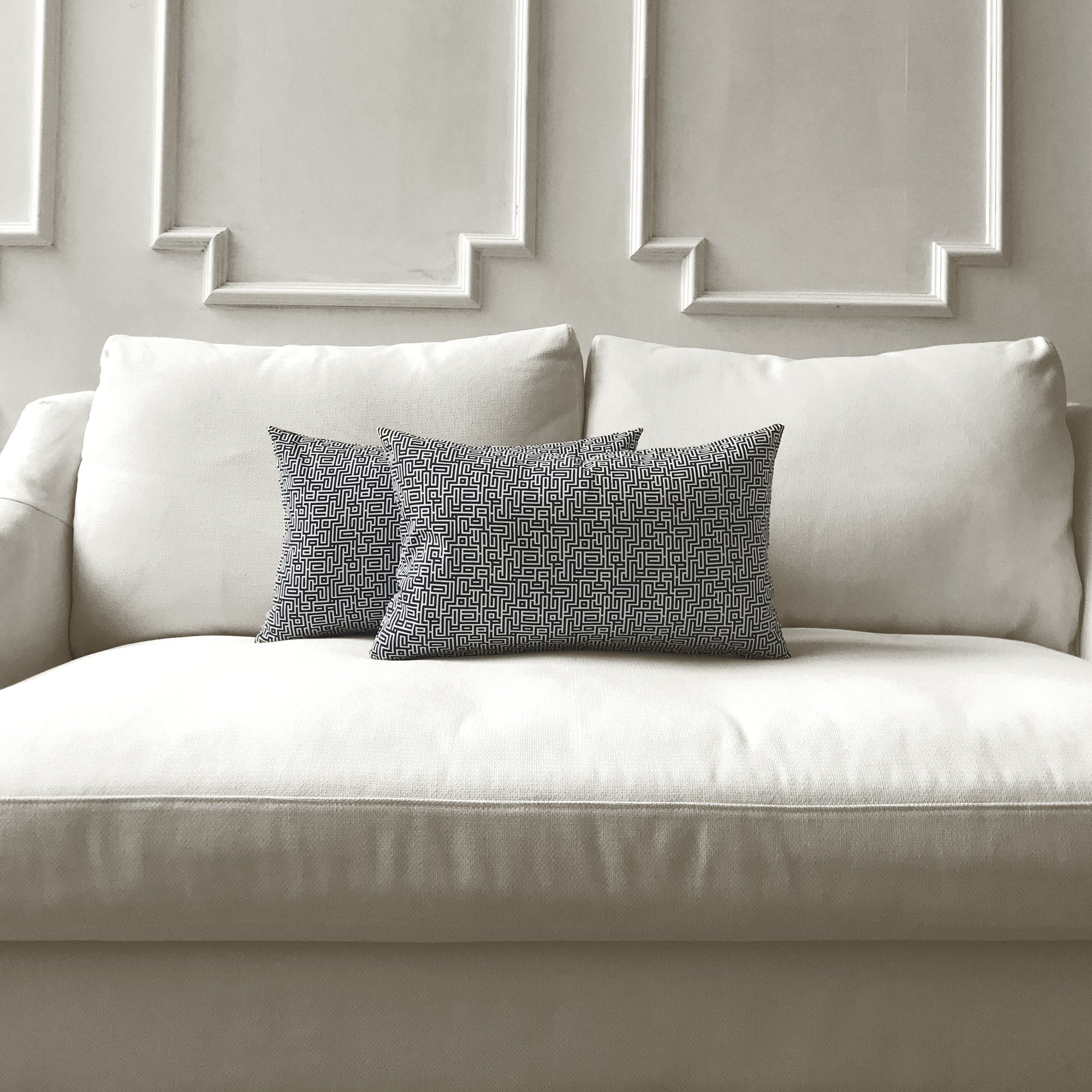 A great way to style black pillow covers is to use them symmetrically on sofas, beds, or benches. Two square black pillow covers on either end of a white or gray sofa give the layout instant definition. You can then layer in smaller lumbar pillows, maybe in gray or cream, to break up the tone and add softness. Gray pillow covers help transition the palette and reduce stark contrast, especially when you’re pairing them for a softer, more livable aesthetic. For more tonal variation, mix in light ash, charcoal, or marled gray fabrics. You can browse our full selection of gray pillow covers here for ideas.