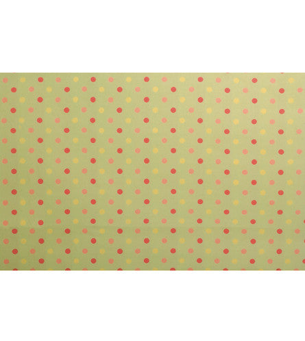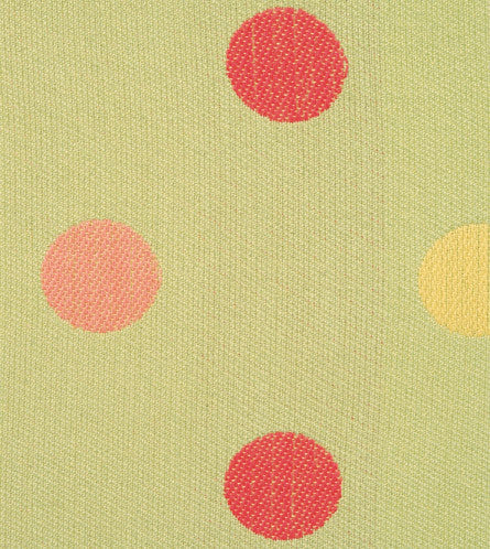 Coloring: Pink and Yellow polka dots on spring green double faced cotton twill ground.