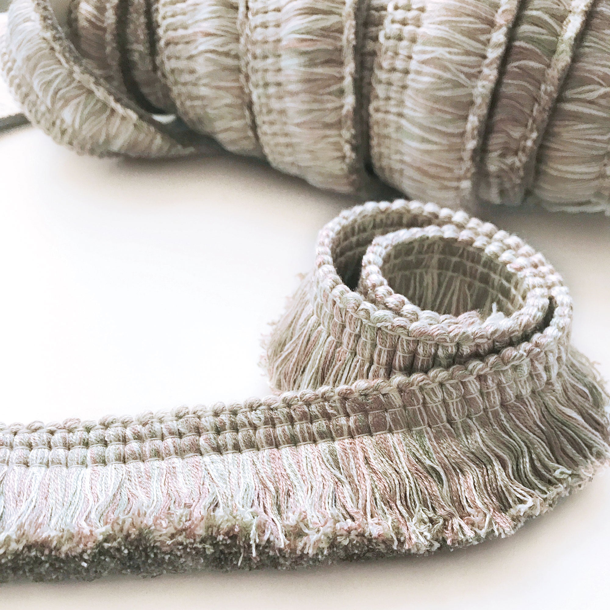 Lime and Blush Pink High Quality Decorative Brush Fringe Trim by the yard