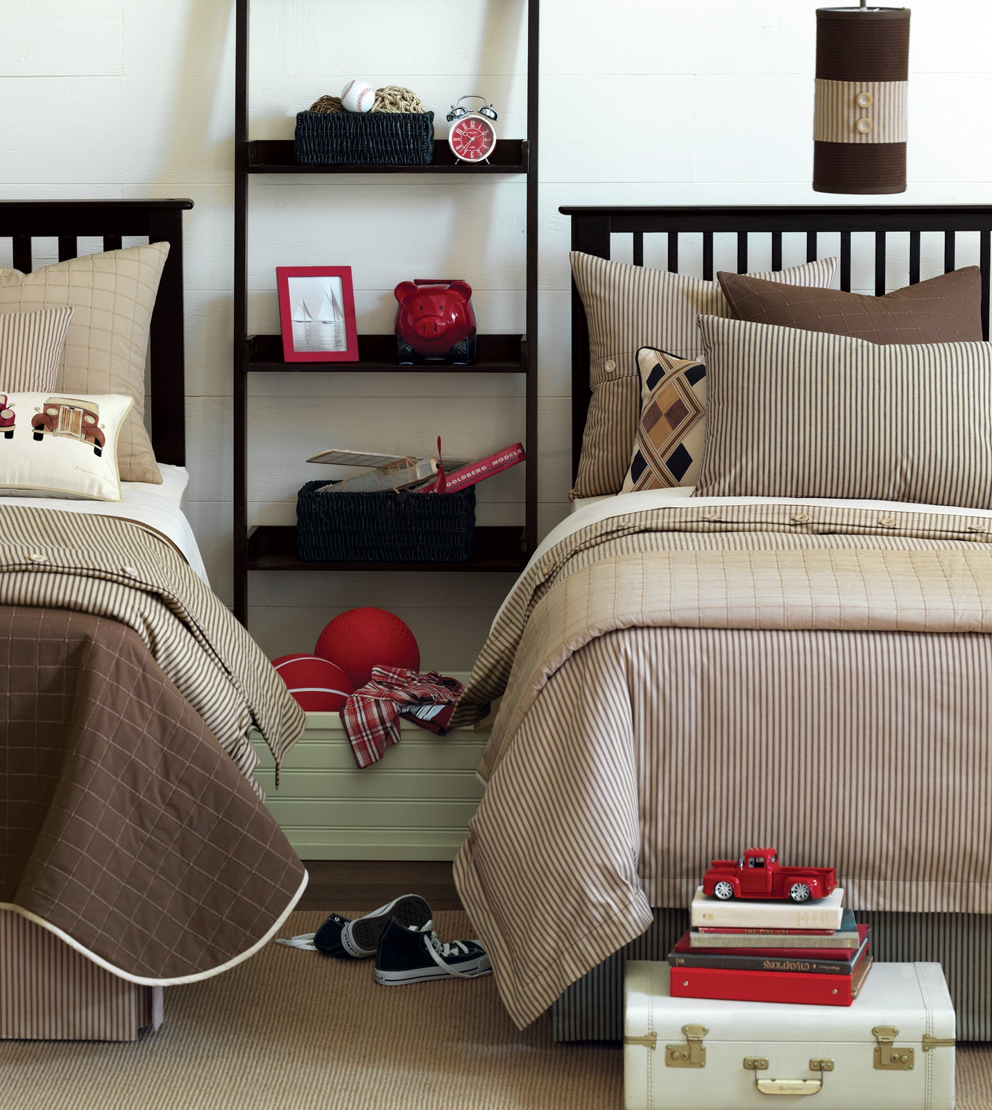 - 100% cotton pillow with tobacco-toned ticking stripes