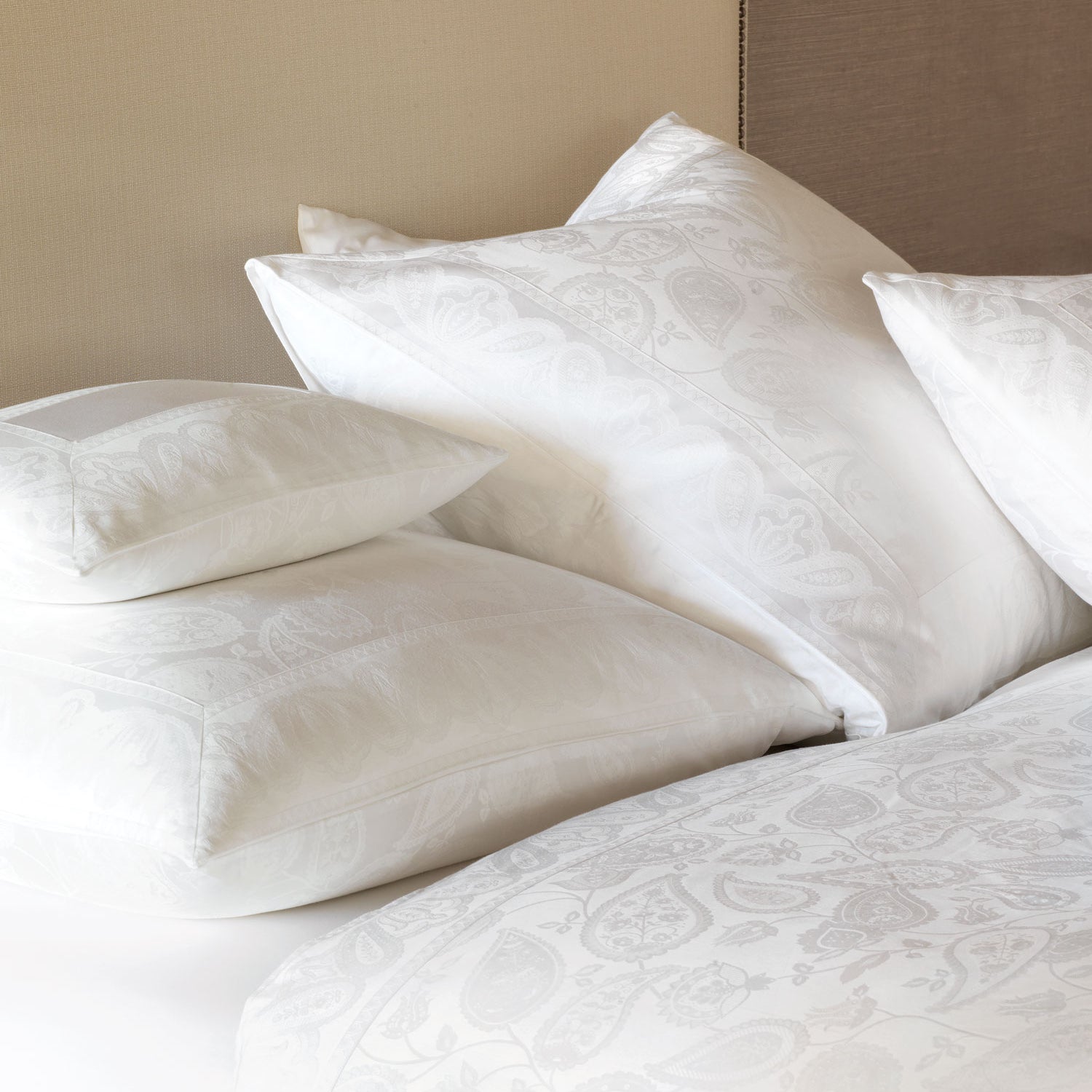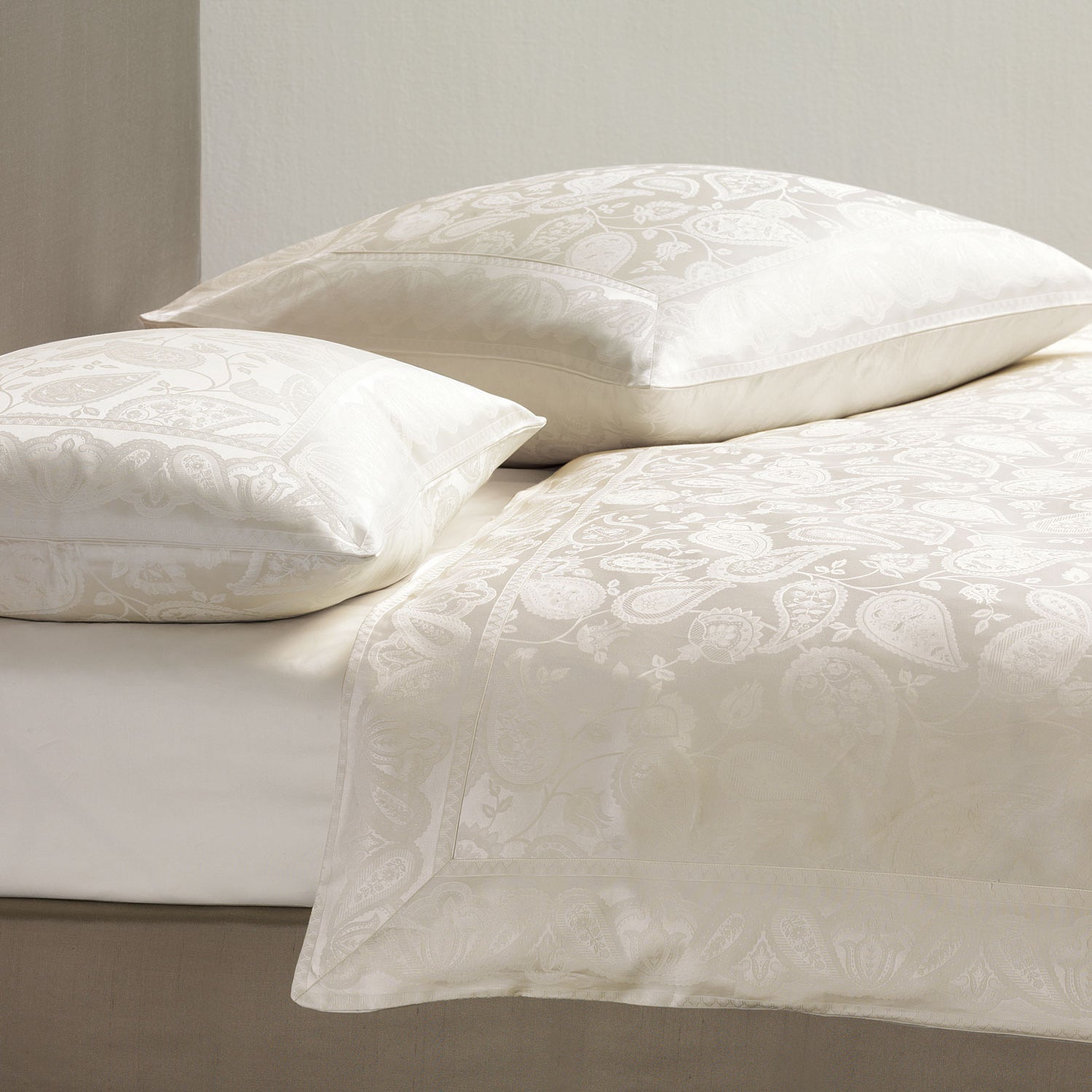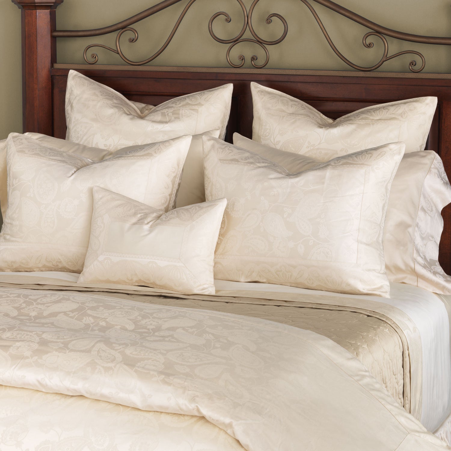 Enter the forgotten world of Constantinople’s boisterous bazaars, winding streets, and vitalizing aromas. Intricate paisleys swirl and abstract teardrops blossom in ethnic-inspired Henna. Visually rich, the jacquard woven textile pairs elegantly with intricate detailing and hemstitched sateen sheeting. This homage to old world design aesthetic brings an enchanting flavor to traditional décor.