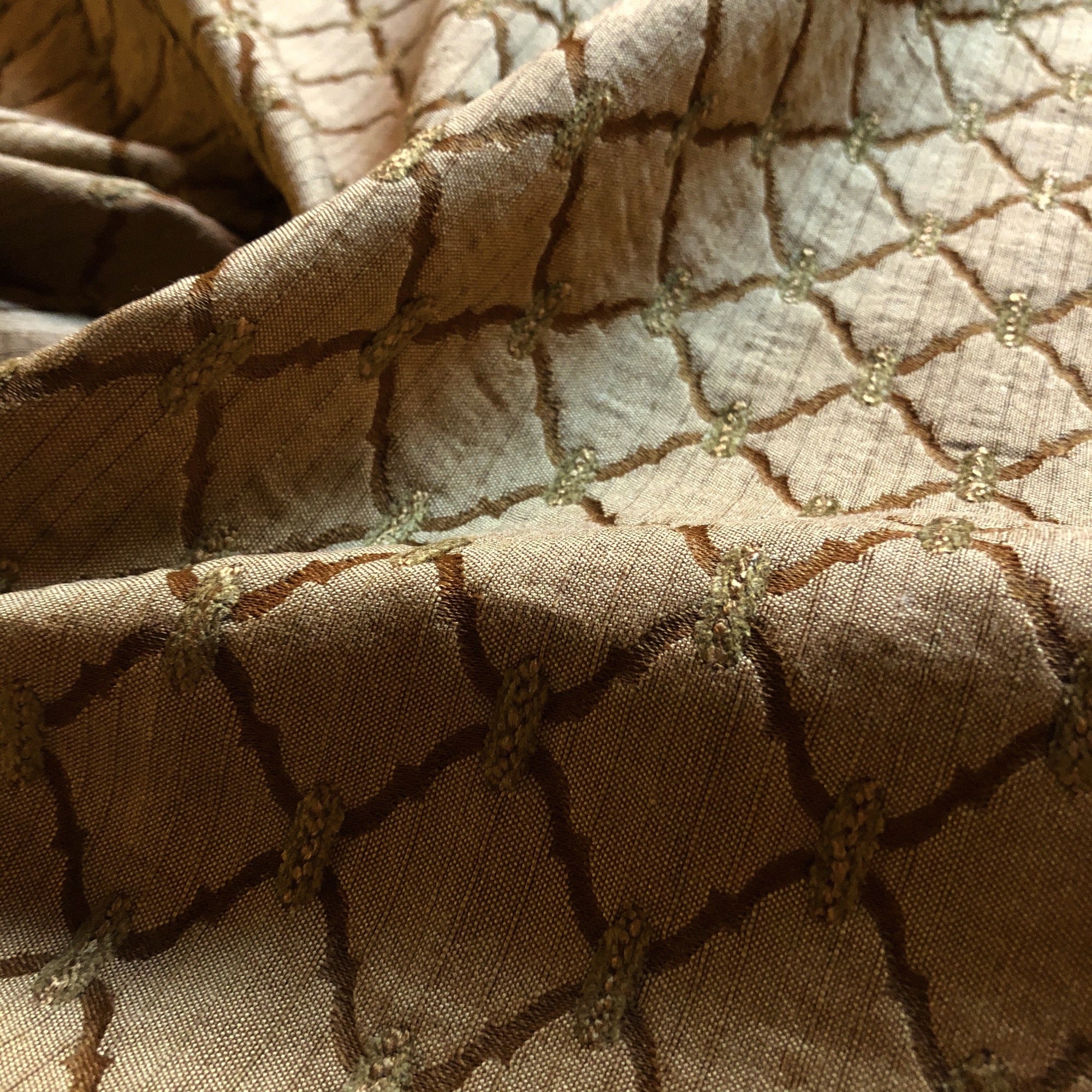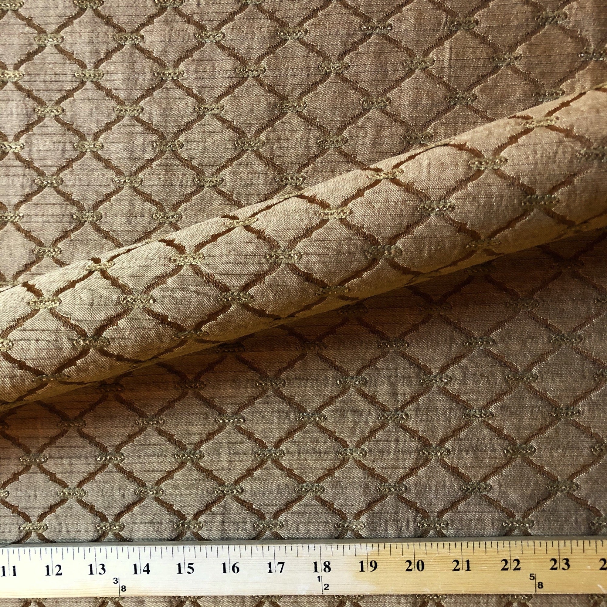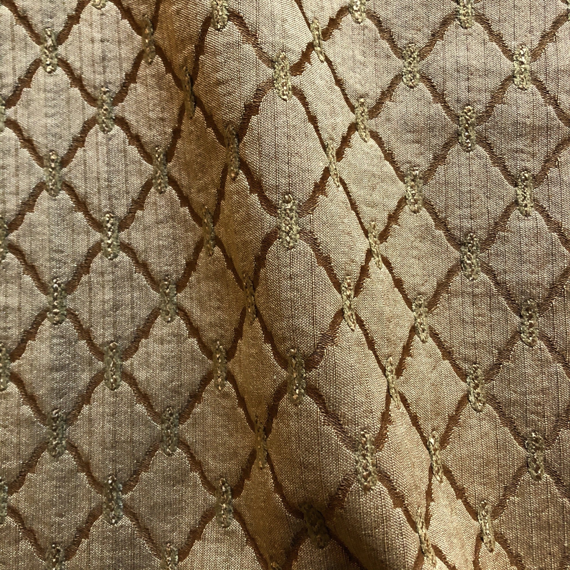Adorn any interior with this Golden Brown Southwestern Trellis Jacquard Upholstery Fabric 54", perfect for arts and crafts, DIY, upholstery, home decorating, and more. Give your bedding, chairs, cushions, windows and more a fresh new look with our selection of high quality fabrics curated by a team of trend leading designers. This luxurious trellis jacquard upholstery fabric in golden brown meets flair with versatility, offering the perfect personal touch for any Southwestern aesthetic. Designed and crafted by skilled textile artisans this fabric is made to last and never compromises on quality. All fabric is sold by the yard in 1-yard increments. Unfortunately, we do not accept returns on fabric orders but swatches are available.