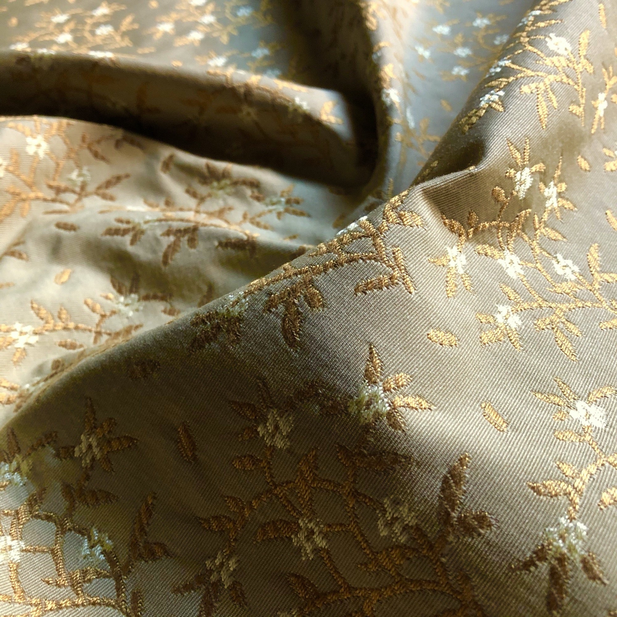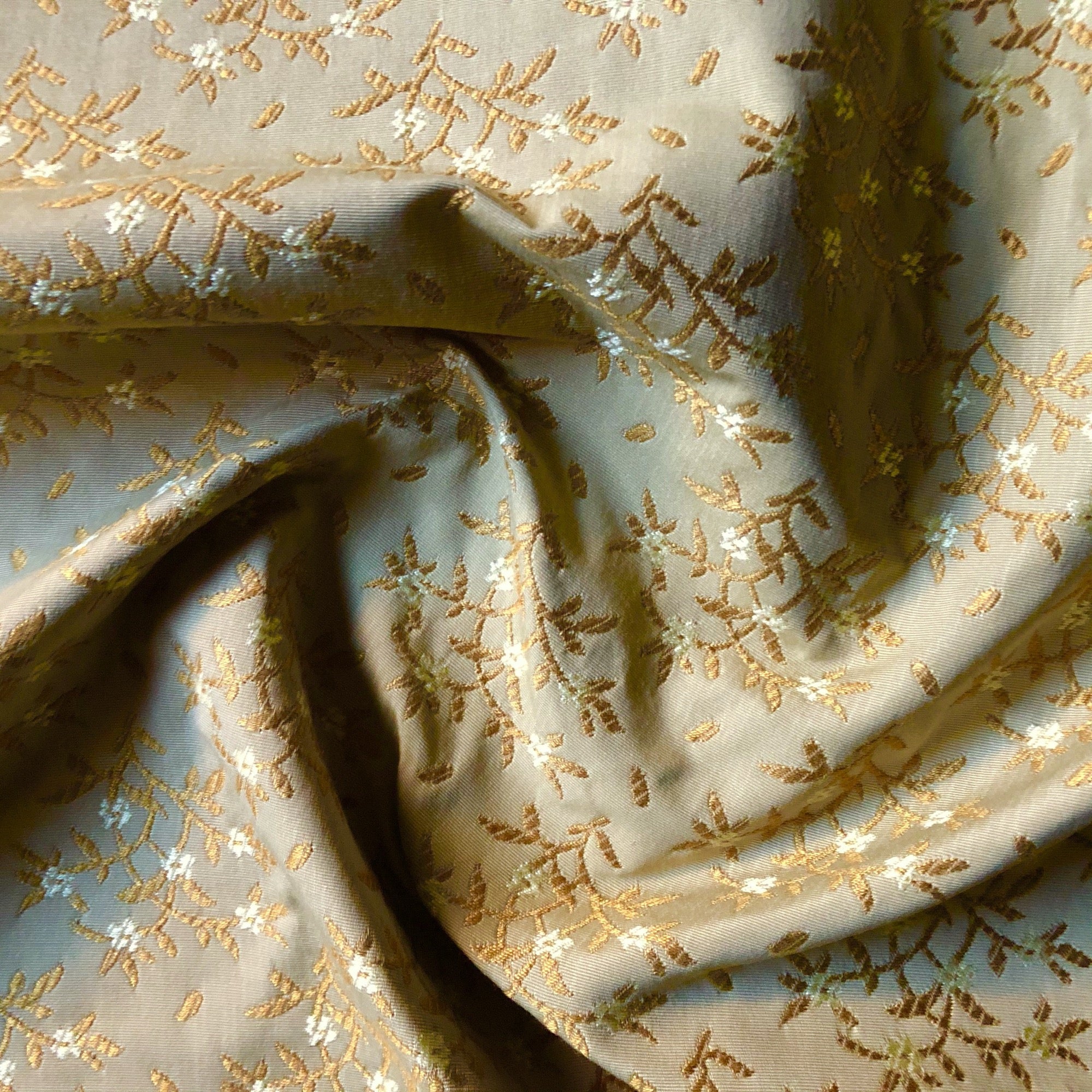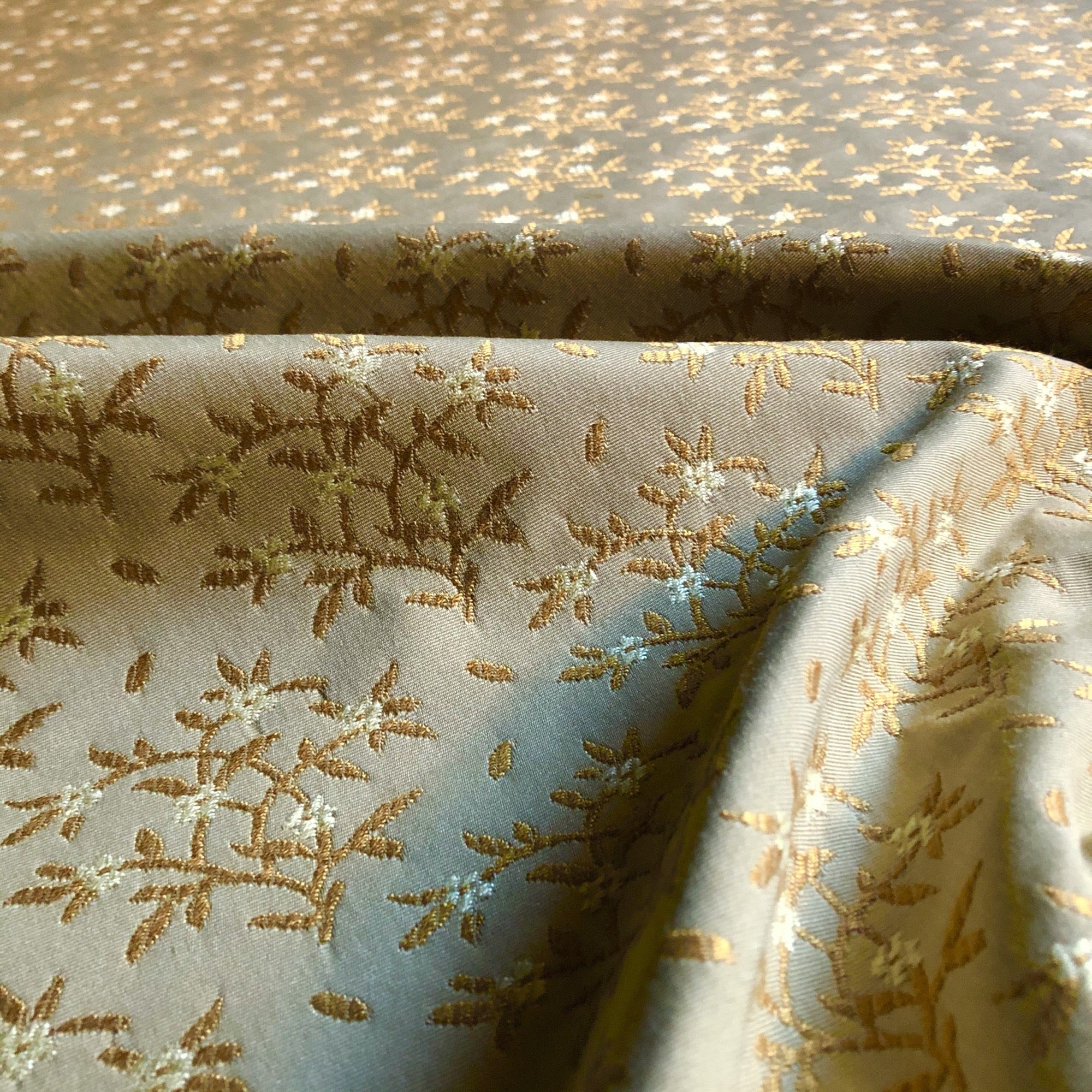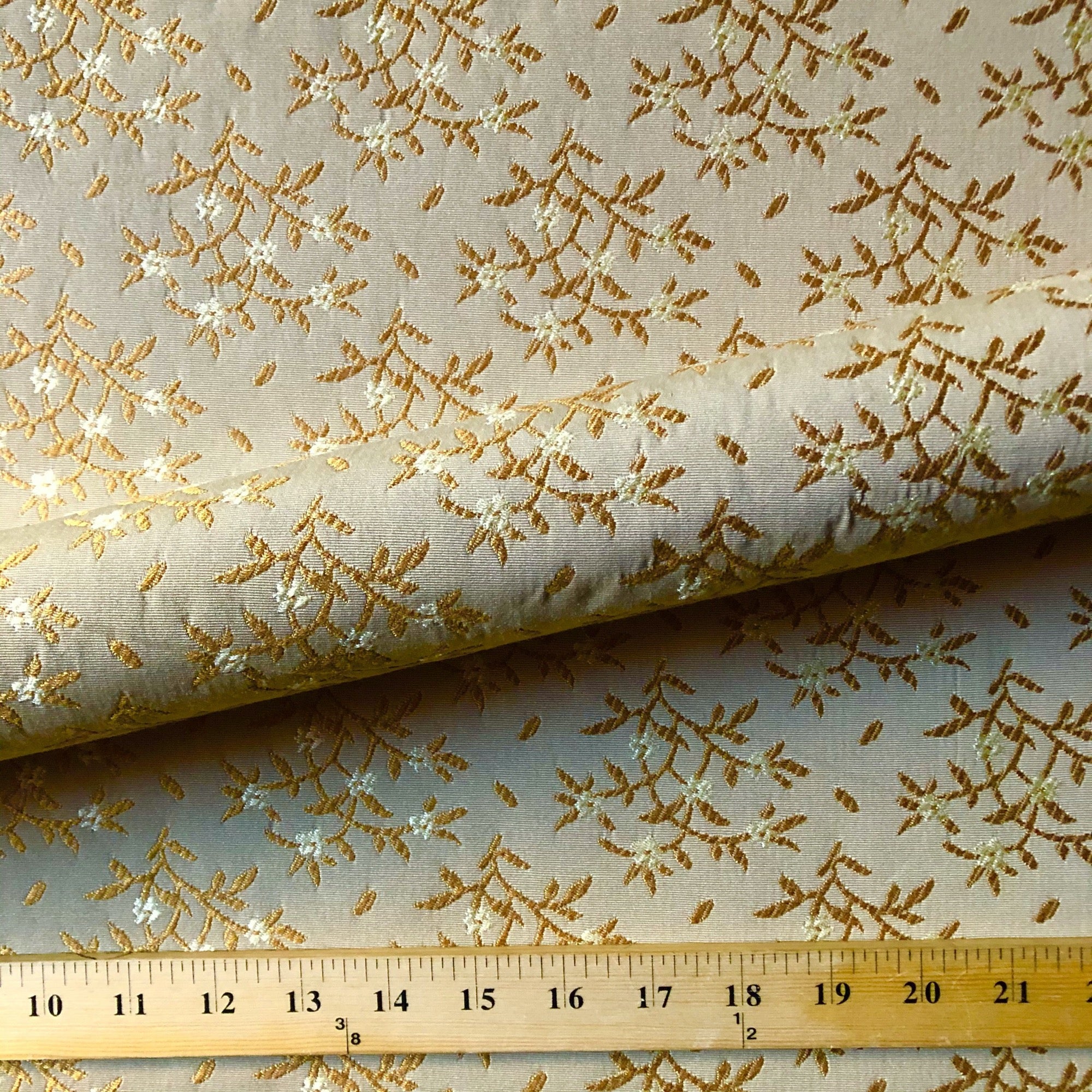 Adorn any interior with this Edora Sun Botanical Brocade Upholstery Fabric 54", perfect for arts and crafts, DIY, upholstery, home decorating, and more. Give your bedding, chairs, cushions, windows and more a fresh new look with our selection of high quality fabrics curated by a team of trend leading designers. This luxurious botanical brocade upholstery fabric in gold meets flair with versatility, offering the perfect personal touch for any soft Vintage Glam aesthetic. Designed and crafted by skilled textile artisans this fabric is made to last and never compromises on quality. All fabric is sold by the yard in 1-yard increments. Unfortunately, we do not accept returns on fabric orders but swatches are available.