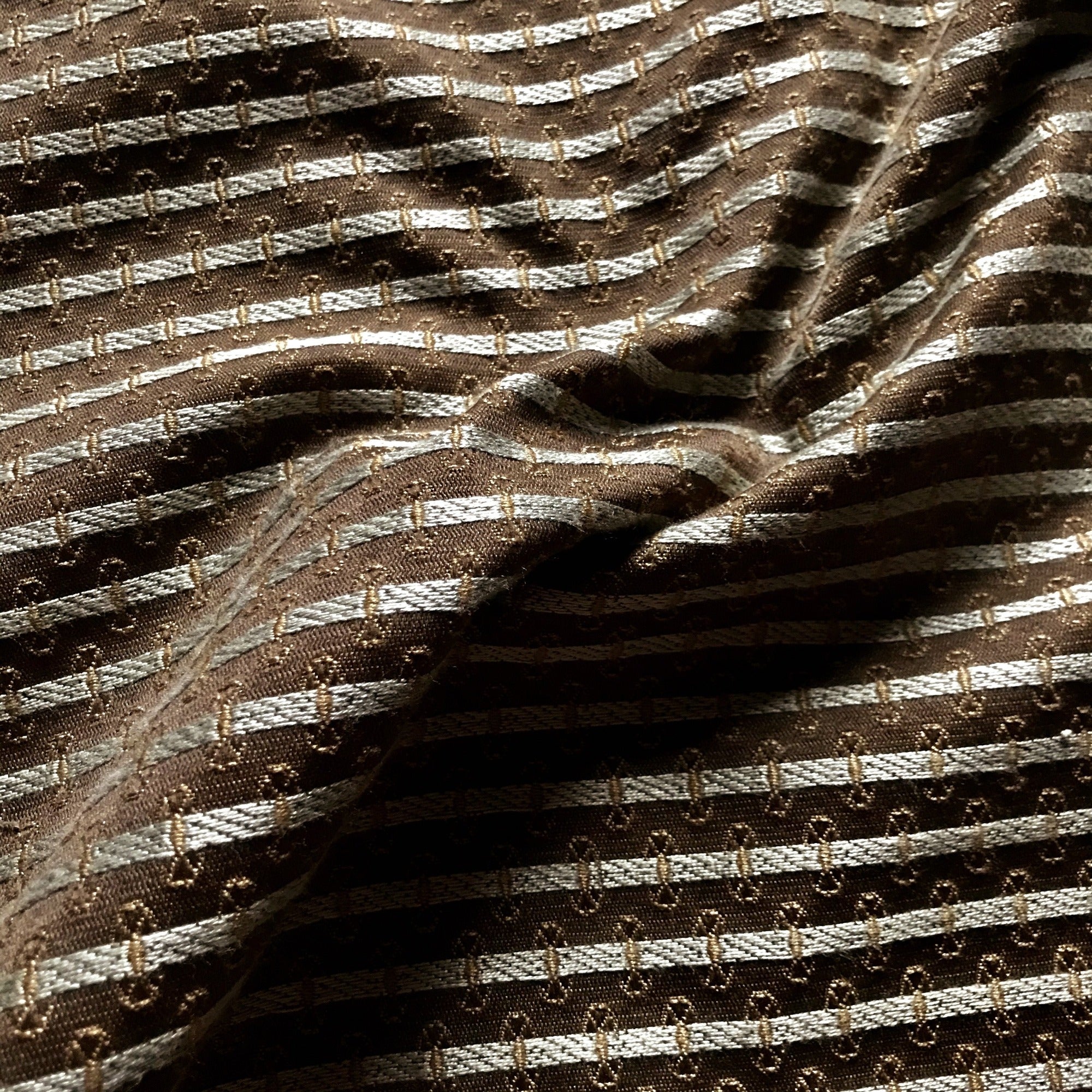 Enliven any interior with this Halva Nut Textured Jacquard Upholstery Fabric 54", perfect for all your upholstery needs. Give your bedding, chairs, cushions, windows and more a fresh new look with our selection of high quality fabrics curated by a team of forward thinking designers. Having limitless uses, this luxurious brown jacquard upholstery fabric meets flair with versatility, offering the perfect personal touch for any Traditional aesthetic. Designed to last, this fabric can provide the perfect look for your home. All fabric is sold by the yard in 1-yard increments. Unfortunately, we do not accept returns on fabric orders but samples are available by purchasing a $2 swatch.