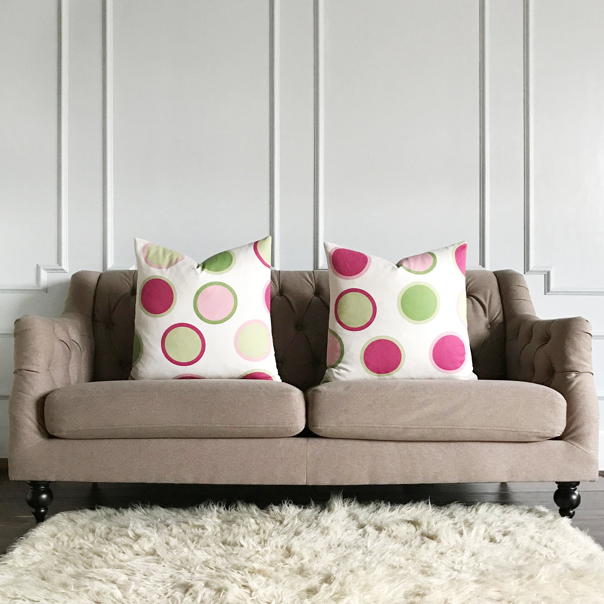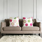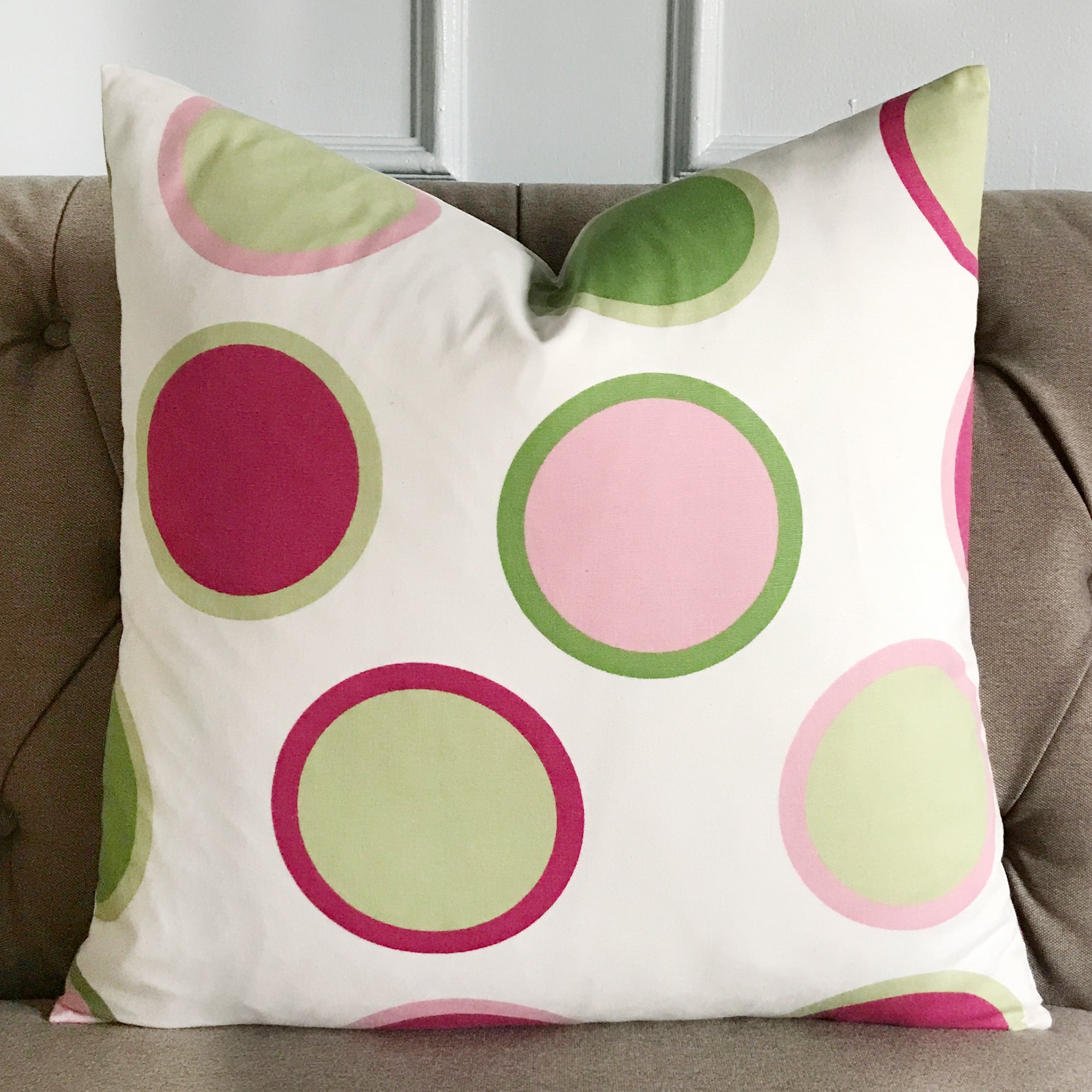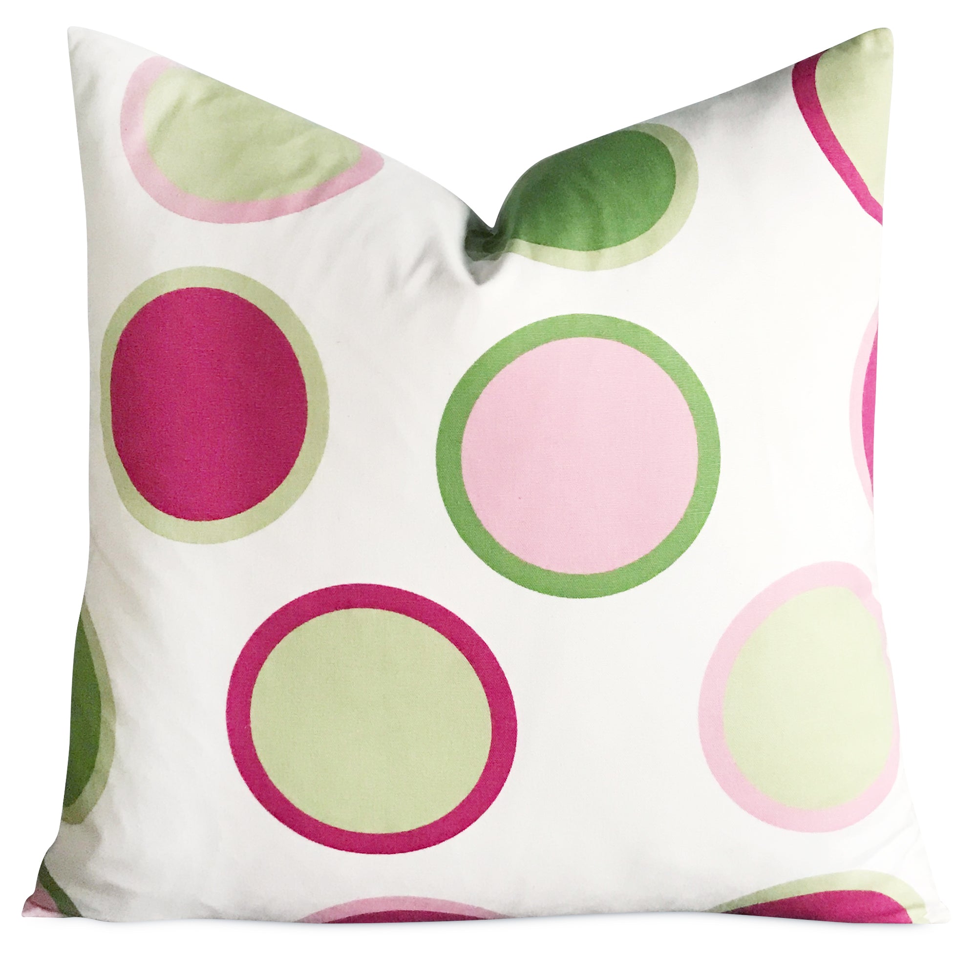 Pink and Lime Green Large Polka Dot Throw Pillow Cover