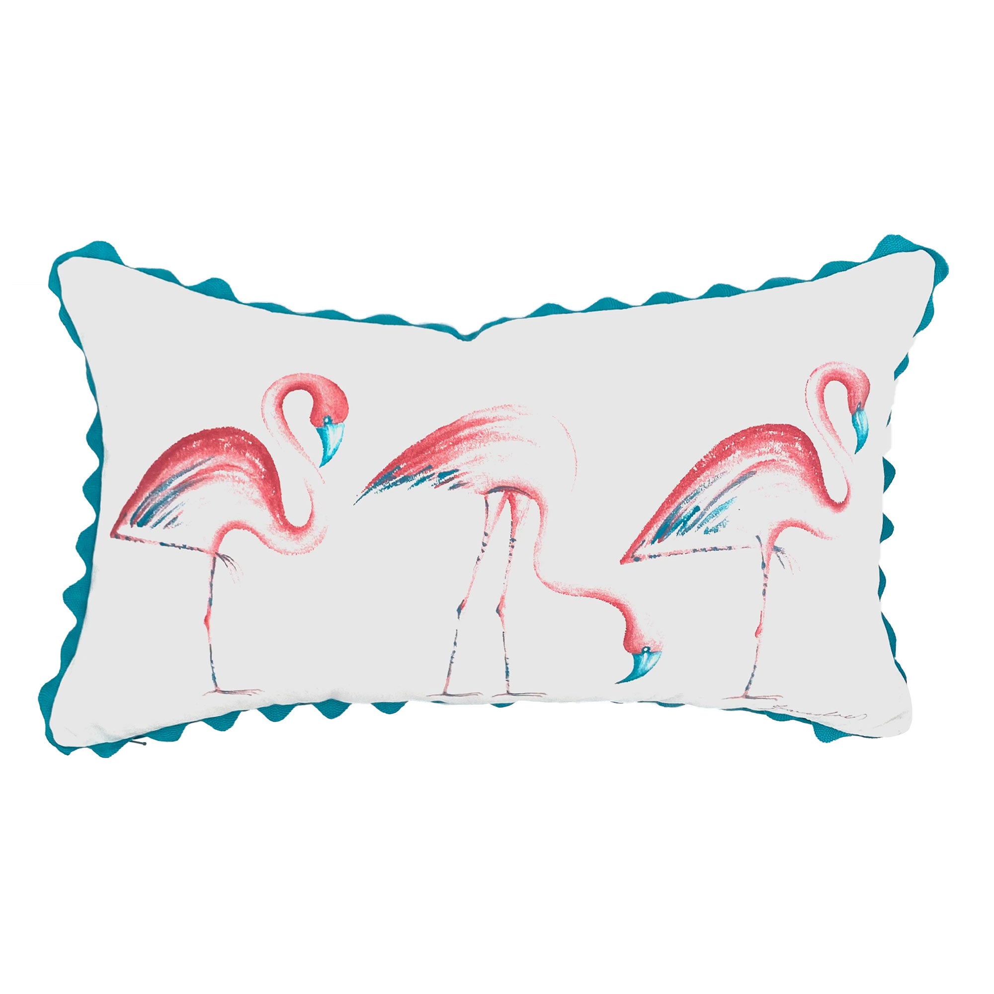 Pink Hand-Painted Flamingos Outdoor Lumbar Pillow Cover 13x22