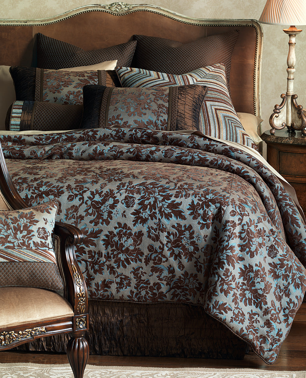 The Talbot bedding set includes a reversible hand-tacked comforter featuring: