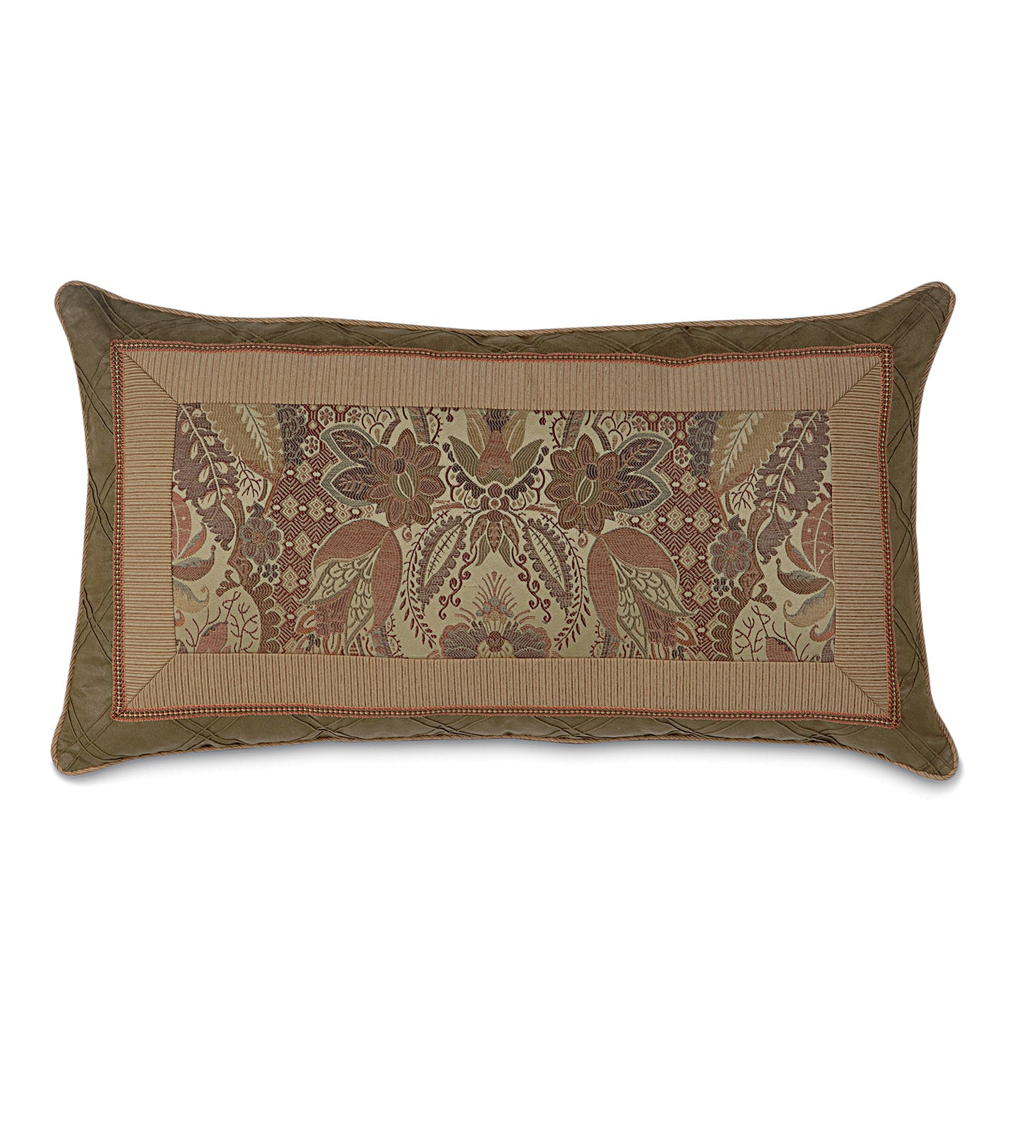 - Gorgeously textured standard sham with a detailed woven floral damask pattern in warm earthy tones