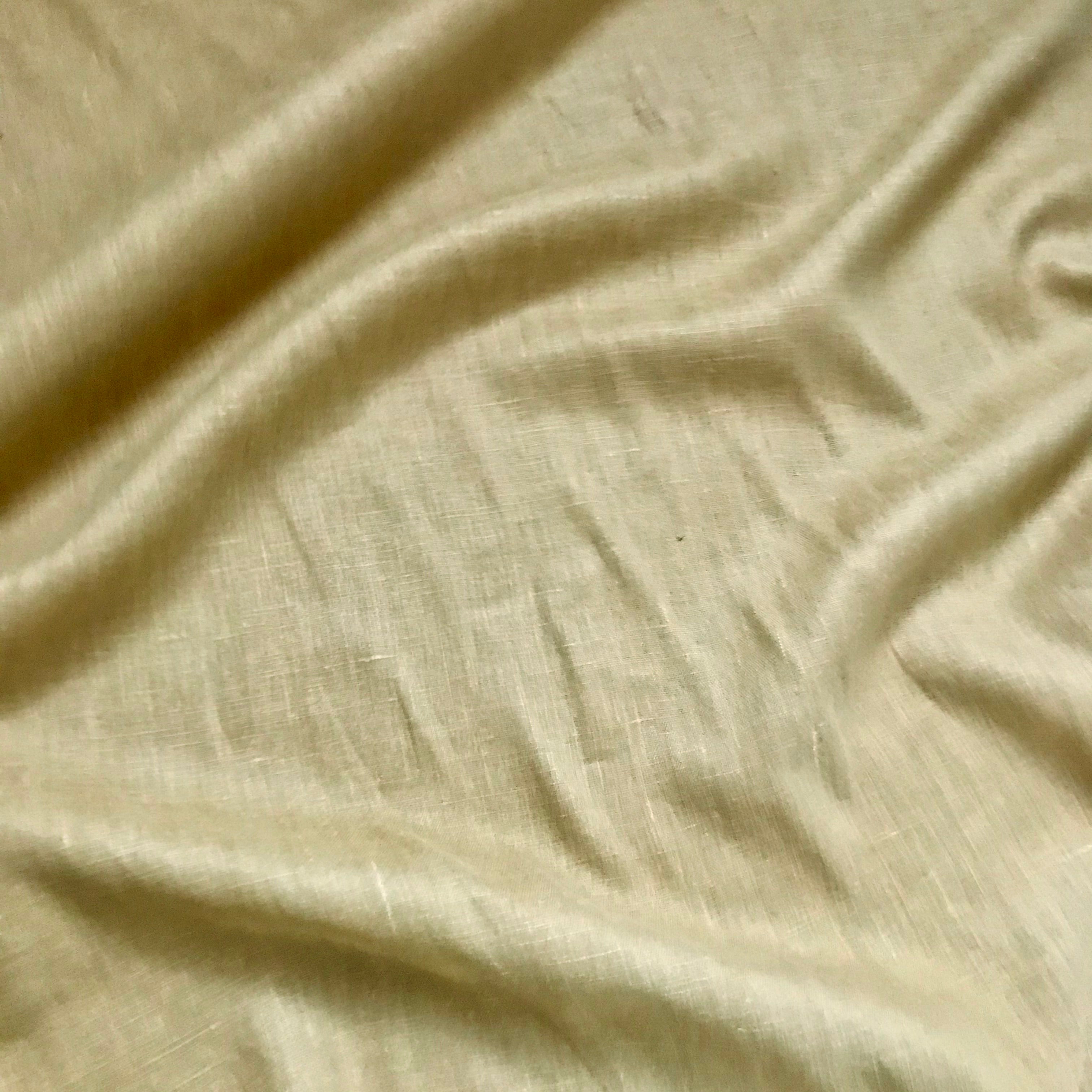 Solid 100% Linen fabric in beige complements a romantic home style with neutral coloring and the solid design can blend with any archetypal decor presence.